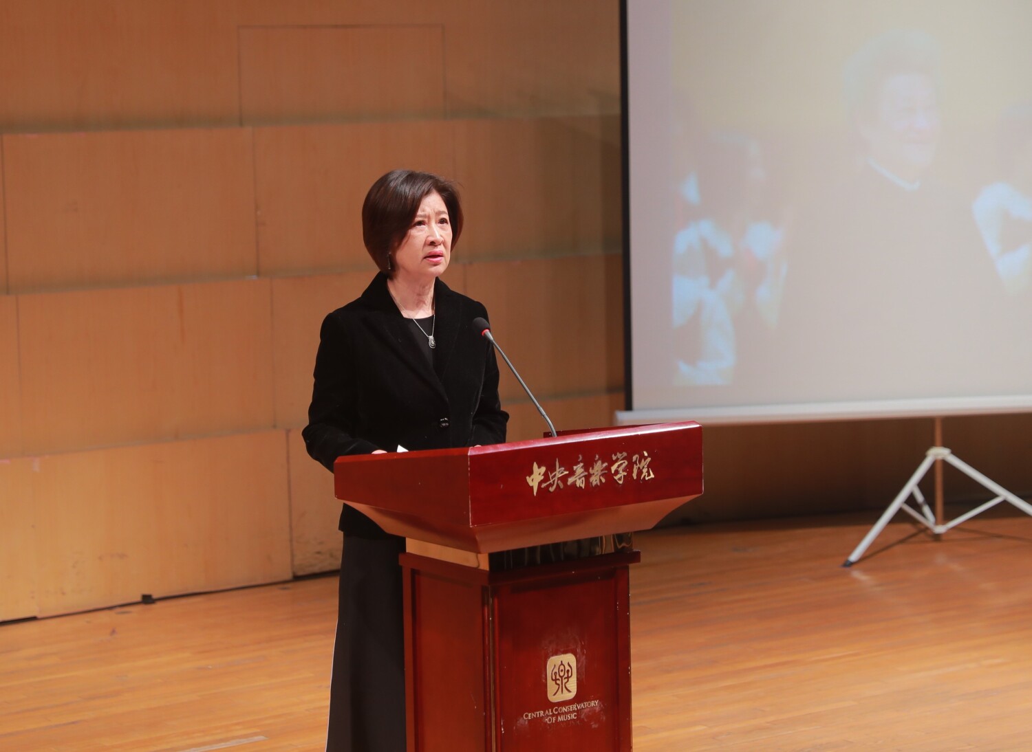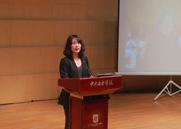 接着指挥系教师党支部书记沈浩教授、教务处处长汤琼教授以及声乐歌剧系副主任(主持)谢天教授分别从曾是杨鸿年老师学生的经历中,回忆了与杨鸿年老师相处的点滴。他们用一个个事例、一段段故事,鲜活地展现出一个博学且好学、和蔼又严厉的杨鸿年老师。令人感触的是,汤琼教授在回忆到杨鸿年老师亲自带团出访的细节时几度哽咽,她说,杨鸿年老师为我们留下的不仅是对艺术的追求和热爱,更是让我们明白普及音乐教育的最终目的是让每一个孩子热爱音乐。