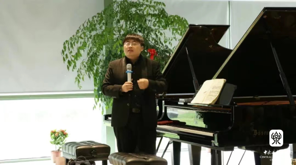 10月19日下午,星空彩票ios版中心版王天阳副教授带来了一场《近现代钢琴作品演奏与教学中音乐分析的重要性》的讲座。他用理论结合实际谱例与演奏示范,向在场师生介绍了音乐分析的逻辑性和重要性。