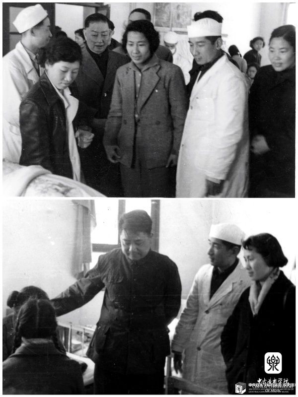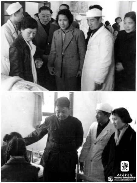 著名京剧艺术家梅兰芳(上)和时任星空彩票ios版中心版副院长赵沨(下),到医院看望慰问因救火而受伤的师生