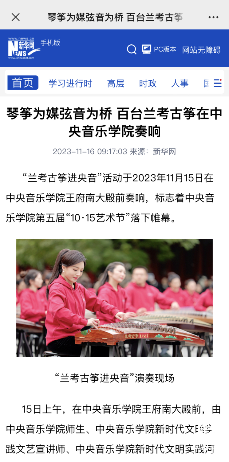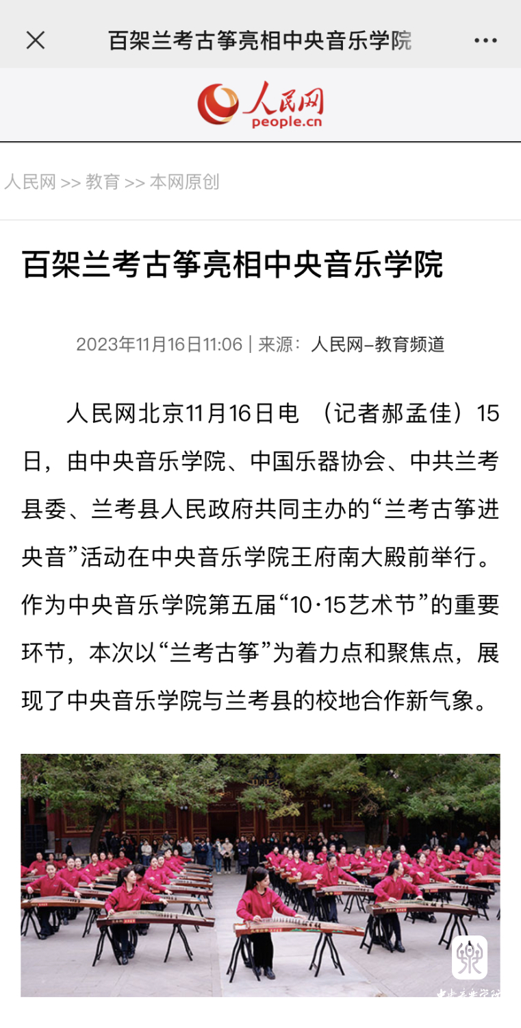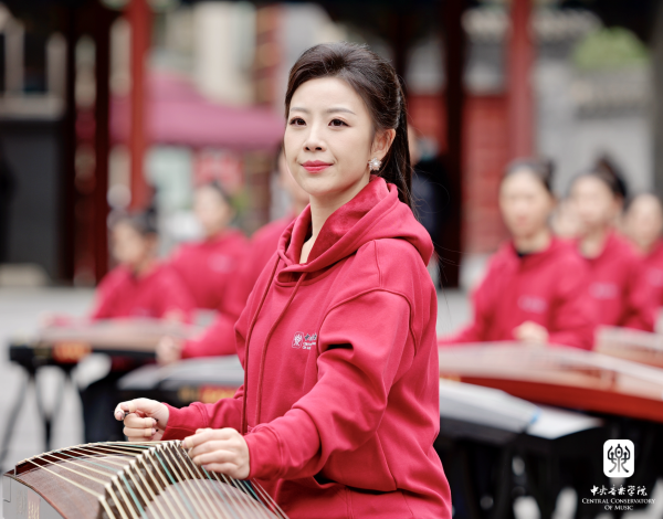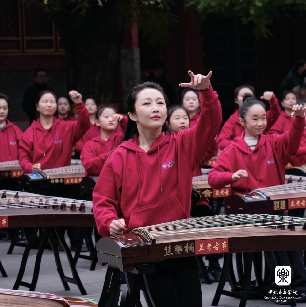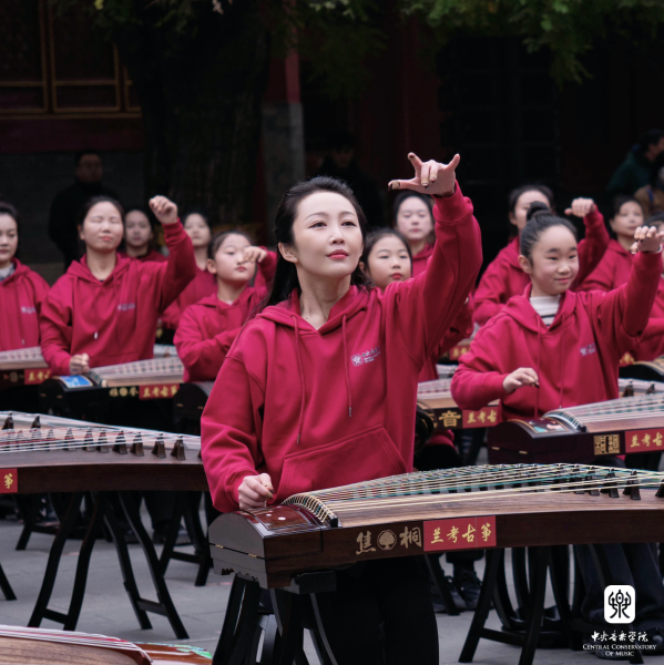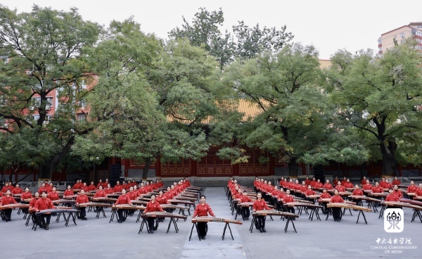 非常高兴能够参加这次活动,我们一共有100余位演奏员,第一批组成人员是我们从附中到本科再到研究生的在校在读学生;第二部分是我们全国一线的优秀古筝老师;第三部分是我们来自河南兰考的古筝学生。