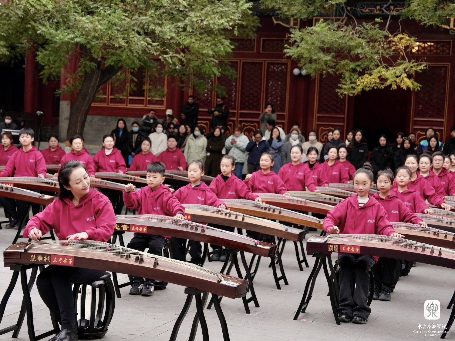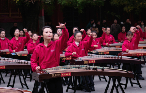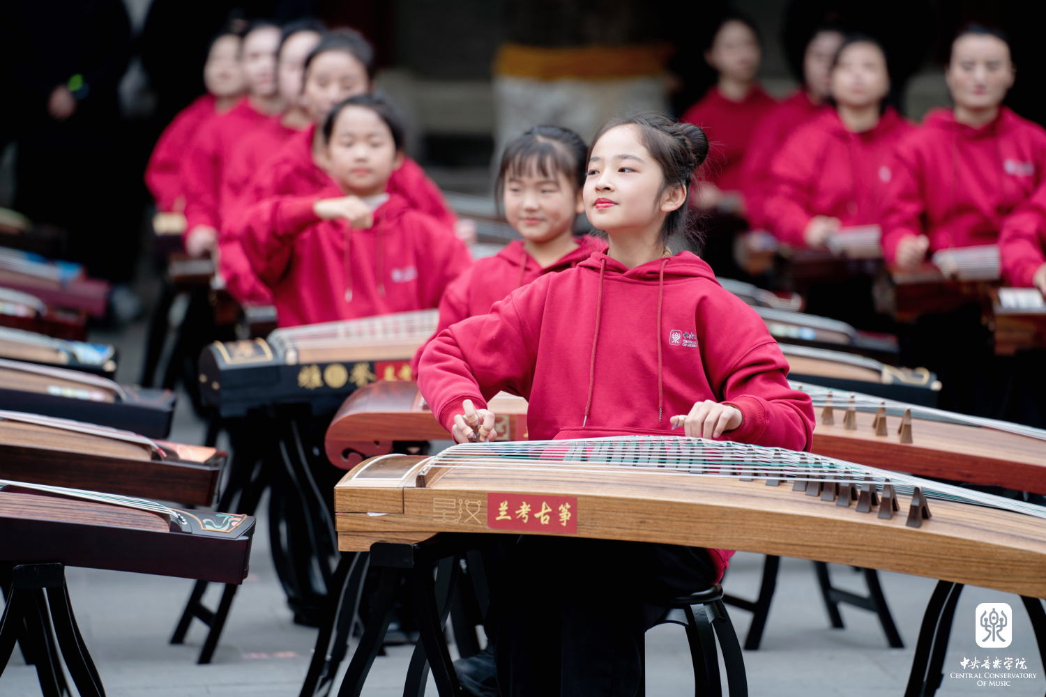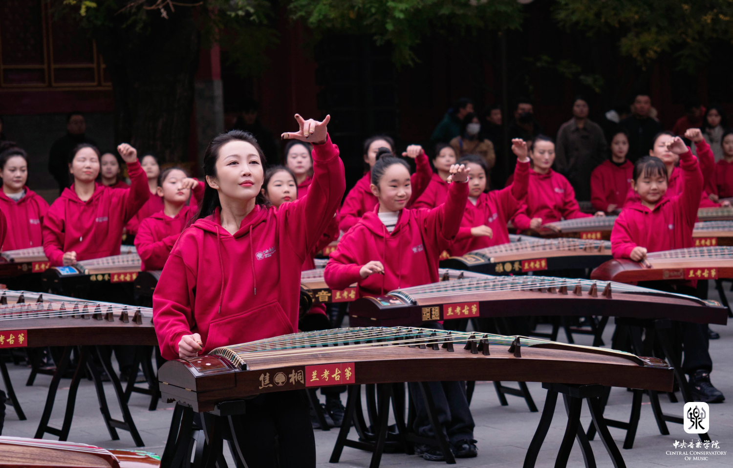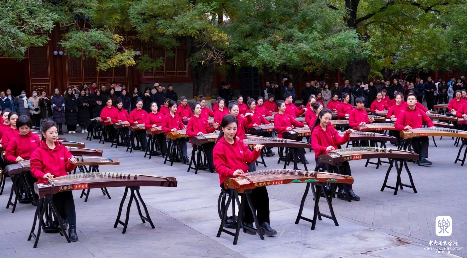非常高兴能够参加这次活动,我们一共有100余位演奏员,第一批组成人员是我们从附中到本科再到研究生的在校在读学生;第二部分是我们全国一线的优秀古筝老师;第三部分是我们来自河南兰考的古筝学生。