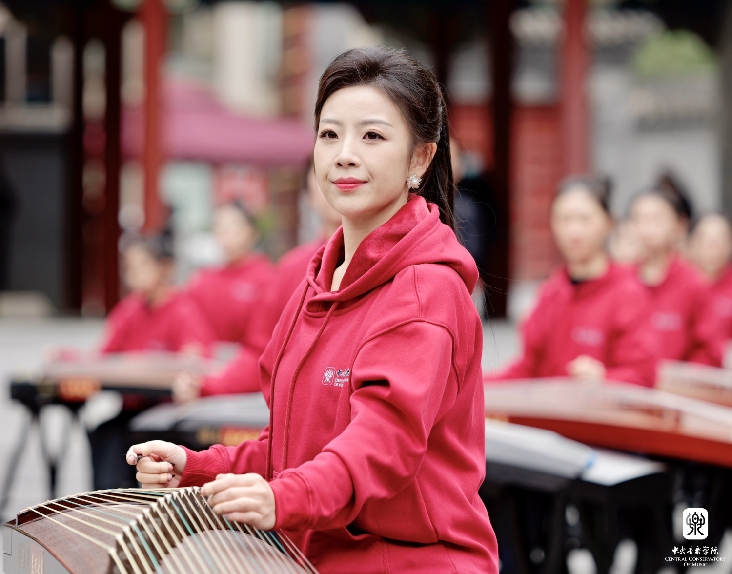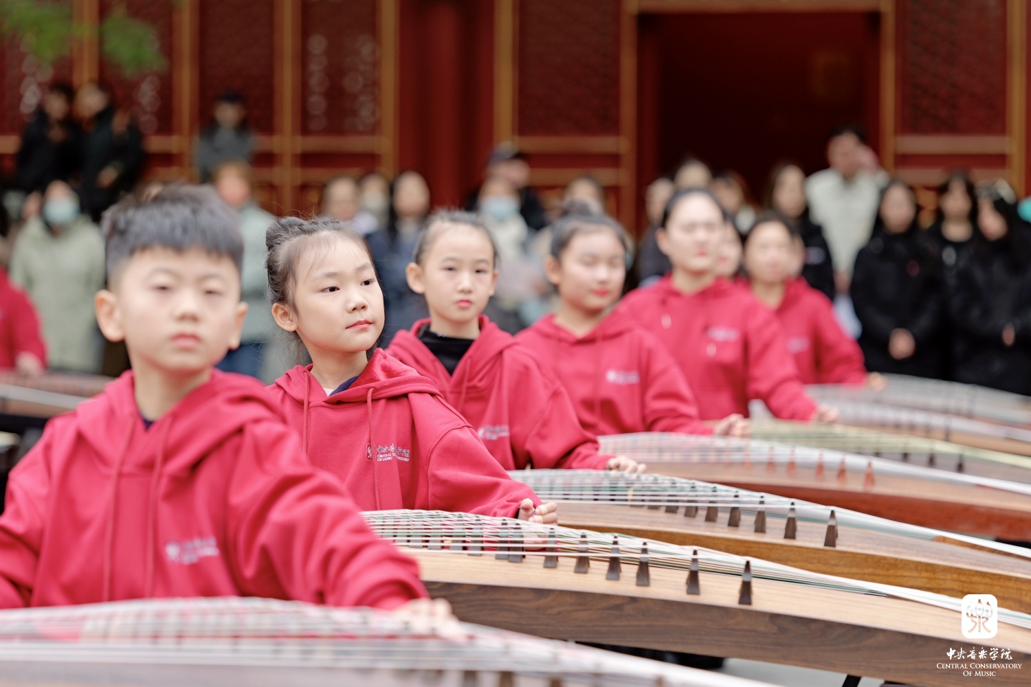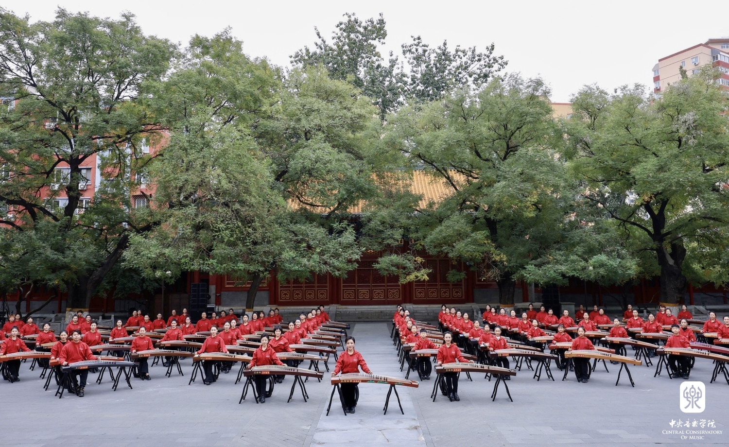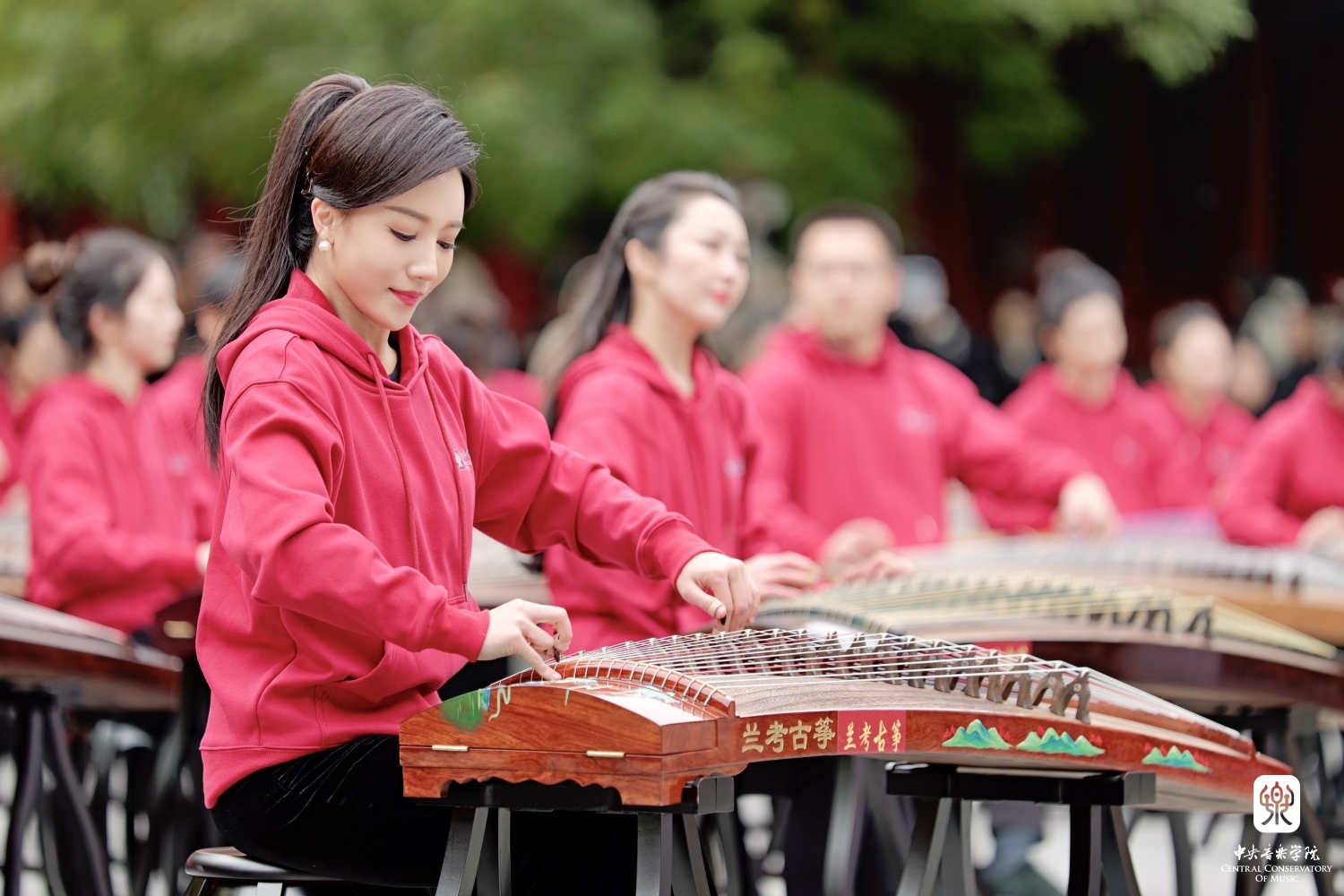 非常高兴能够参加这次活动,我们一共有100余位演奏员,第一批组成人员是我们从附中到本科再到研究生的在校在读学生;第二部分是我们全国一线的优秀古筝老师;第三部分是我们来自河南兰考的古筝学生。