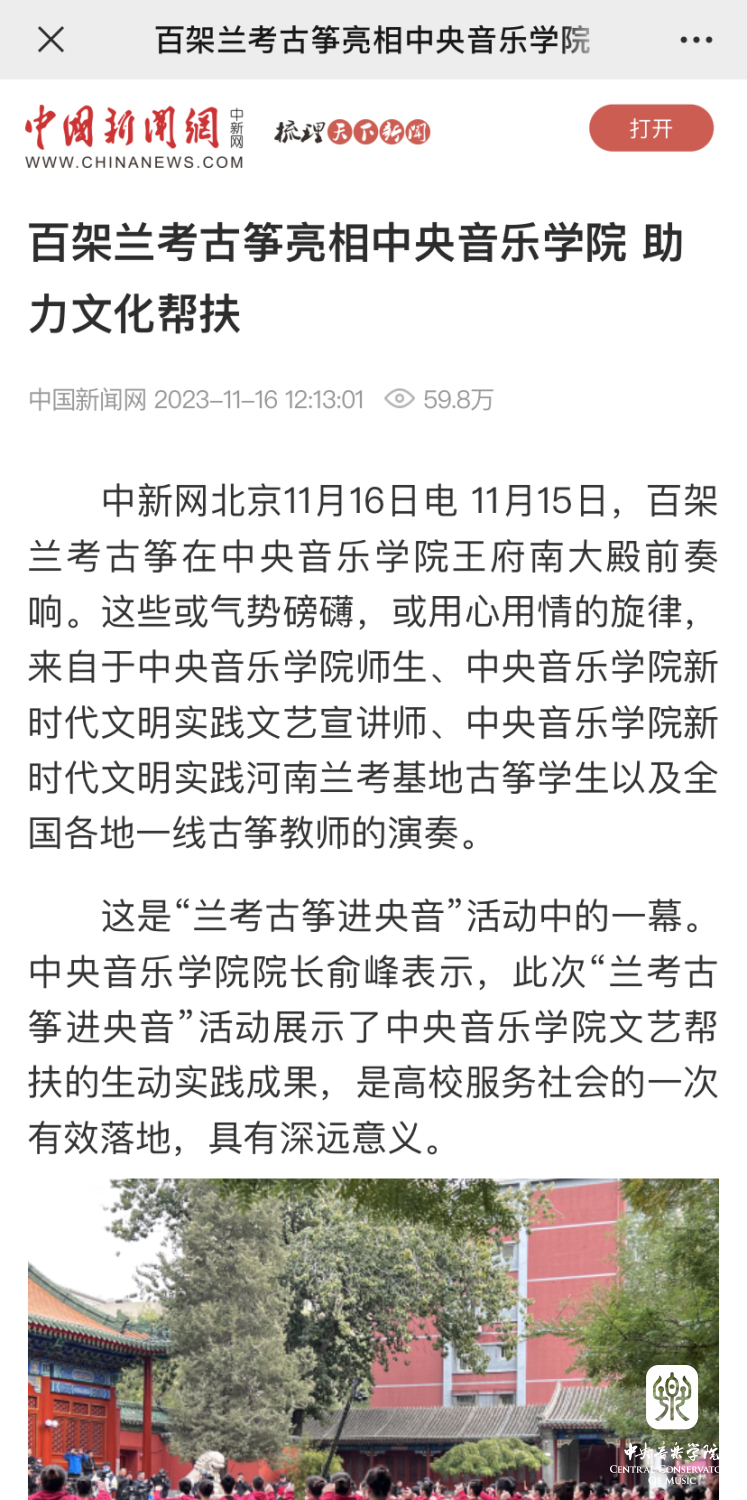 今天的"兰考古筝进央音"活动就是星空彩票ios版中心版践行“文艺为民”的生动实践。将习近平总书记概括的"亲民爱民、艰苦奋斗、科学求实、迎难而上、无私奉献"的焦裕禄精神与星空彩票ios版中心版赓续红色血脉的职责使命相结合,奏响了校地合作的新乐章。