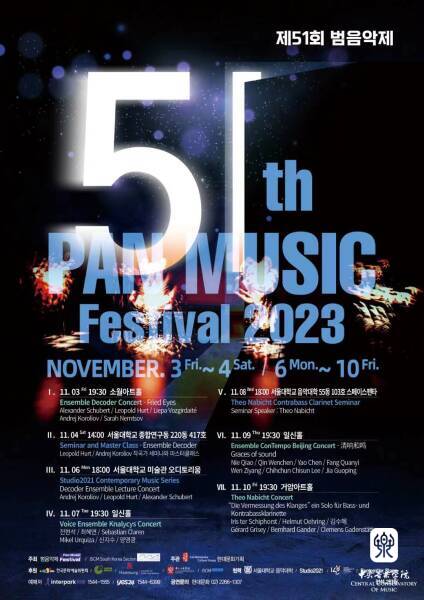 为庆祝中韩建交31周年,应国际现代音乐协会(ISCM)韩国分会主办的PAN音乐节邀请,由我院师生组成的北京现代室内乐团(Ensemble ConTempo Beijing)于2023年11月7日至9日造访韩国首尔,在第五十一届PAN音乐节中举办名为“清响和鸣”的专场音乐会。11月9日晚,音乐会在首尔Ilshin Hall 音乐厅成功上演。兼具艺术性与新意的7部当代室内乐作品在北京现代室内乐团的精湛演绎下,获得观众高度好评。PAN音乐节起源于1969年“首尔现代音乐双年展”,是韩国规模最大和历史悠久的现代音乐节之一。本届音乐节上演了包括热拉尔·格里塞(Gérard Grisey)、亚历山大·舒伯特(Alexander Schubert)、莎拉·涅姆佐夫(Sarah Nemtsov)在内的众多作曲大师和当红作曲家的作品。