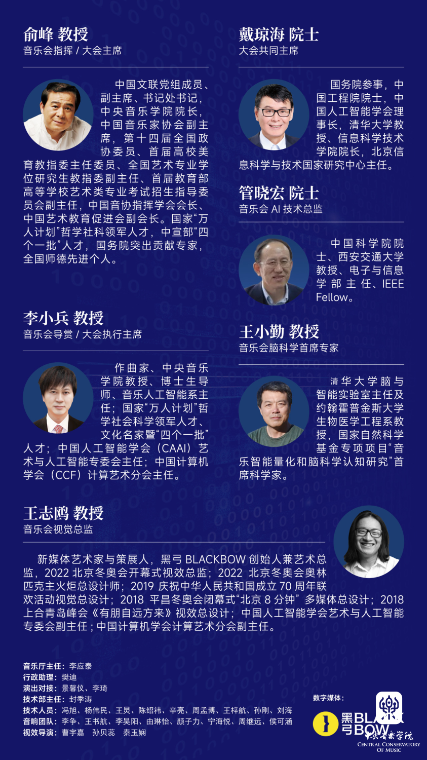 开幕式音乐会以音乐、人工智能与脑科学的跨界融合为特色的“未来音乐会”上演。音乐会的创作团队由作曲家、演奏家和工程师共同组成,涵盖了人工智能、脑机接口技术、表情情感识别、AI生成视觉、虚拟人等多种前沿技术形式。
