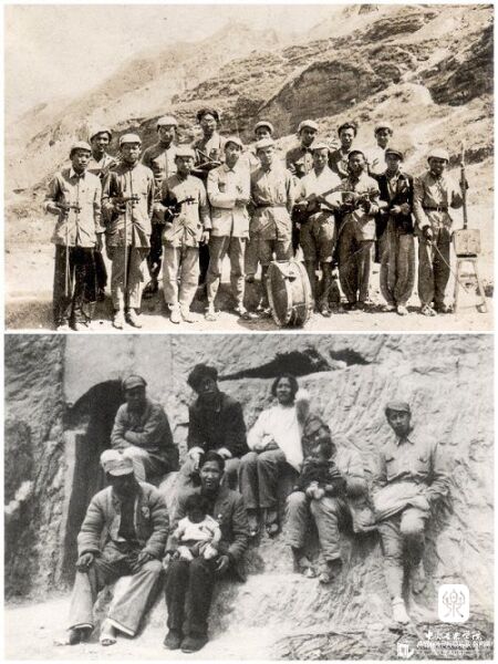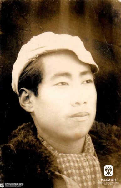 下,1940年初春,延安“鲁艺”东山,冼星海在窑洞门前与音乐教员们合影(前排左起:马可、冼星海抱着女儿冼妮娜;后排左起:张鲁、杜矢甲、唐荣枚、向隅抱着向延生、李焕之)