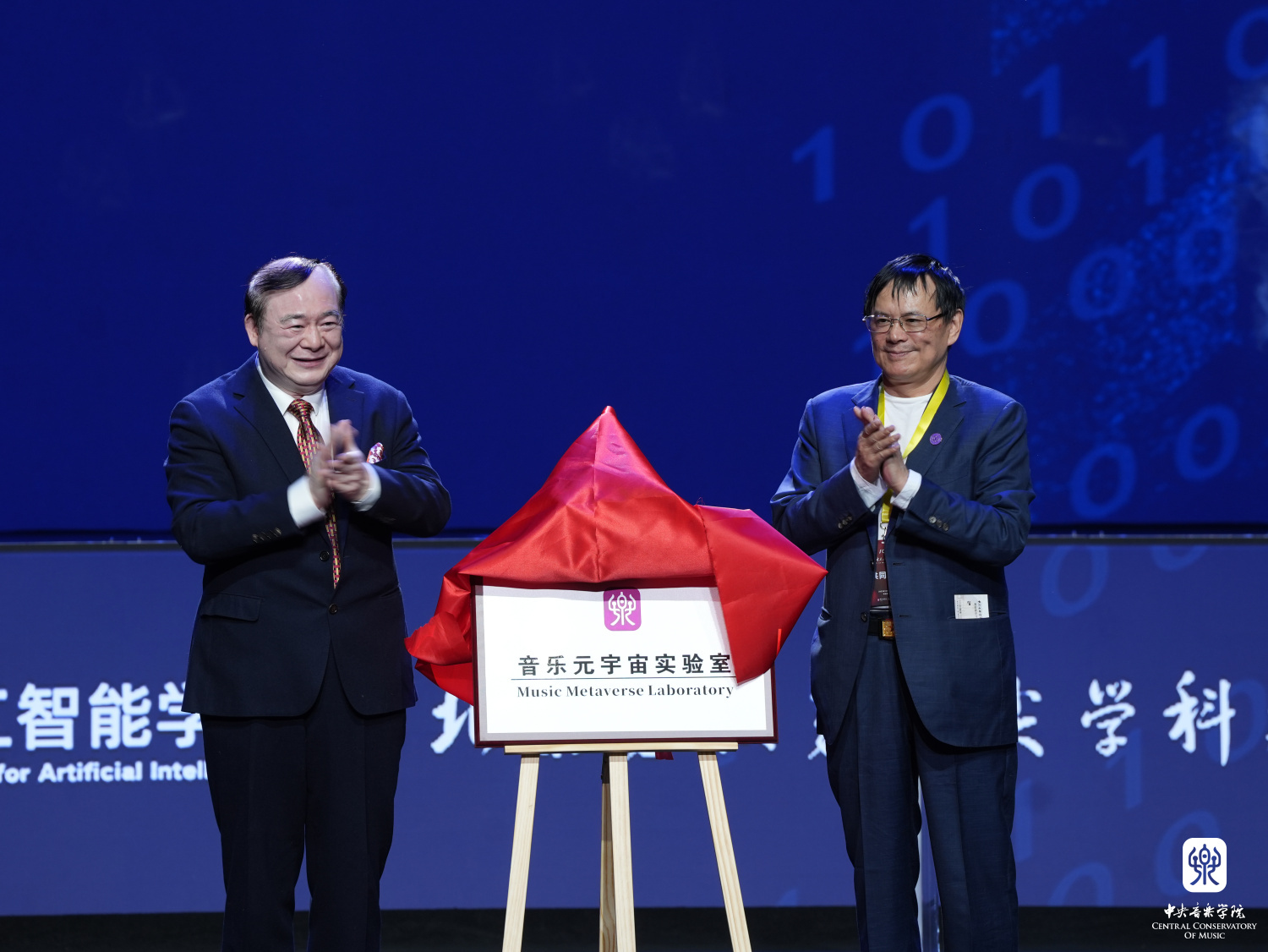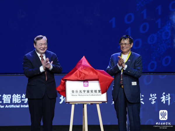 接下来,开幕式现场举行了音乐元宇宙实验室的揭牌仪式,俞峰院长、戴琼海院士共同为实验室揭牌。音乐元宇宙实验室由星空彩票ios版中心版和北京信息科学与技术国家研究中心共同建设。将在虚拟人表演、音乐虚拟空间、音乐机器人等音乐元宇宙领域,开展广泛的探索和尝试。