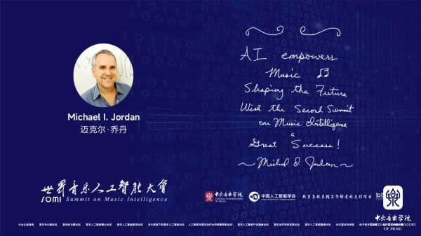 开幕前夕,国际著名人工智能学者,美国科学院、工程院、艺术与科学院三院院士Michael l. Jordan先生祝贺大会:AI empowers music. Shaping the future. Wish the Second Summit on Music Intelligence great success!(人工智能为音乐赋能,塑造未来。预祝第二届世界音乐人工智能大会圆满成功!)