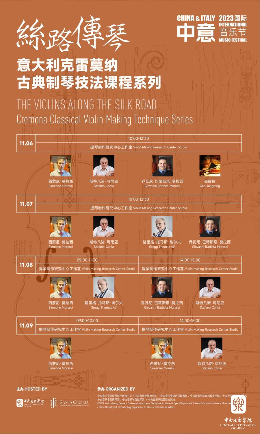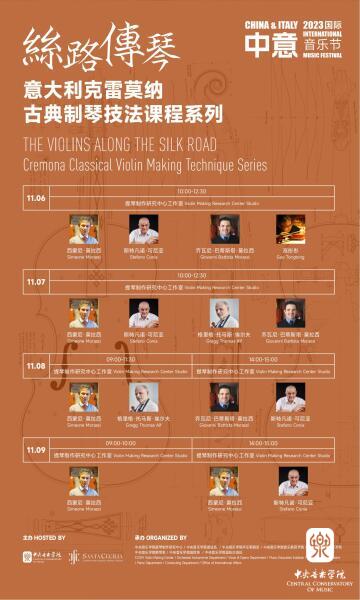 本次音乐节得到了意大利驻中国大使馆,意中友协、国际提琴制作协会和克莱蒙纳提琴博物馆等机构的大力支持,并与诸多优秀的意大利音乐学院合作,邀请到了意大利米兰威尔第音乐学院(“Giuseppe Verdi” Conservatory of Music in Milan)、威尼斯马塞洛音乐学院(“Benedetto Marcello” Conservatory of Music in Venice)、墨西拿科雷利音乐学院( “Arcangelo Corelli” Conservatory of Music in Messina)、博洛尼亚马丁尼音乐学院(“Martini” Conservatory of Music in Bologna)和克莱蒙纳国际提琴制作学校等多所意大利知名音乐学院的教授,开展多系列优质生动的大师班活动,展现多场精彩纷呈的音乐演出,为音乐学子和广大观众带来有关意大利音乐文化多维度、多样化、多视角的丰富活动,为中意音乐文化的进一步友好交流奠定深厚基础。