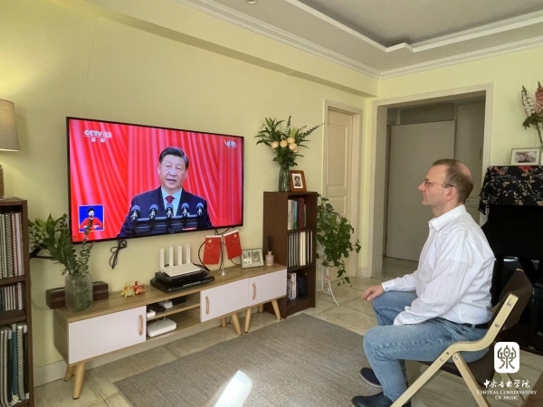 处在党和国家为我们创造的美好环境里,我们是时代的受益者,更是时代的贡献者,我们央音学子要始终坚定理想信念,坚定跟党走,做新一代的文艺开拓者和创新者,用文艺体现时代风貌,用文艺引领时代风尚,书写绚丽人生。