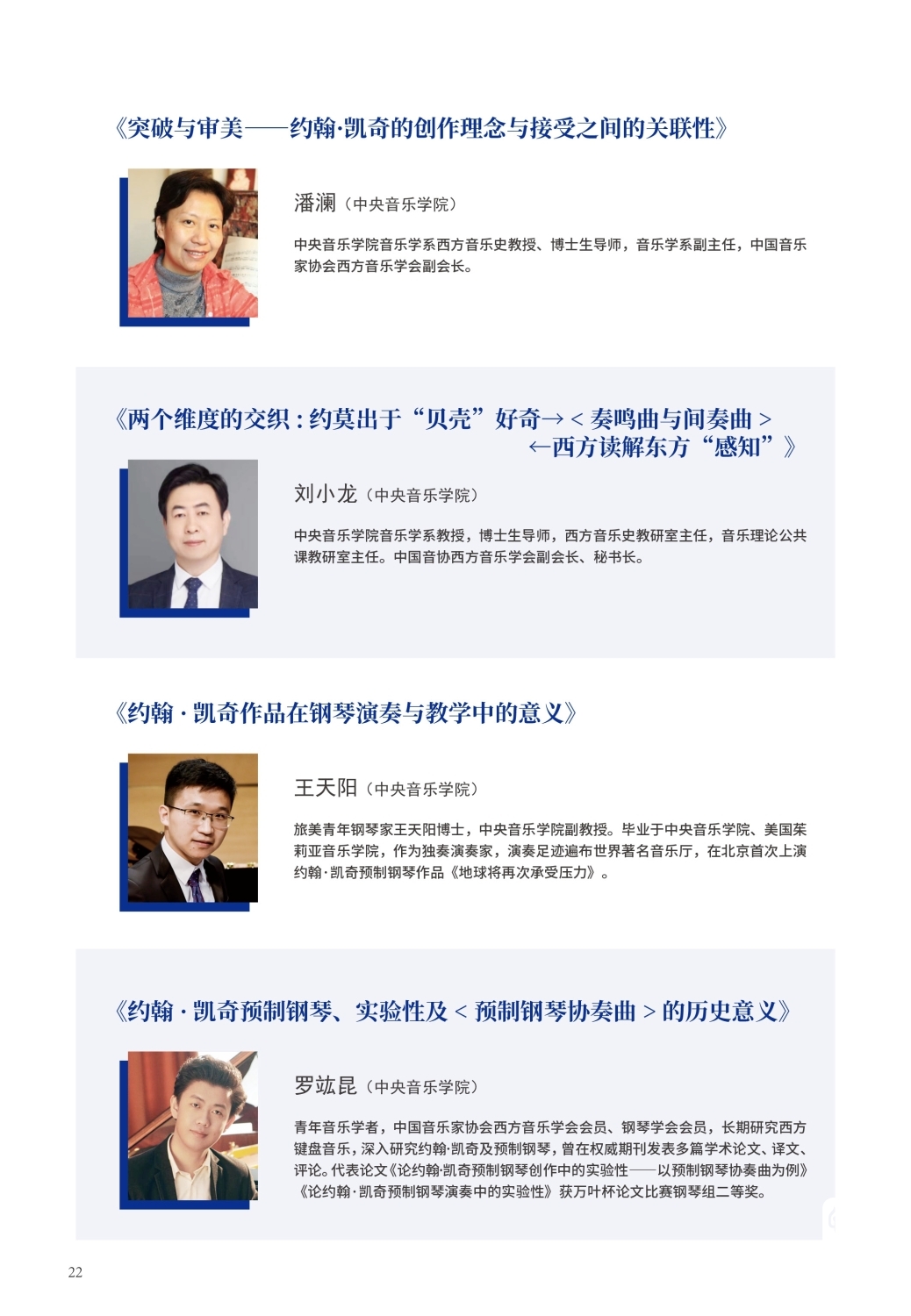 从音乐会、研讨会到艺术展,为期两天的活动将呈现中国学界对凯奇音乐的深度研究。各位专家将分享各自的学术研究心得,从不同专业视域对凯奇展开研讨,相信这将是一场令人期待的学术盛会!