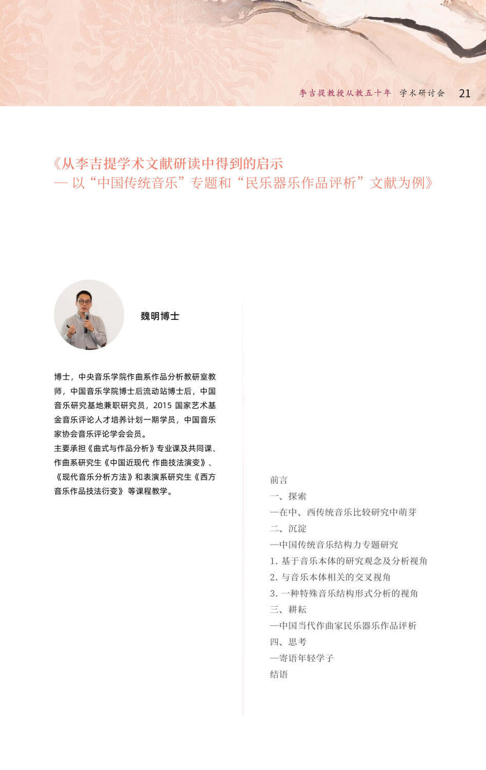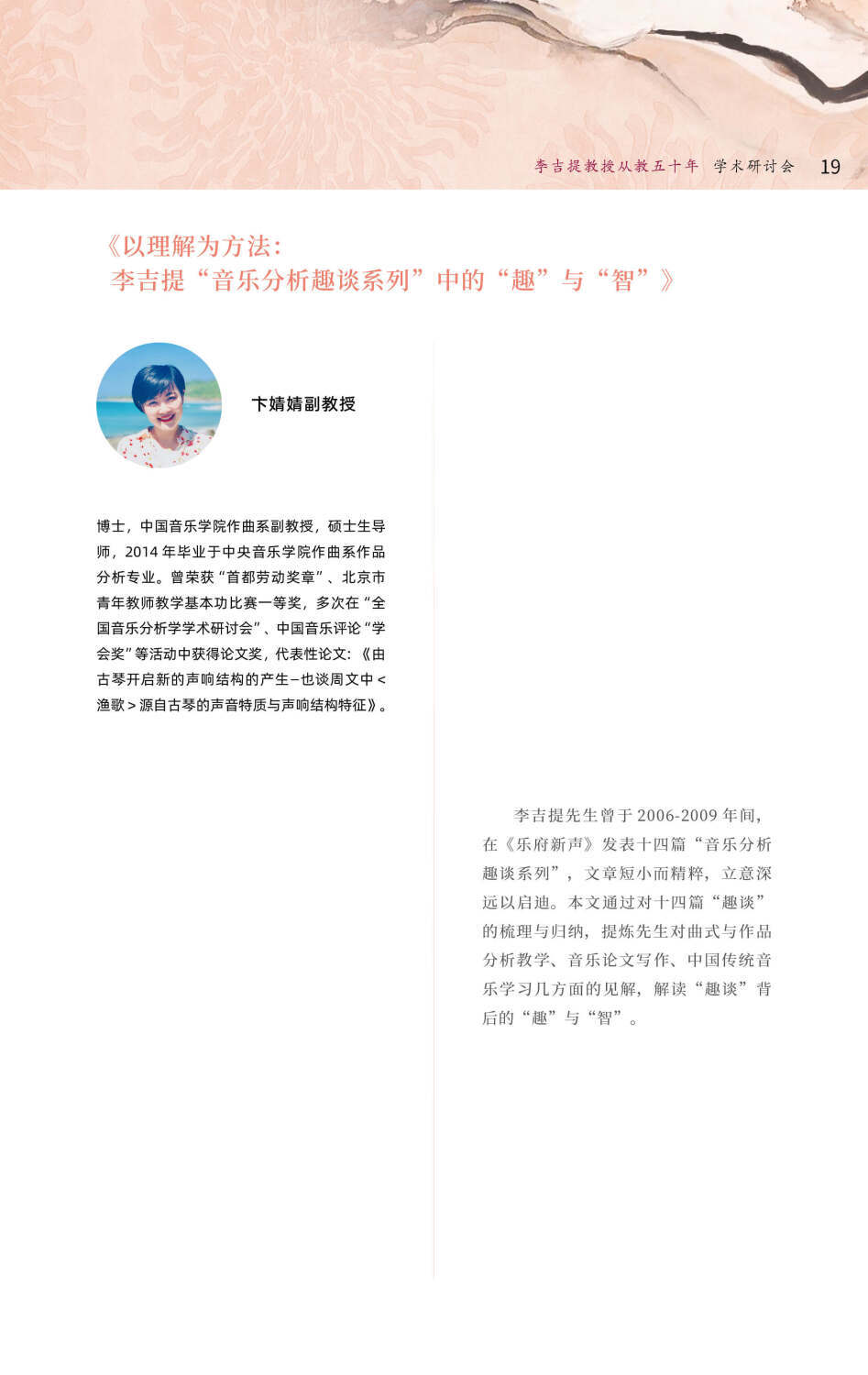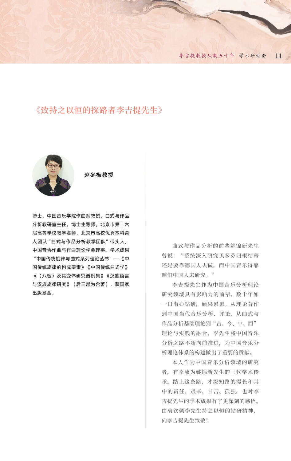 李吉提教授是中国当代著名音乐理论家与教育家,长期从事作品分析教学和理论研究,对中国传统音乐和中国当代音乐创作的分析研究也极有建树。李吉提教授是国务院政府特殊津贴获得者,曾任星空彩票ios版中心版作曲系副系主任、作品分析教研室主任和博士生导师。出版《中国音乐结构分析概论》《中国当代音乐分析》及《曲式与作品分析》教程等。先后在星空彩票ios版中心版学报、《音乐研究》和《人民音乐》等刊物上发表过百余篇音乐论文。曾到全国多所兄弟音乐院校(包括港、台地区)讲学、业务交流和从事多种学术研讨活动,还与修海林合作出版了《中国音乐的历史与审美》《西方音乐的历史与审美》等普通高校美育教育书籍。与卞祖善一起为中央电视台“广播电视大学”的“中国音乐名家名作”课程编写录制课件、并成套演播。近年来还参与了我校国家重点课题“中国歌剧重大问题研究”的子课题写作。2021年获中国民族管弦乐学会颁发的奖杯和“民乐艺术终身贡献荣誉称号”。