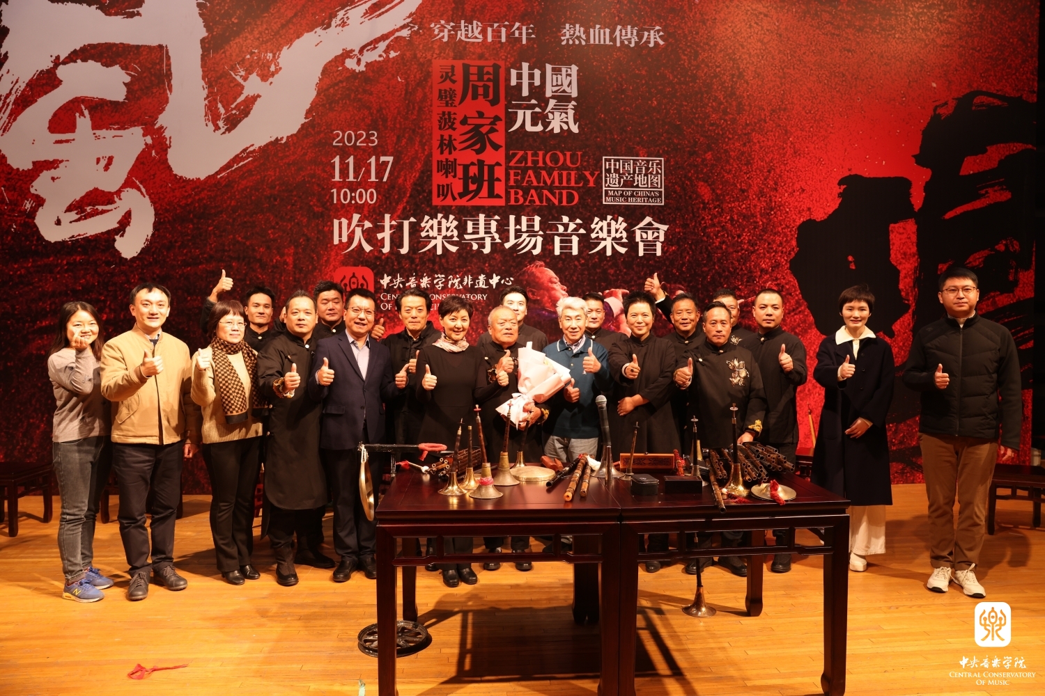 2023年11月17日,应我校非遗中心邀请,安徽灵璧菠林喇叭艺术代表性传承人周本鸣带领“周家班”在我校成功举办吹打专场音乐会及工作坊。