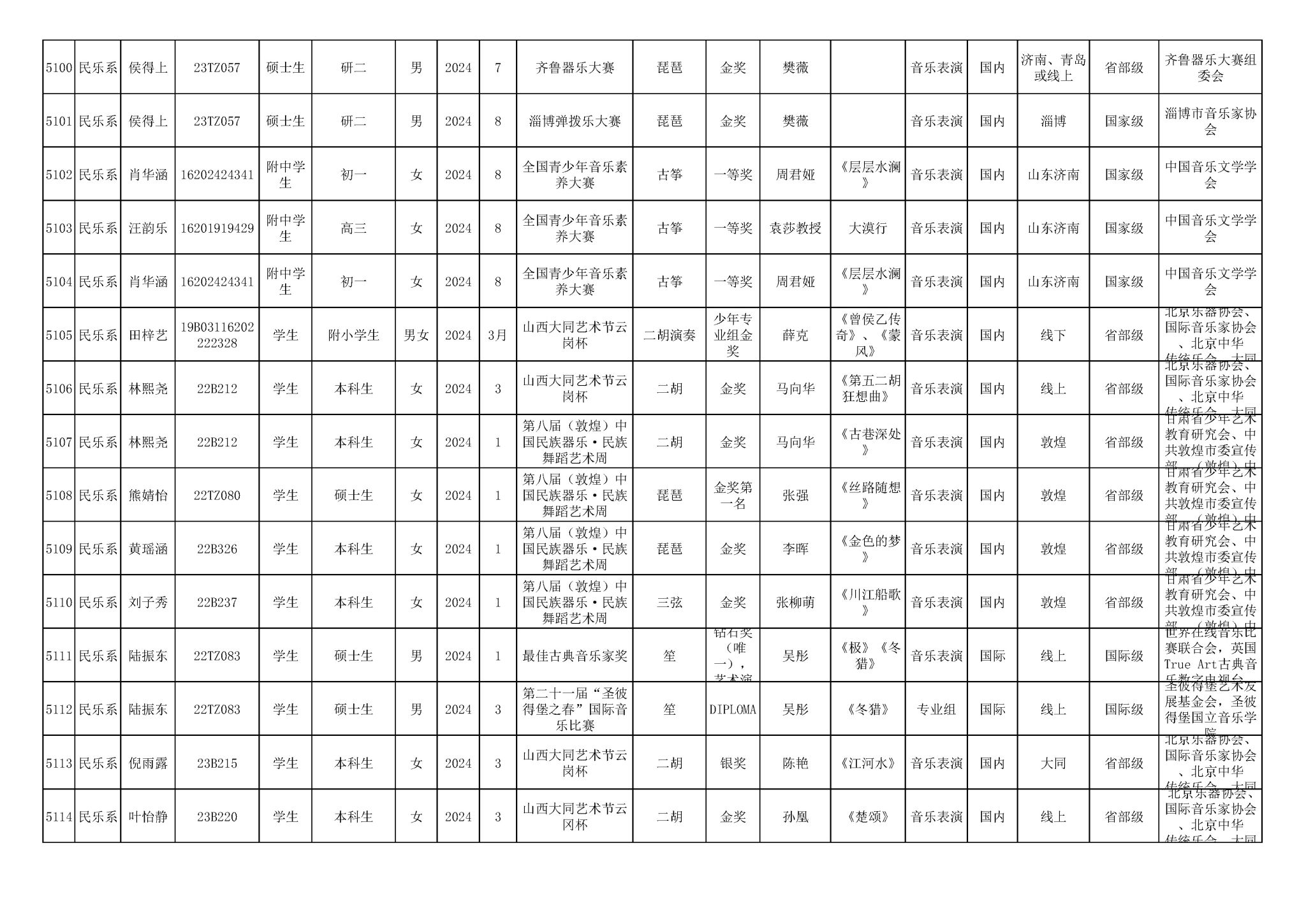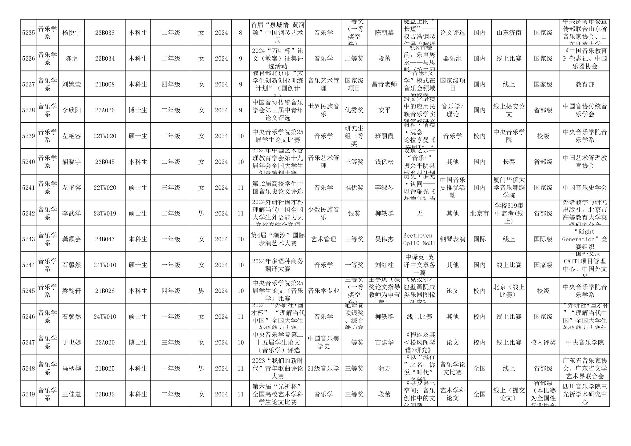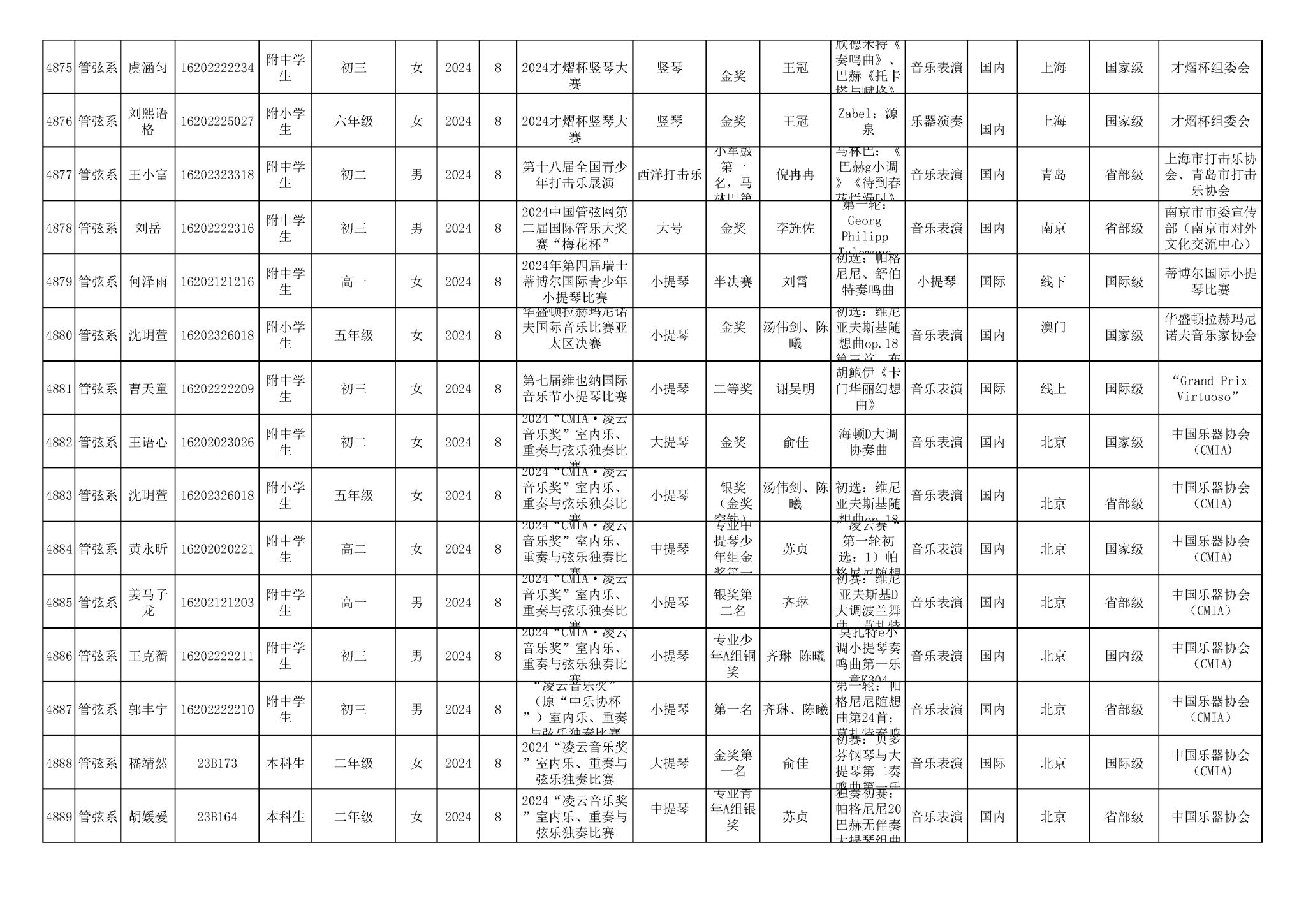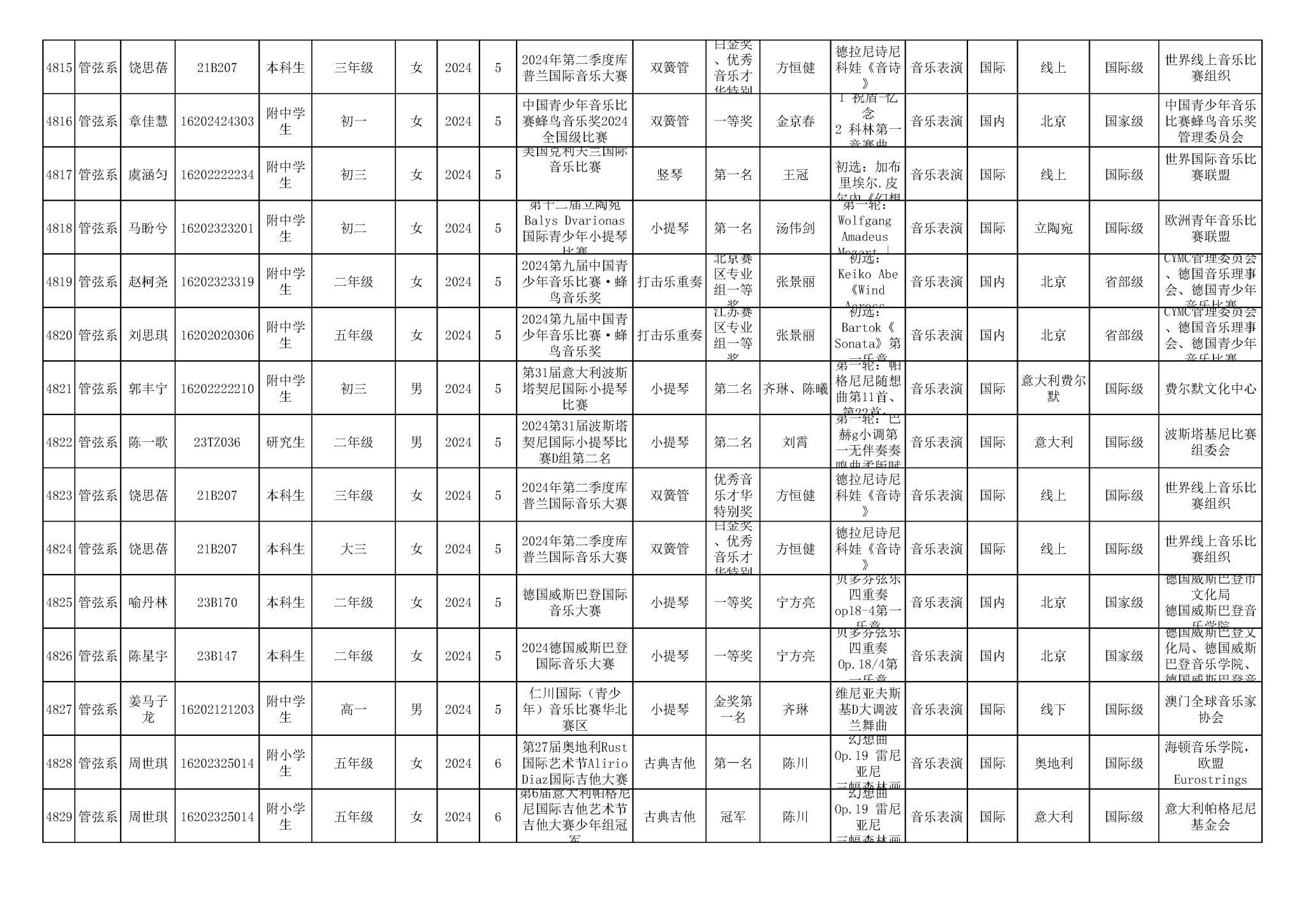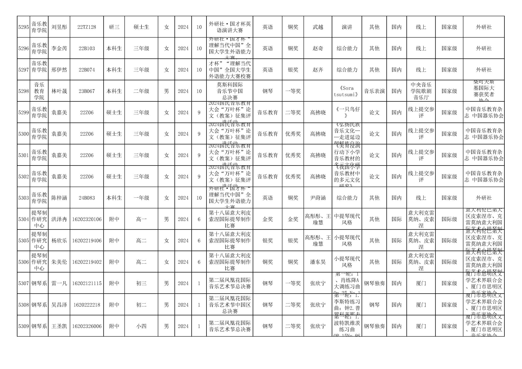 2016-2024年星空彩票ios版中心版(学生)获奖统计