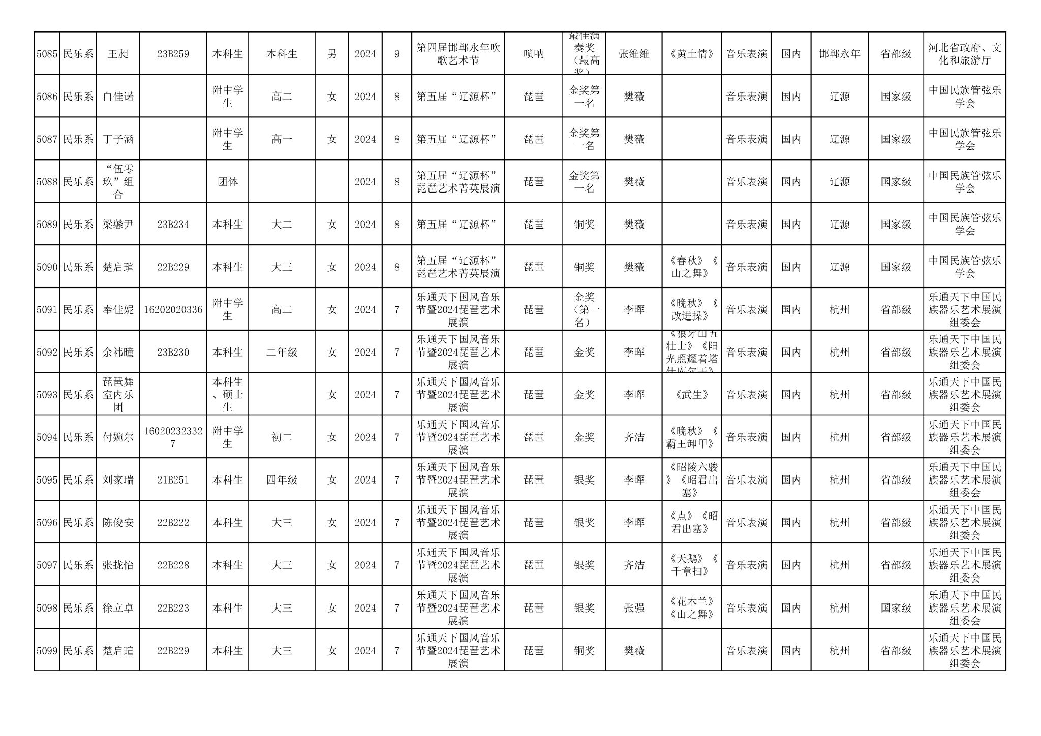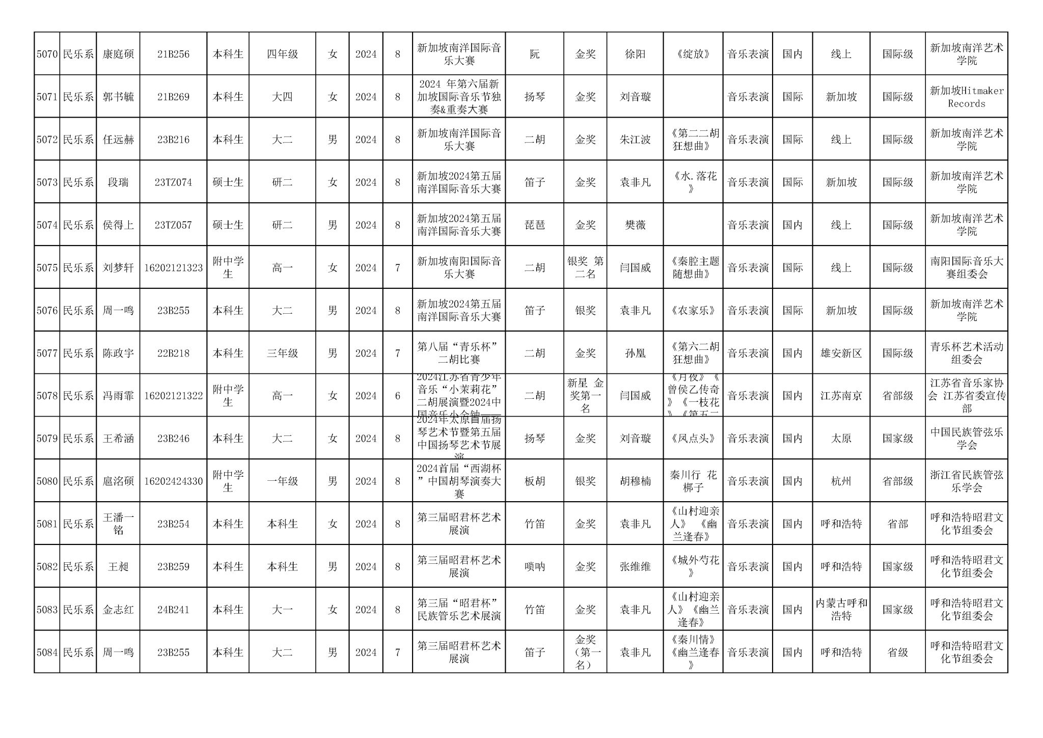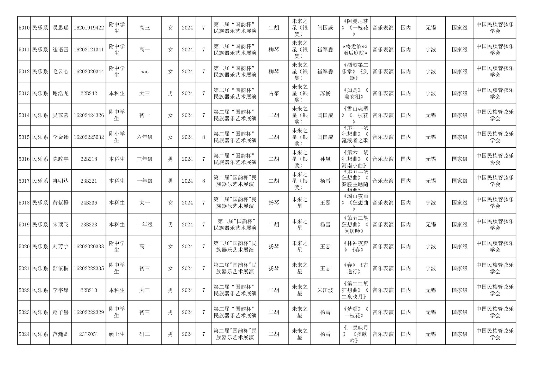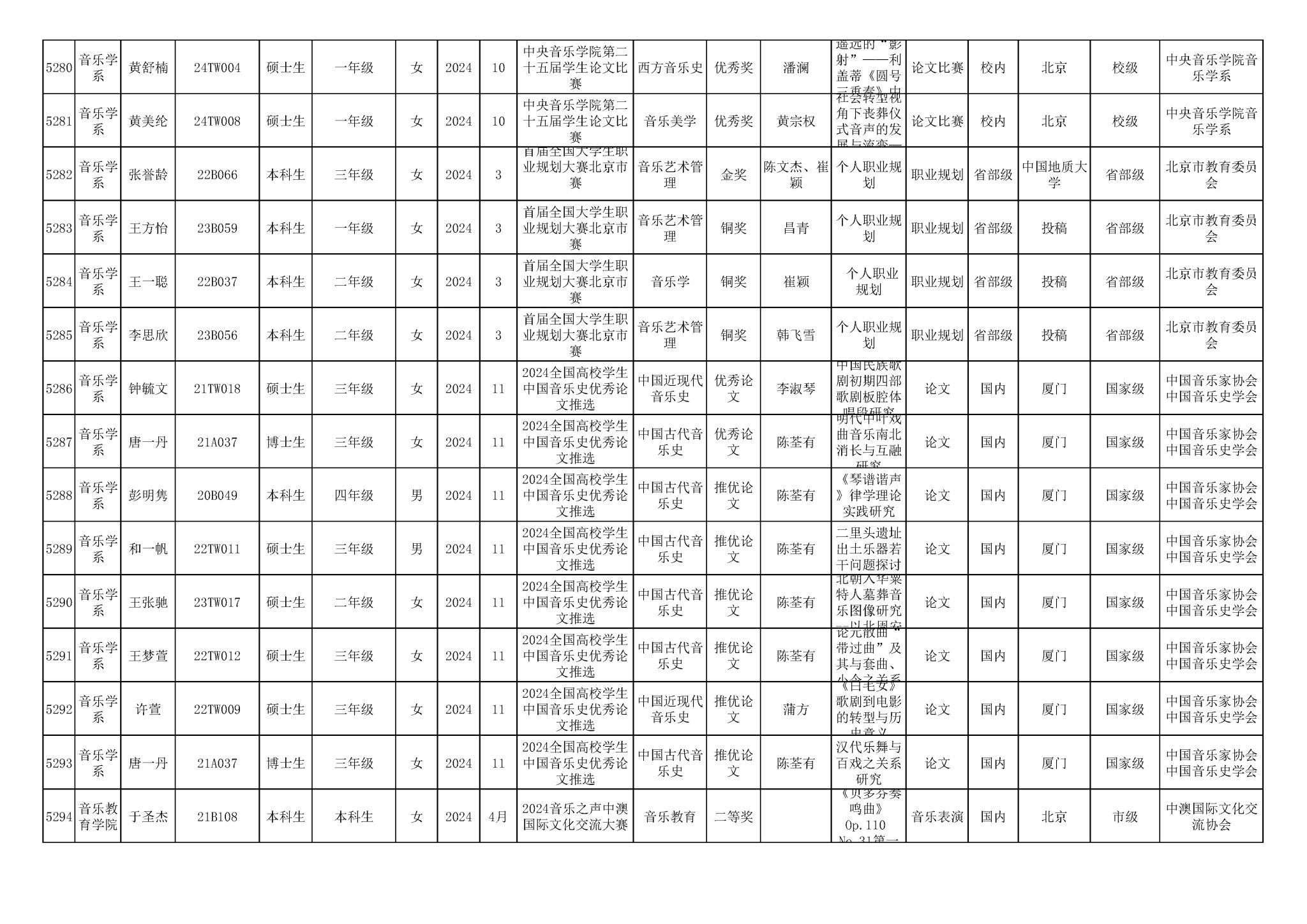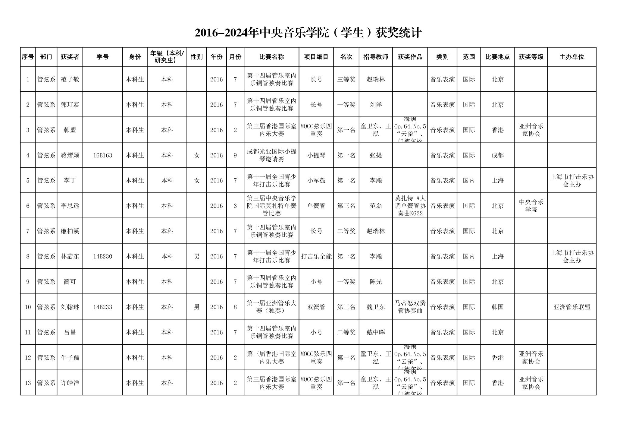 2016-2024年星空彩票ios版中心版(学生)获奖统计