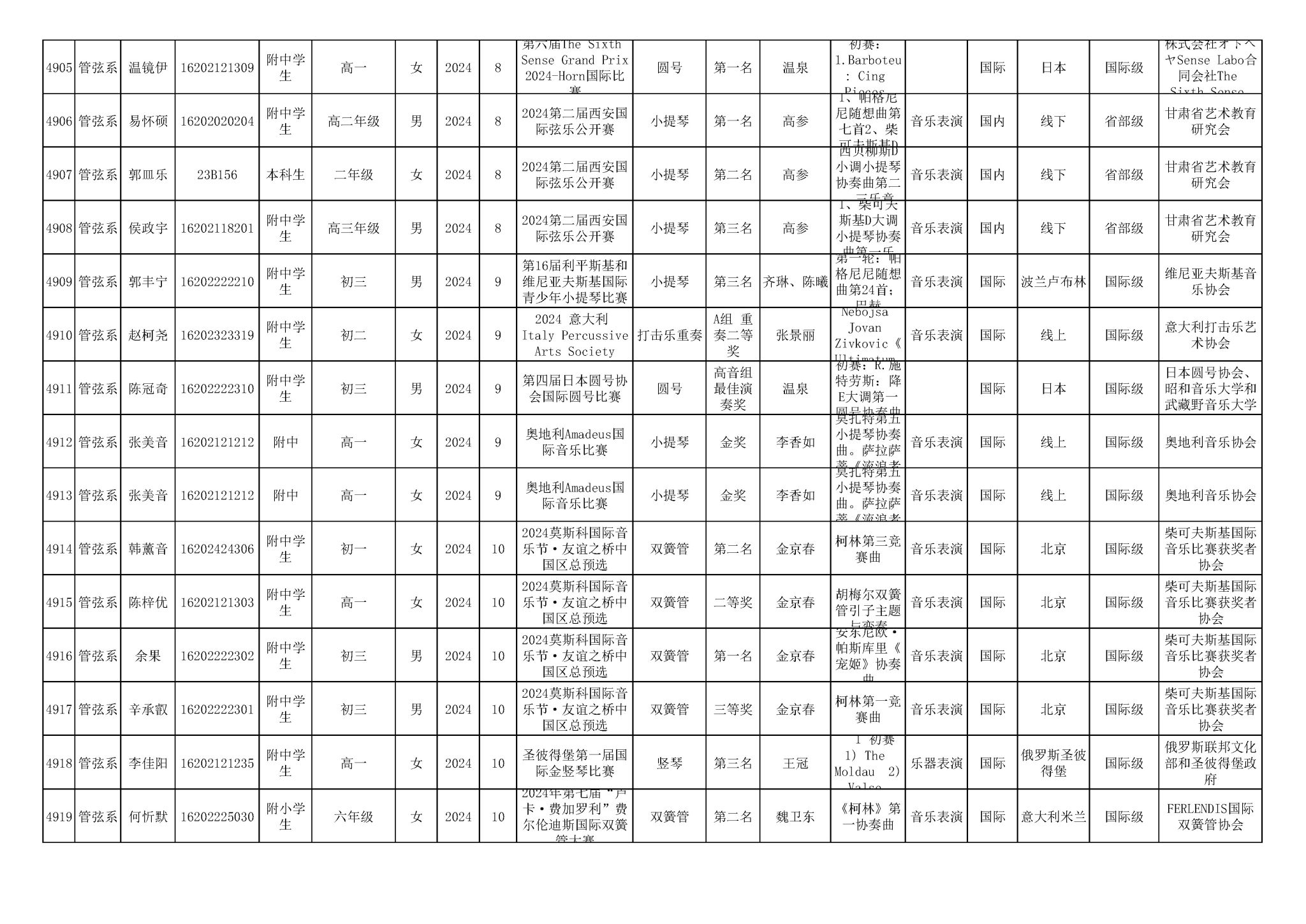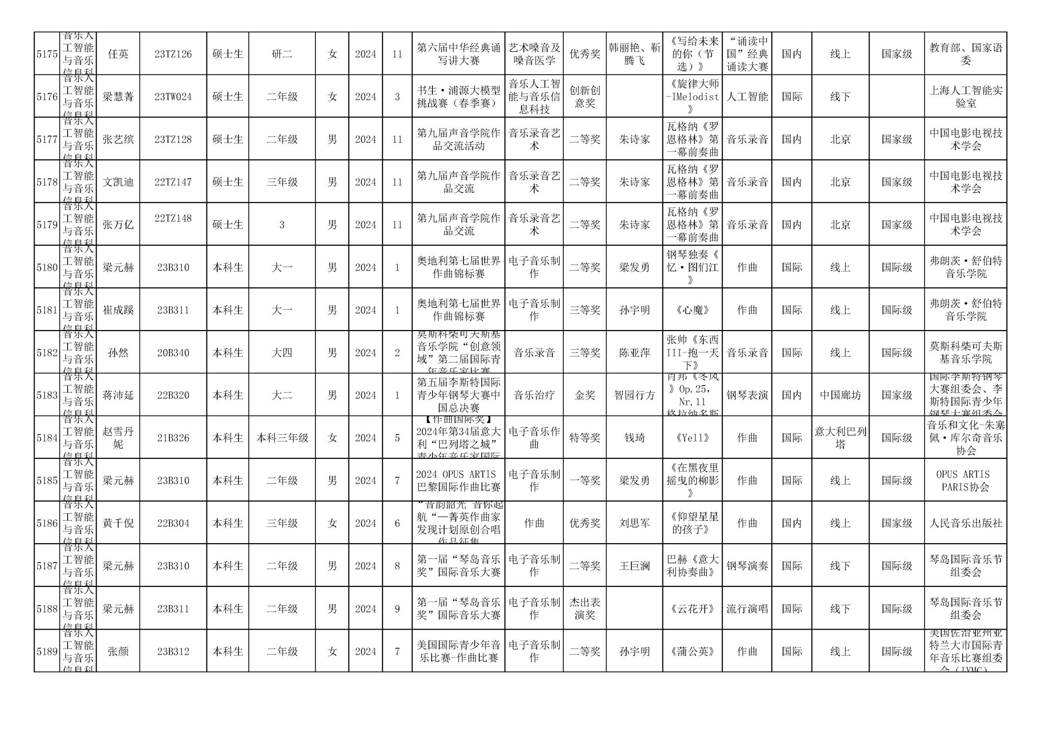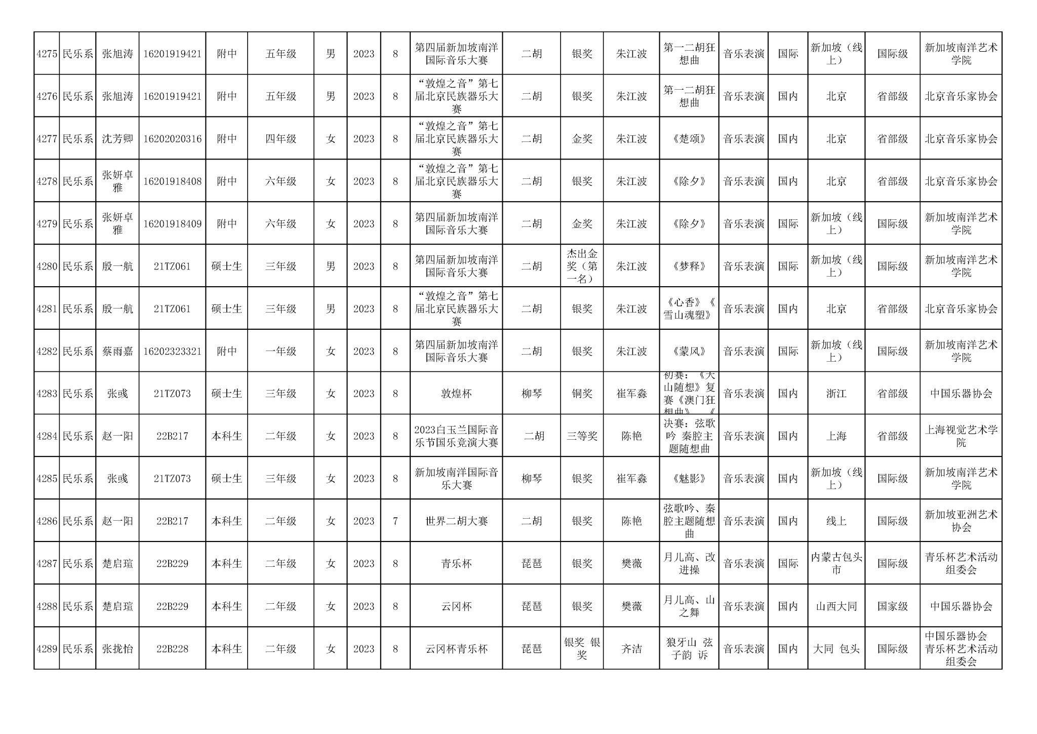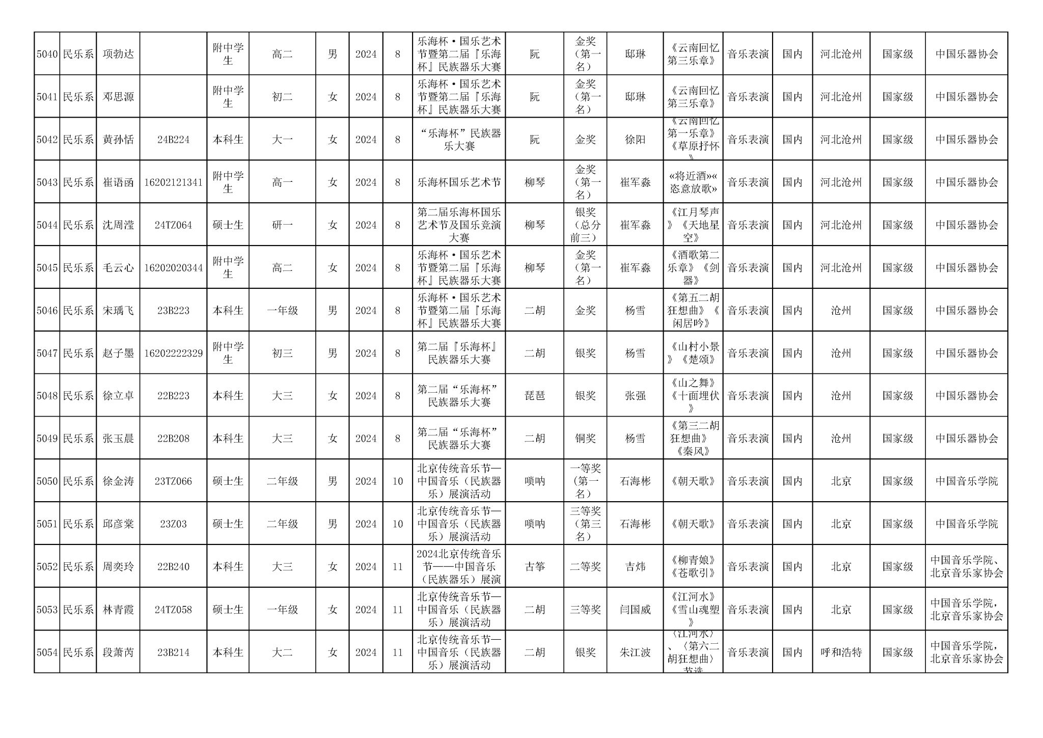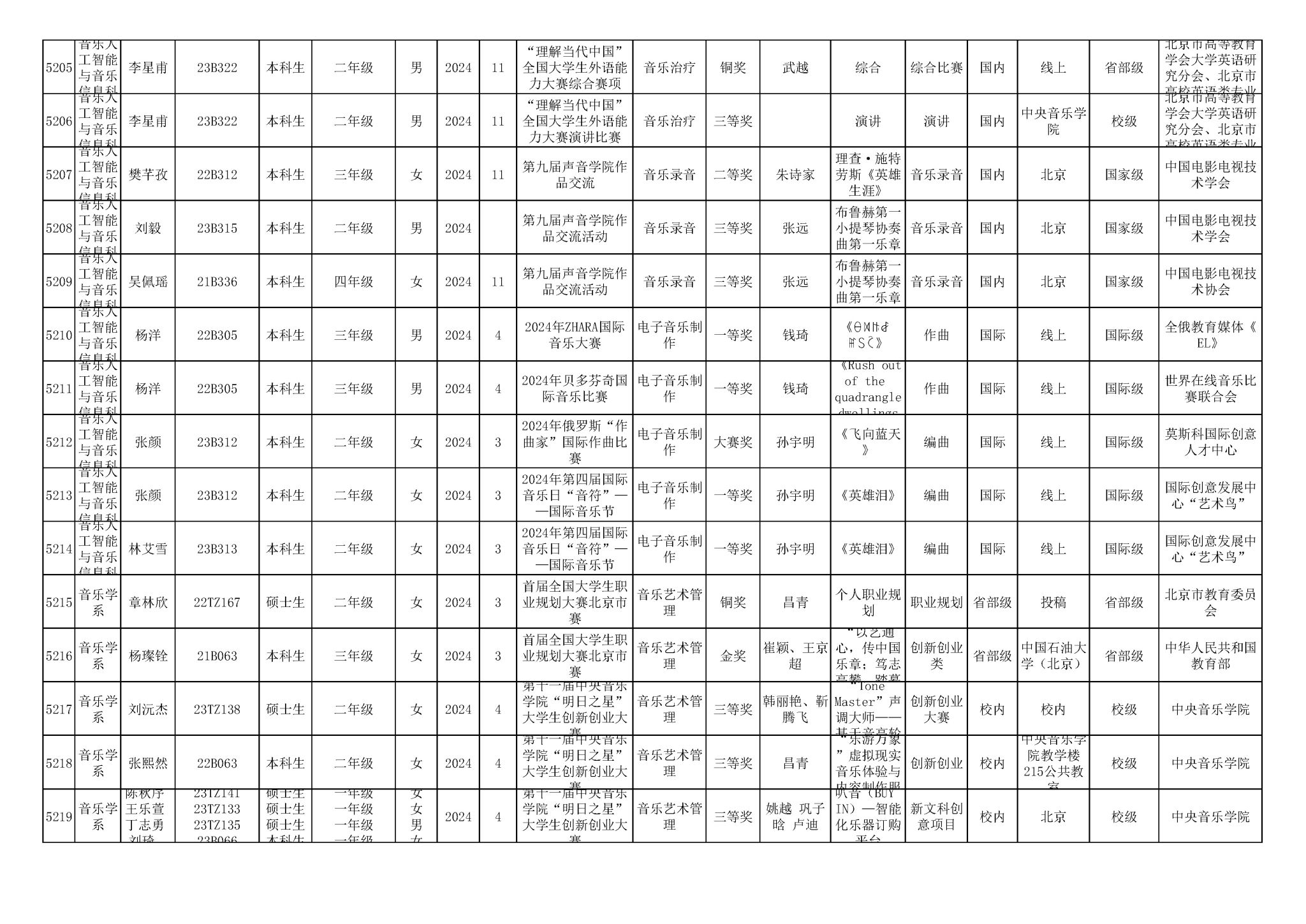 2016-2024年星空彩票ios版中心版(学生)获奖统计