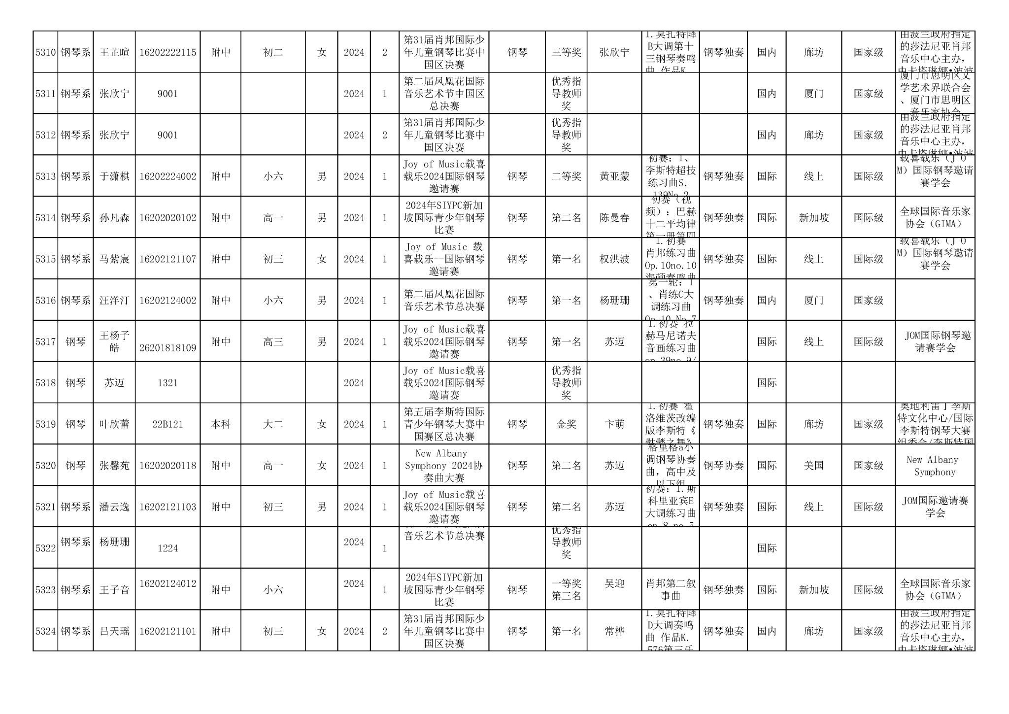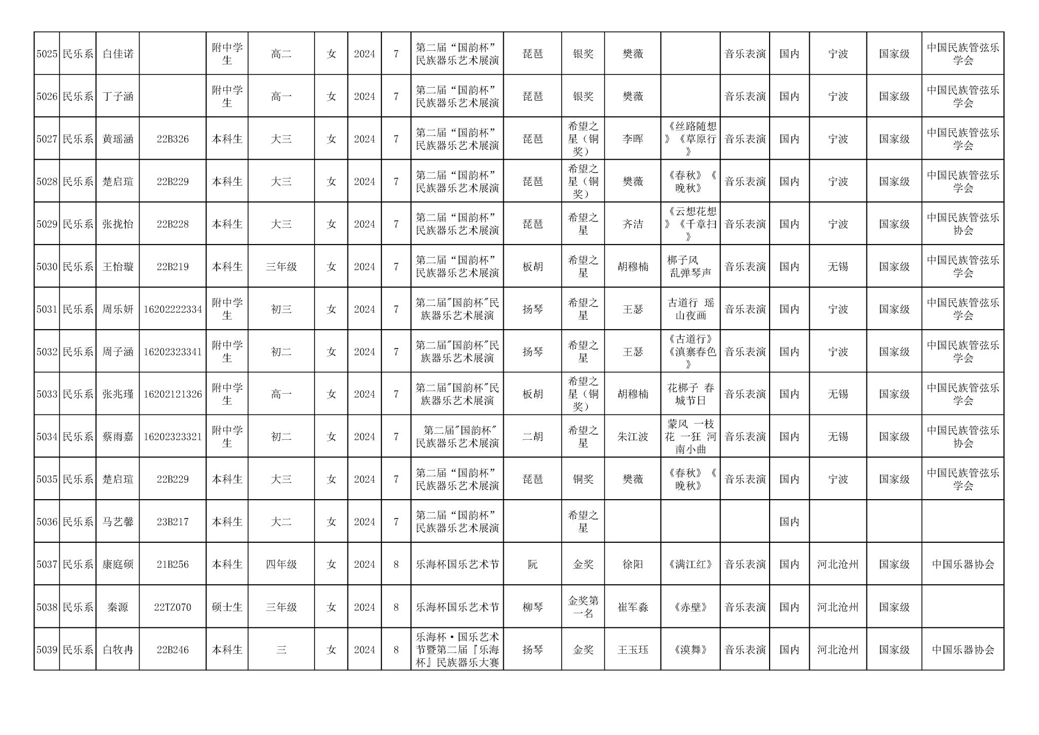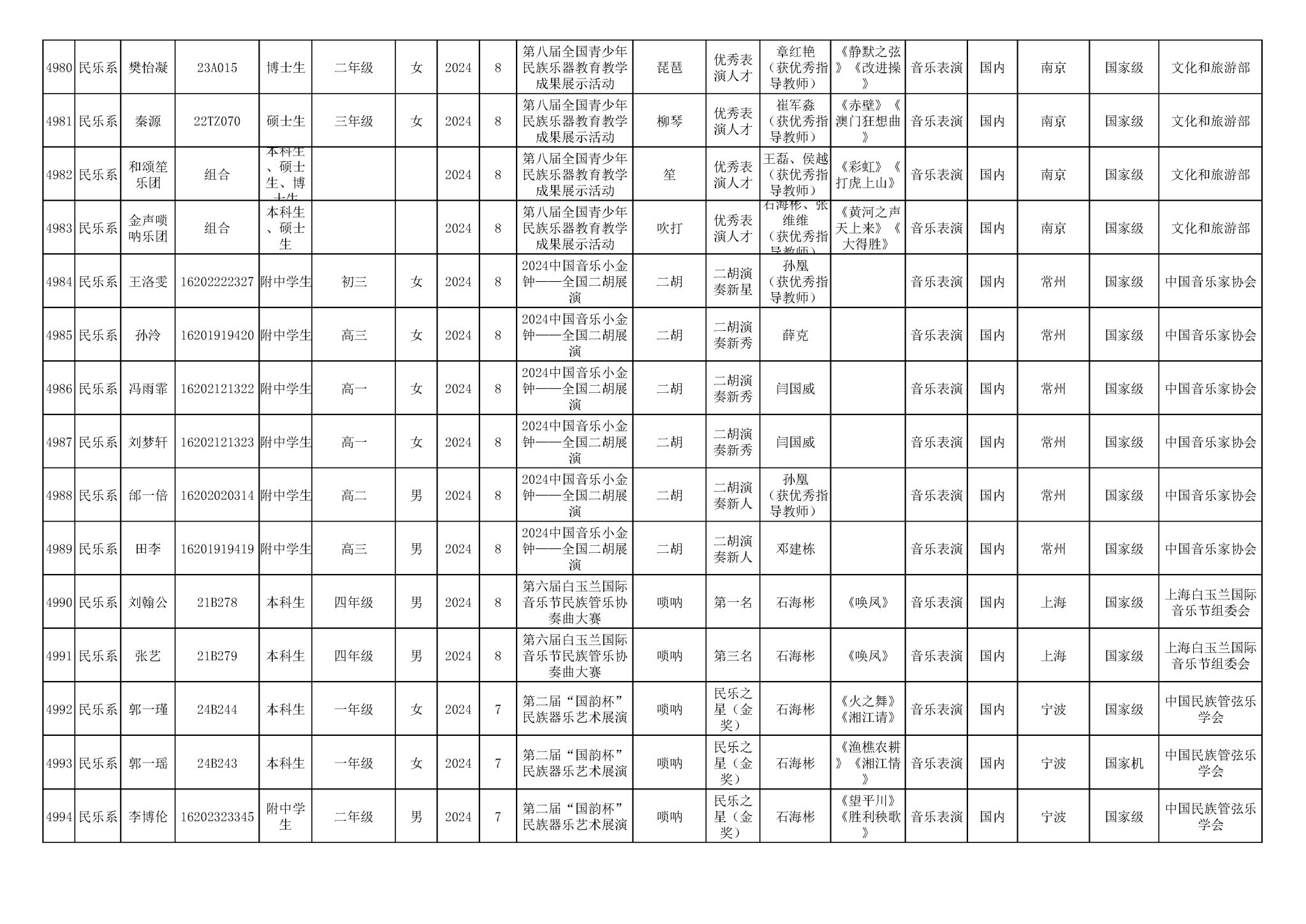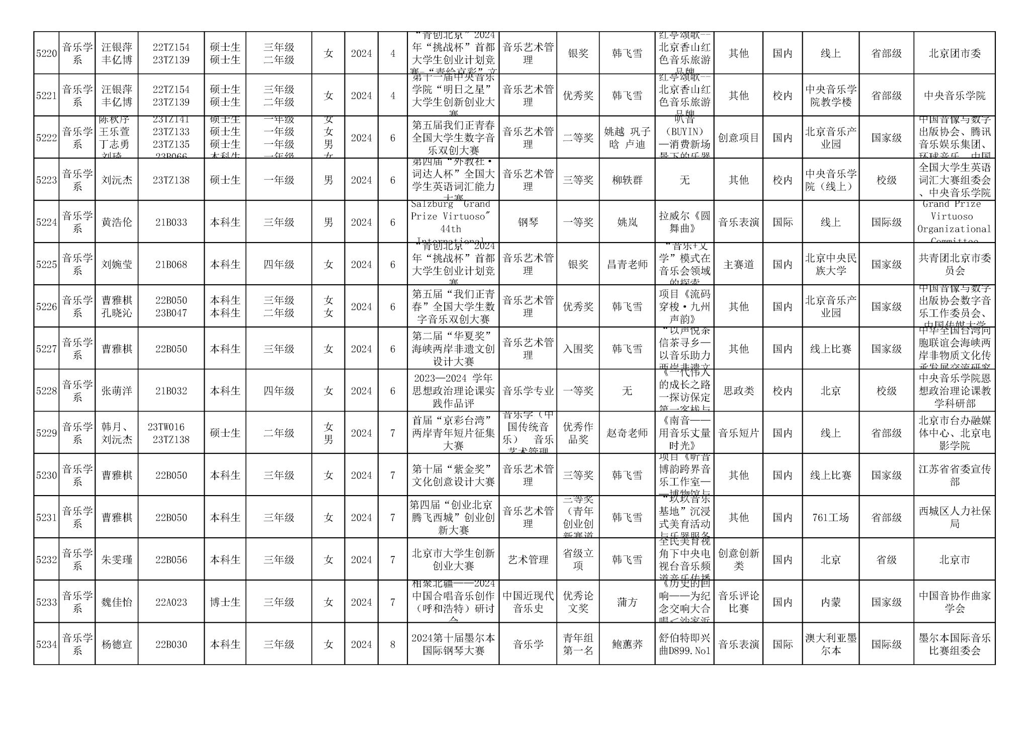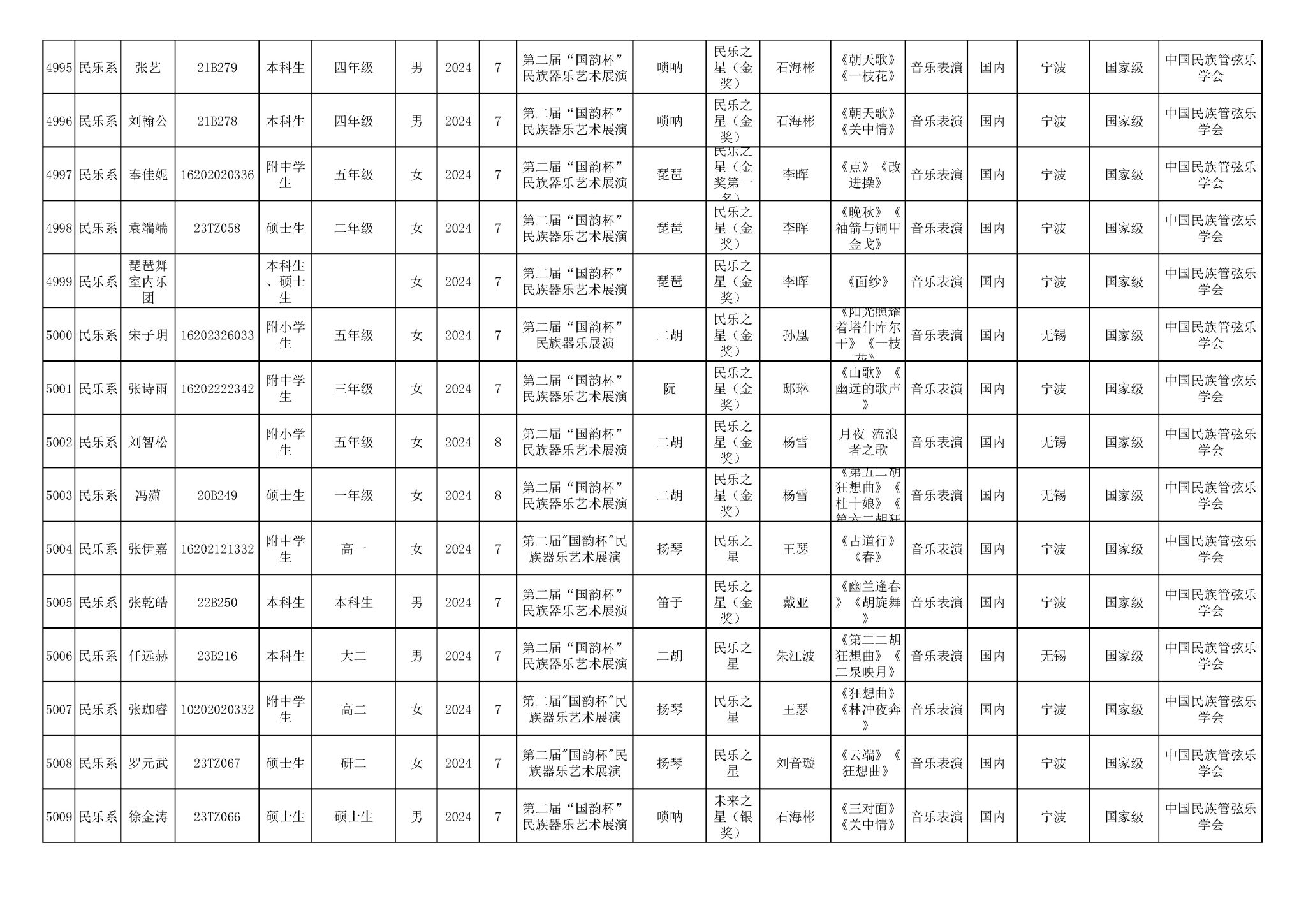 2016-2024年星空彩票ios版中心版(学生)获奖统计