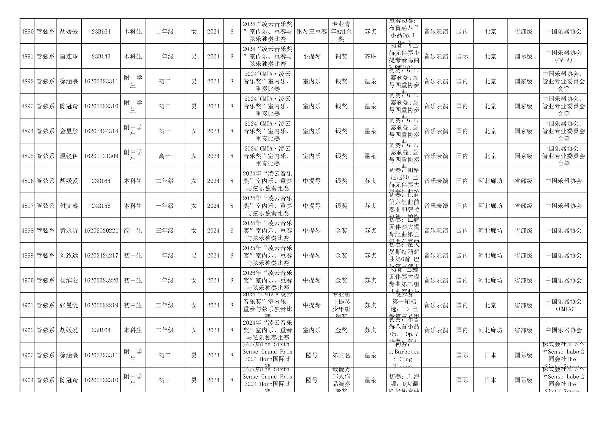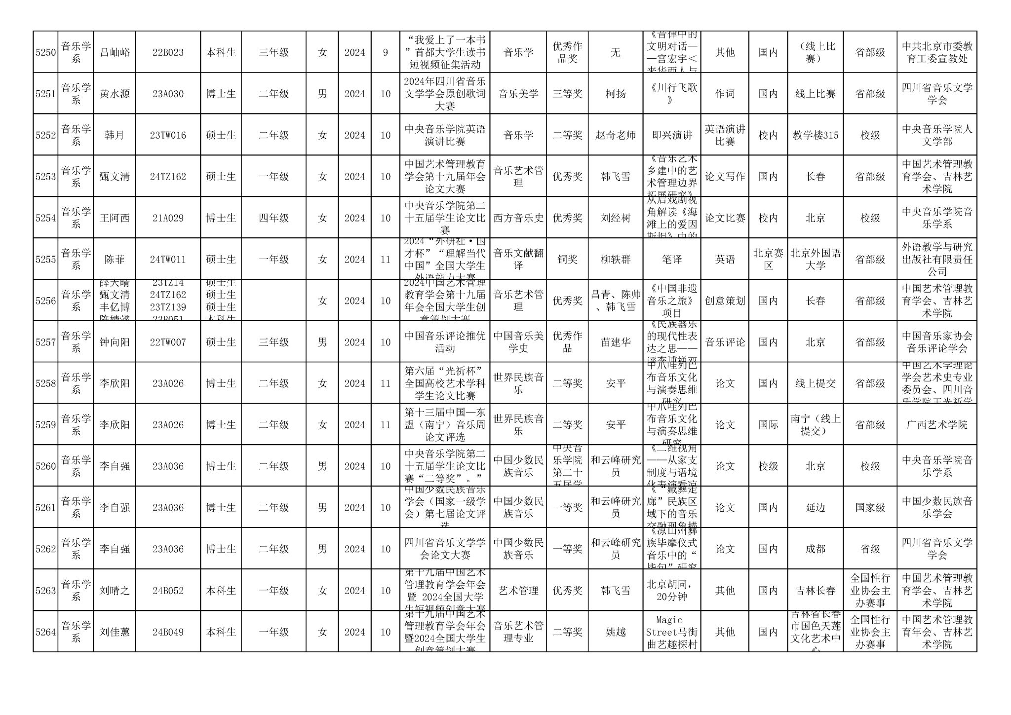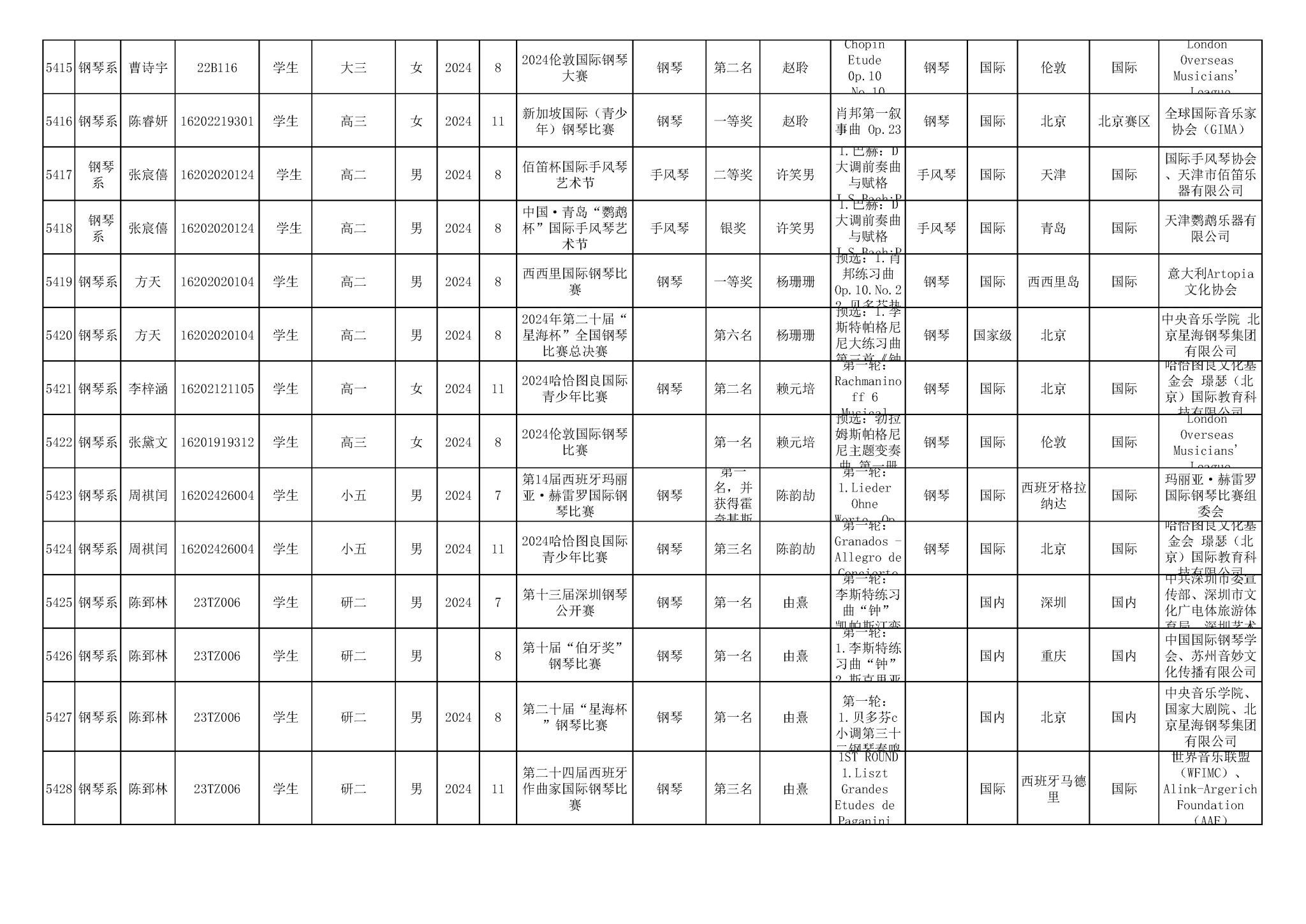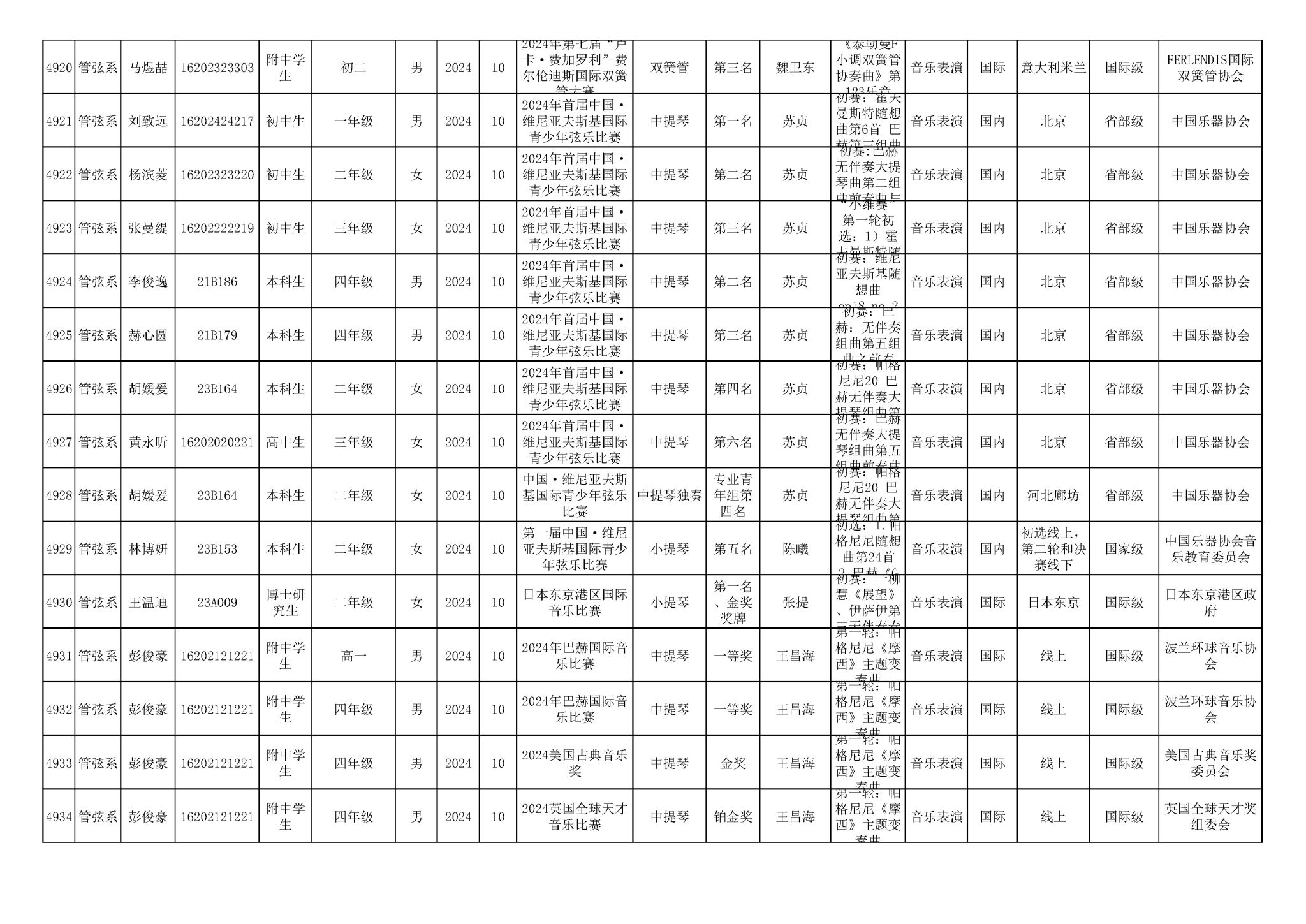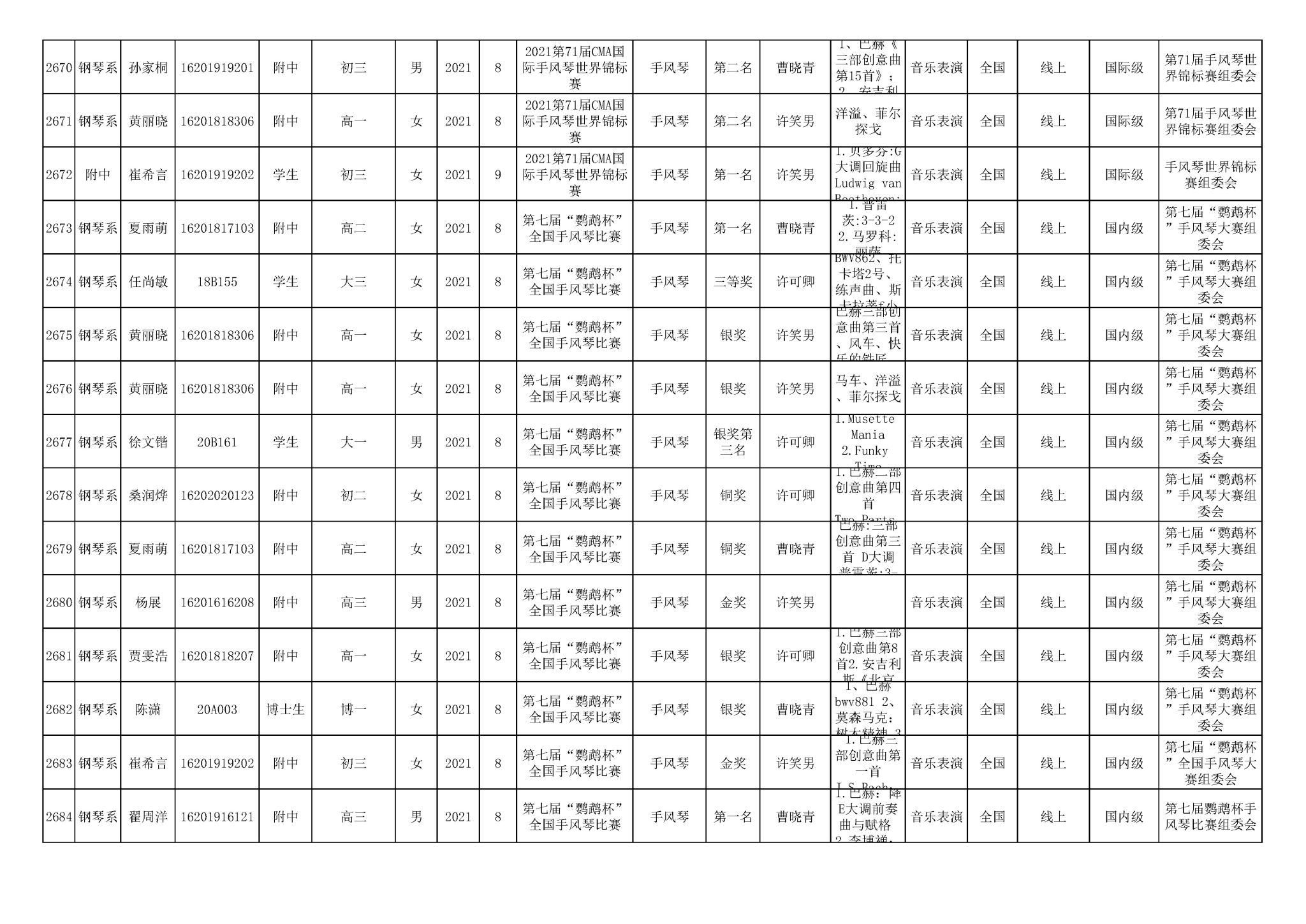 2016-2024年星空彩票ios版中心版(学生)获奖统计