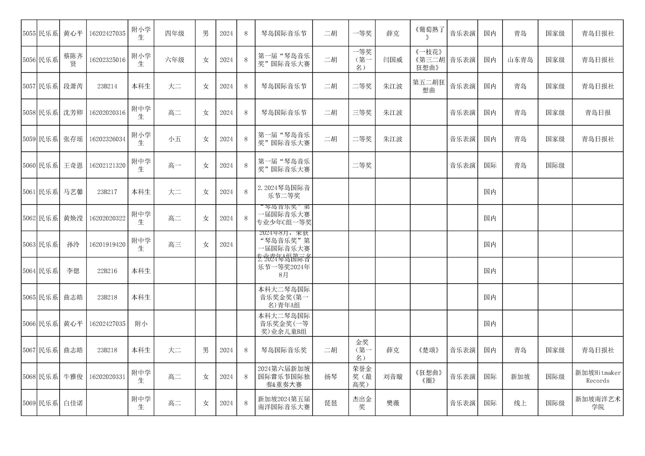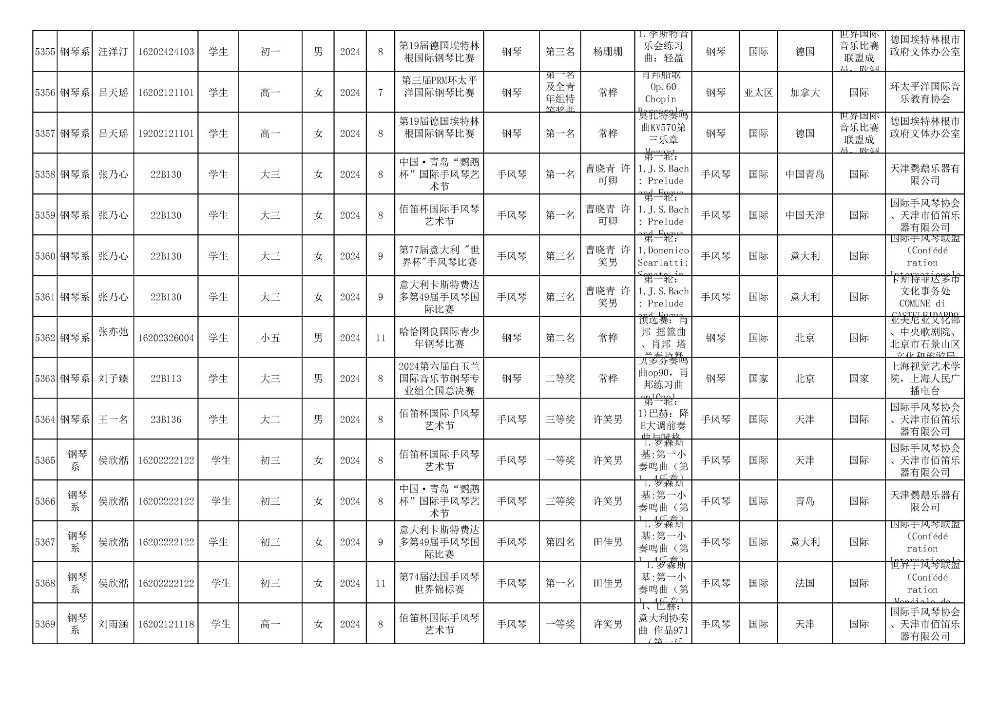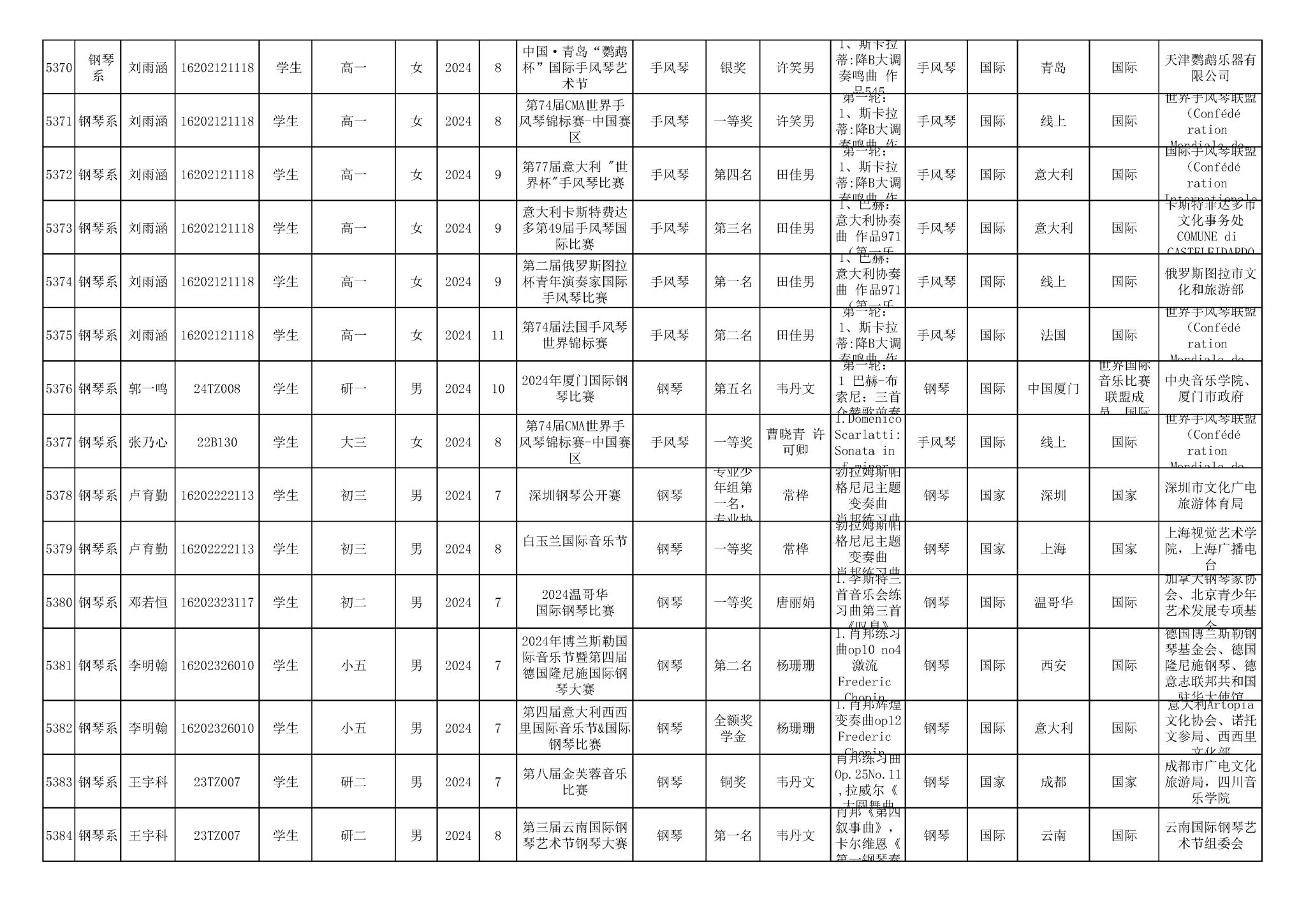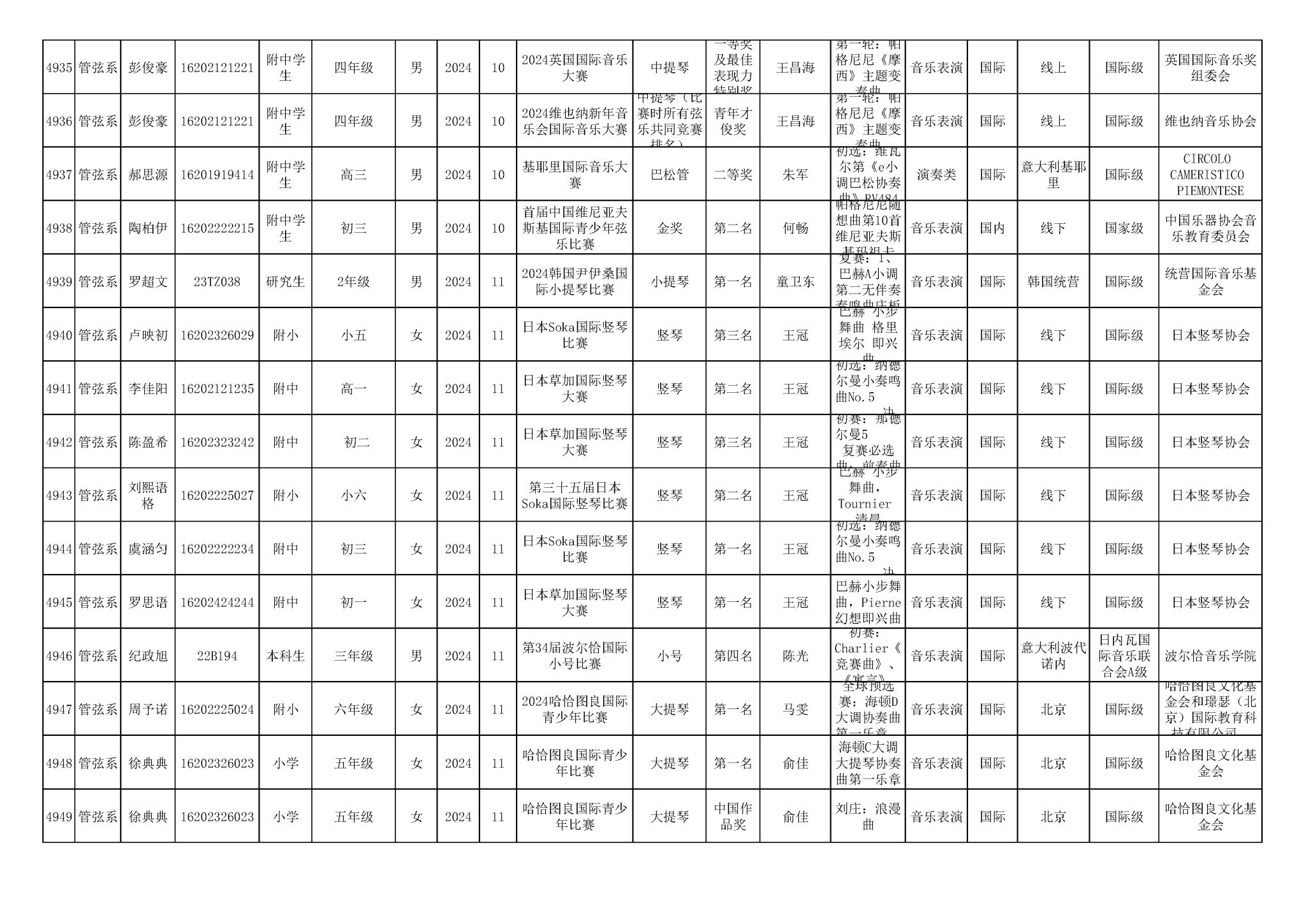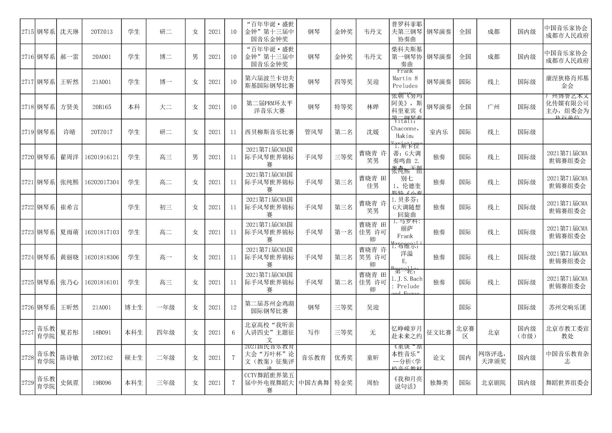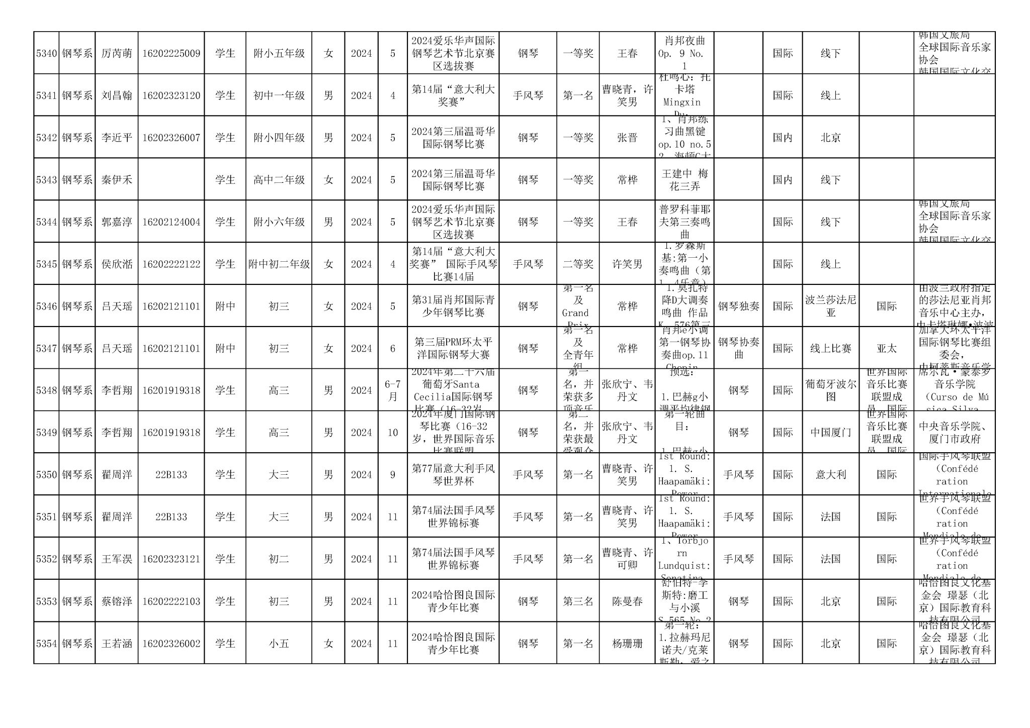 2016-2024年星空彩票ios版中心版(学生)获奖统计