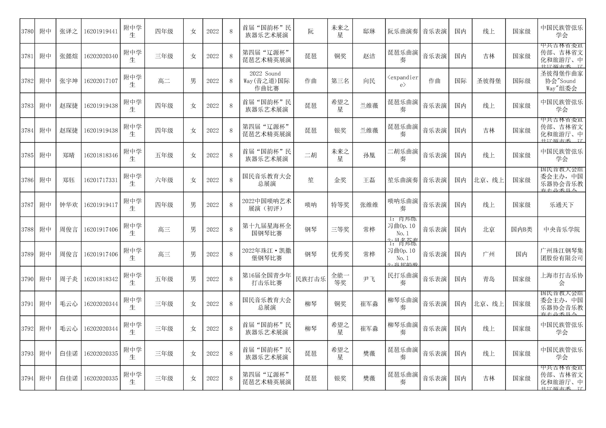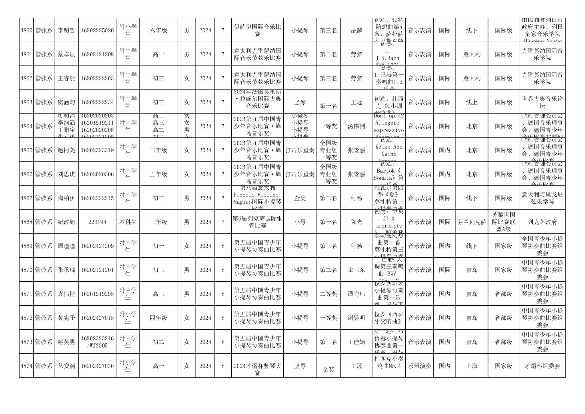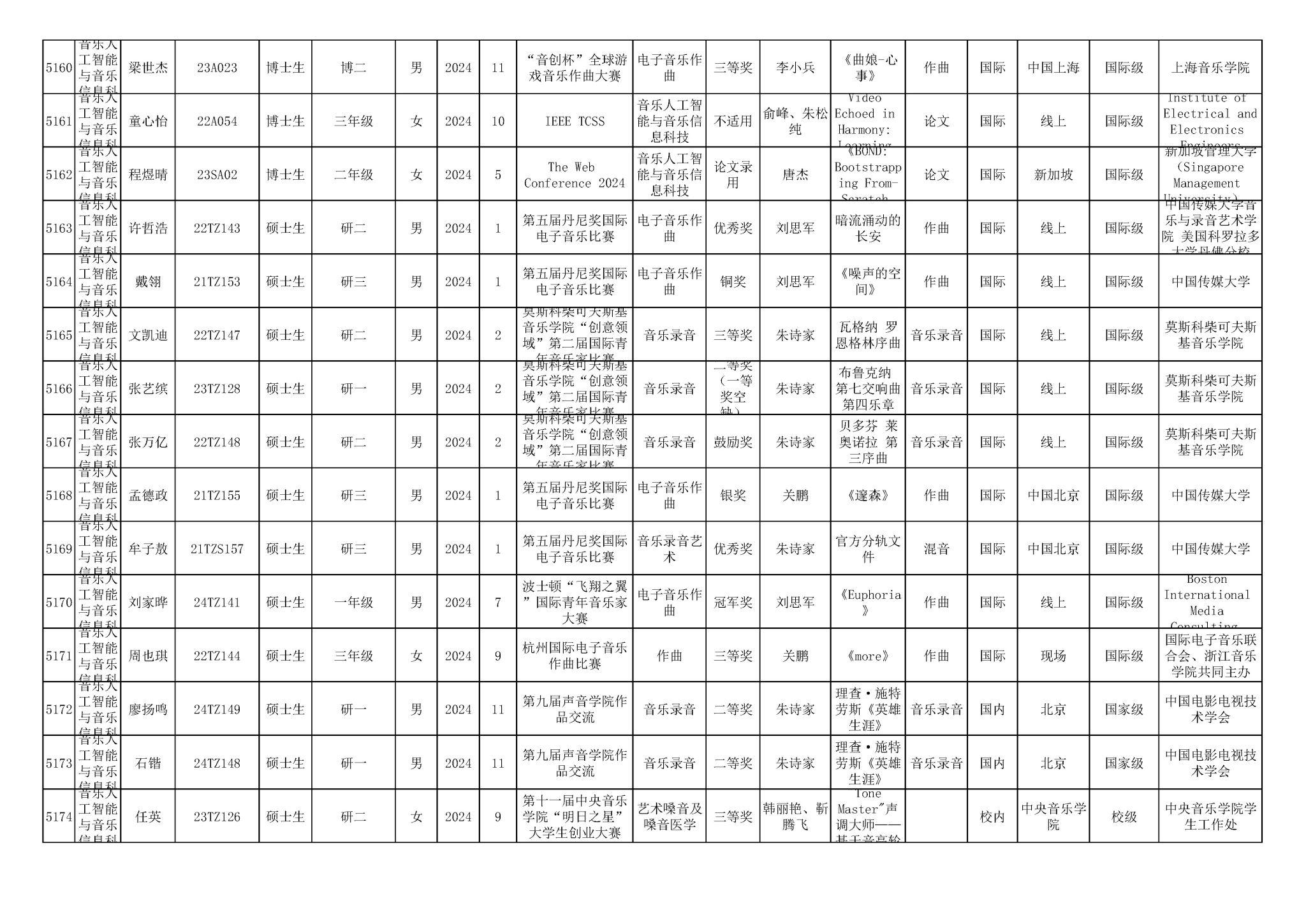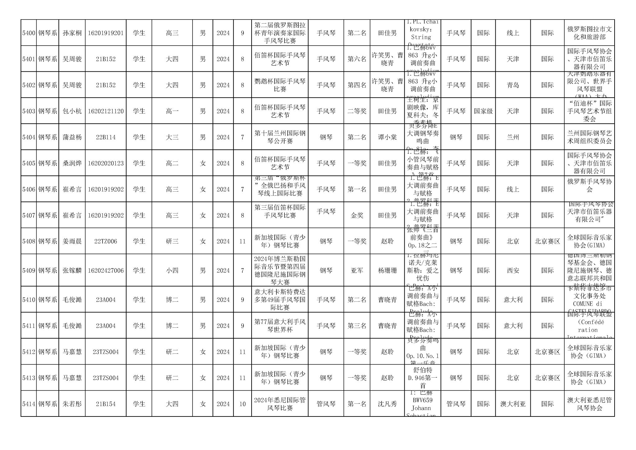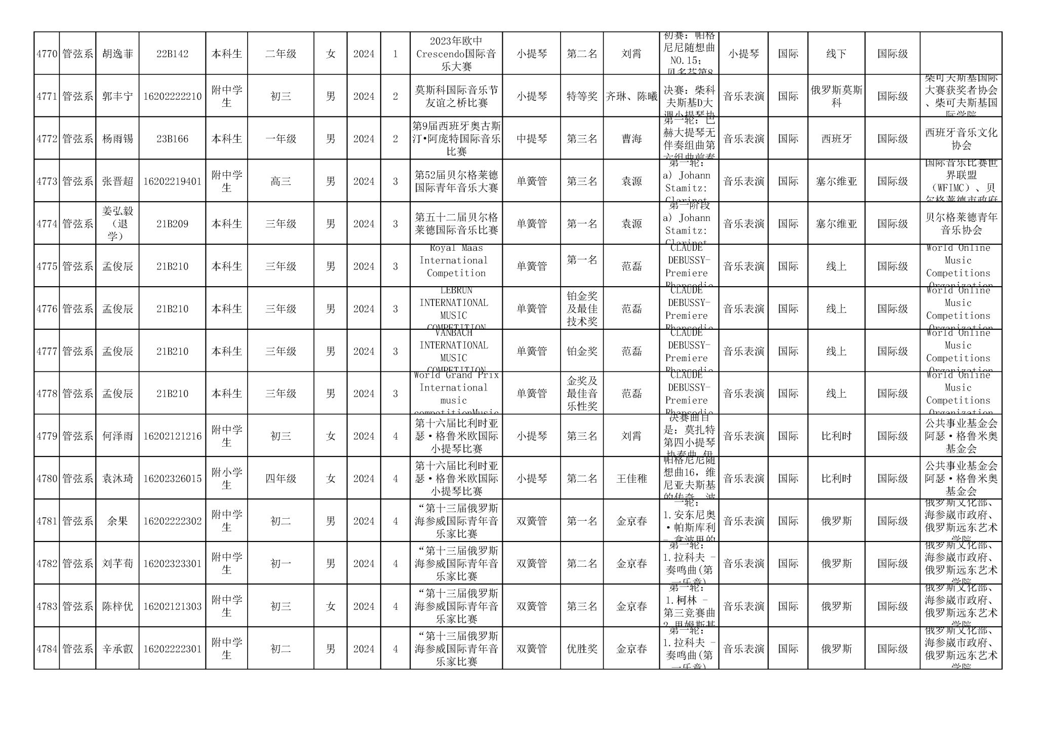 2016-2024年星空彩票ios版中心版(学生)获奖统计