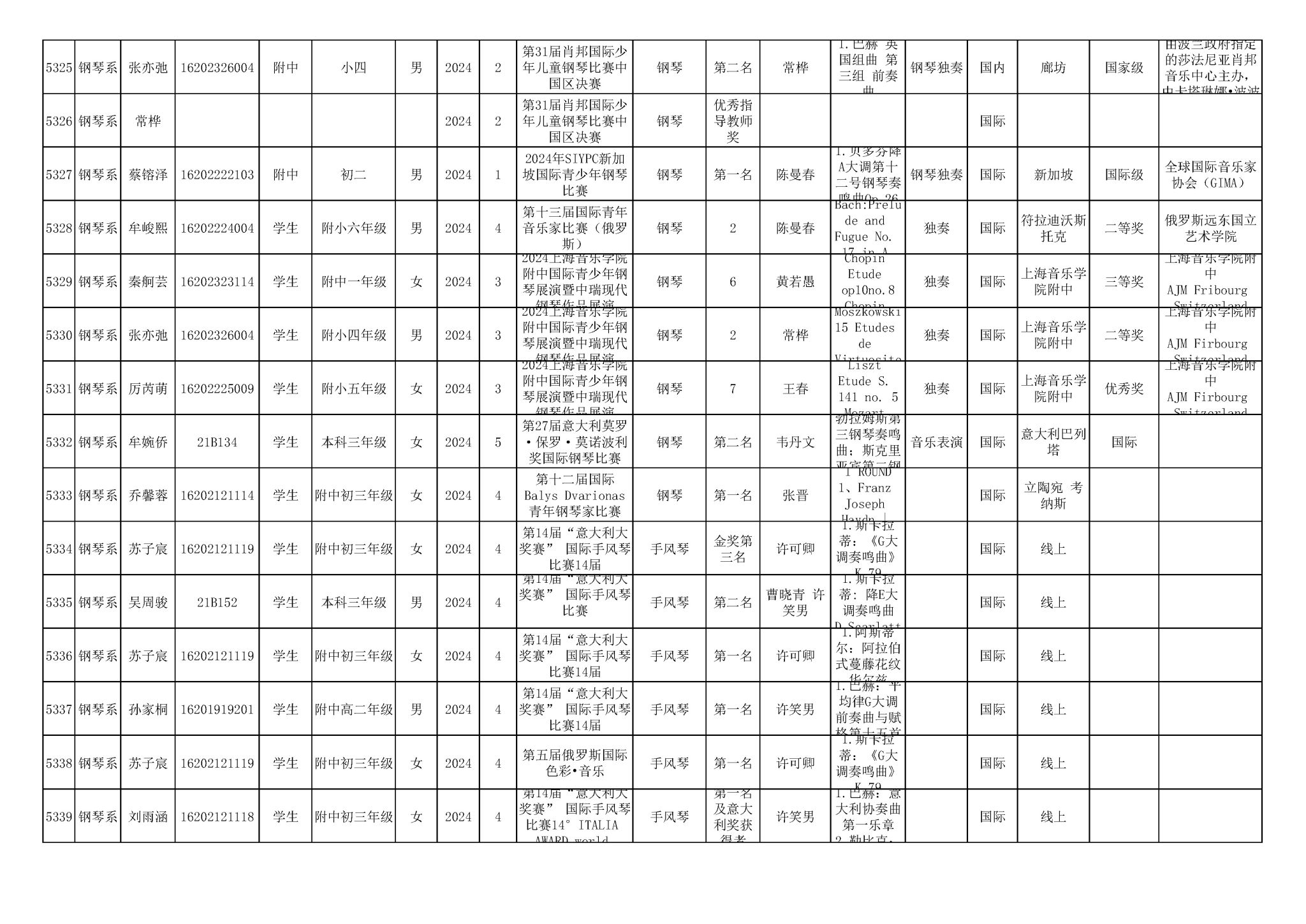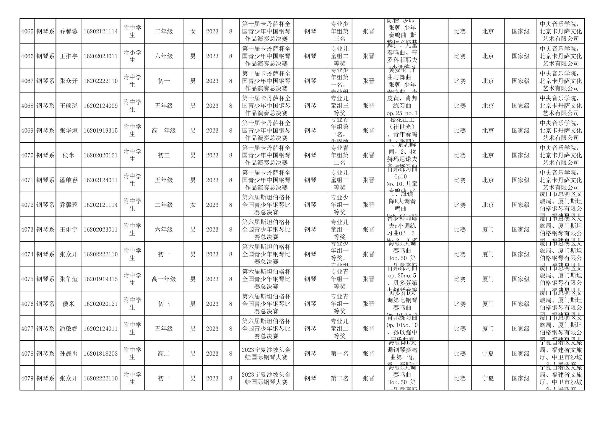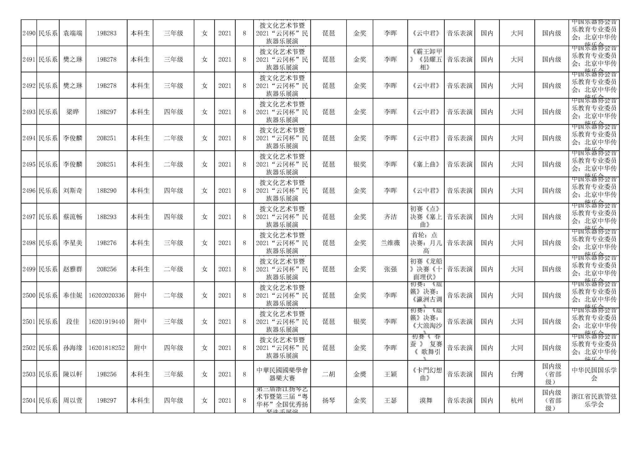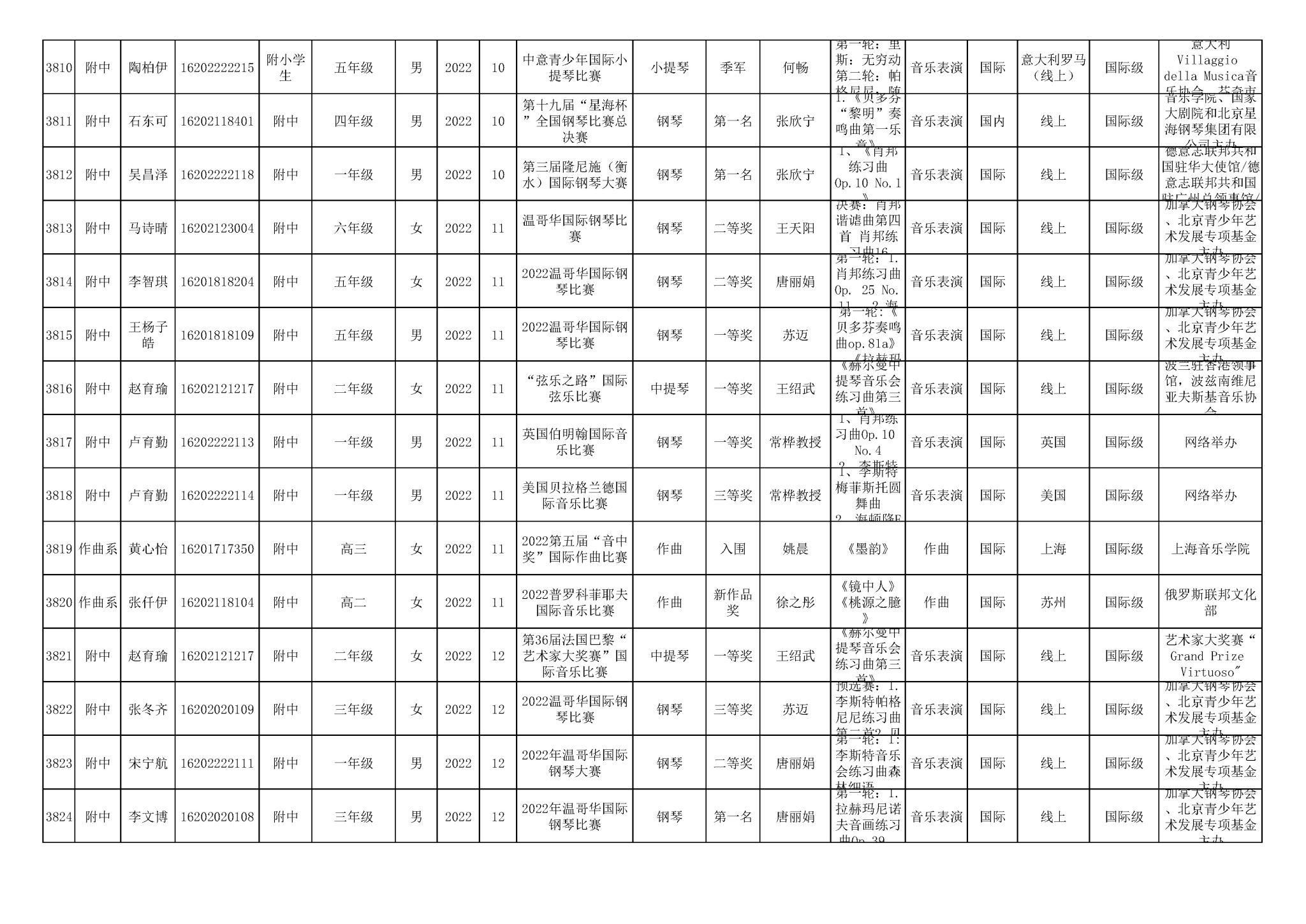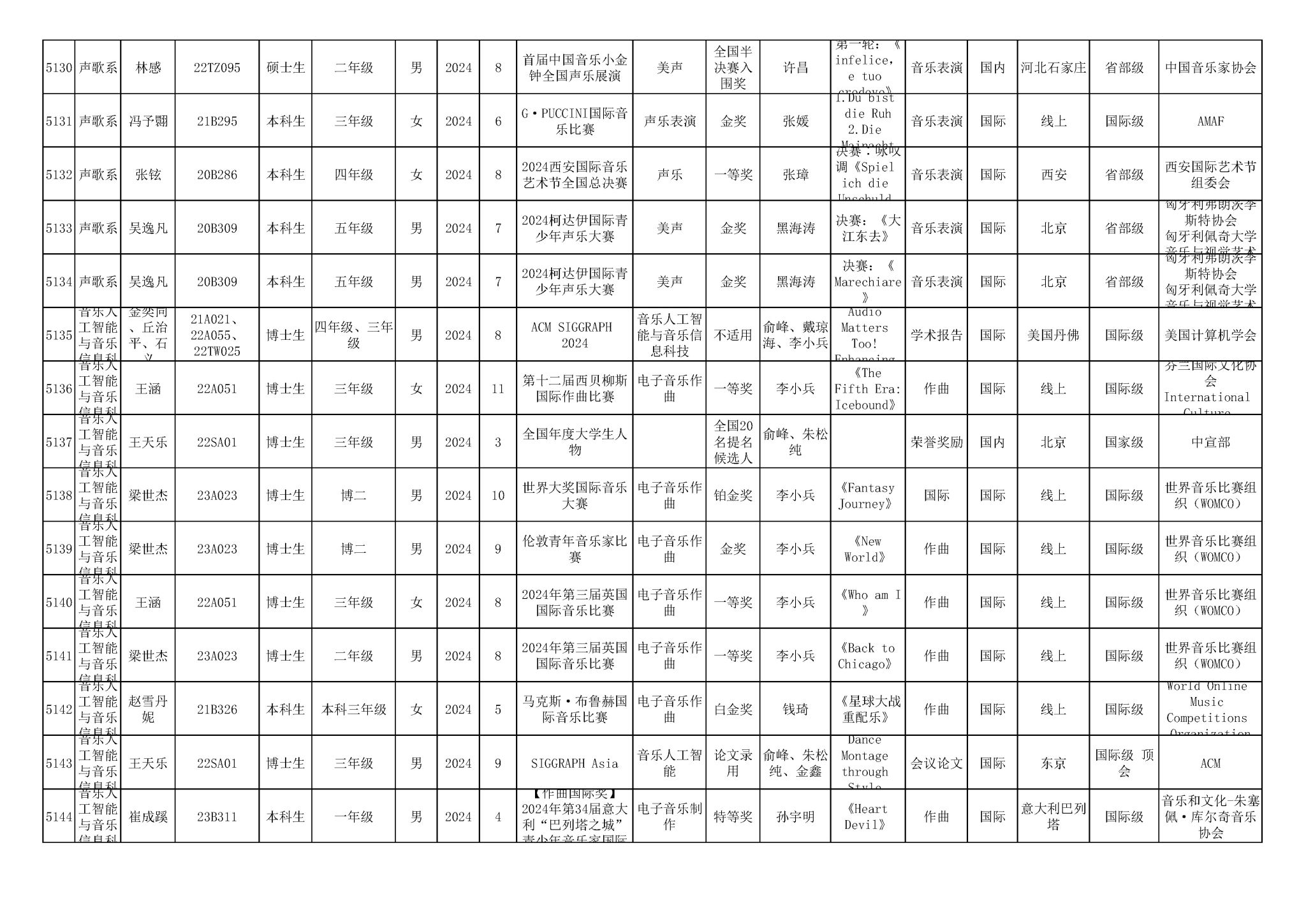 2016-2024年星空彩票ios版中心版(学生)获奖统计