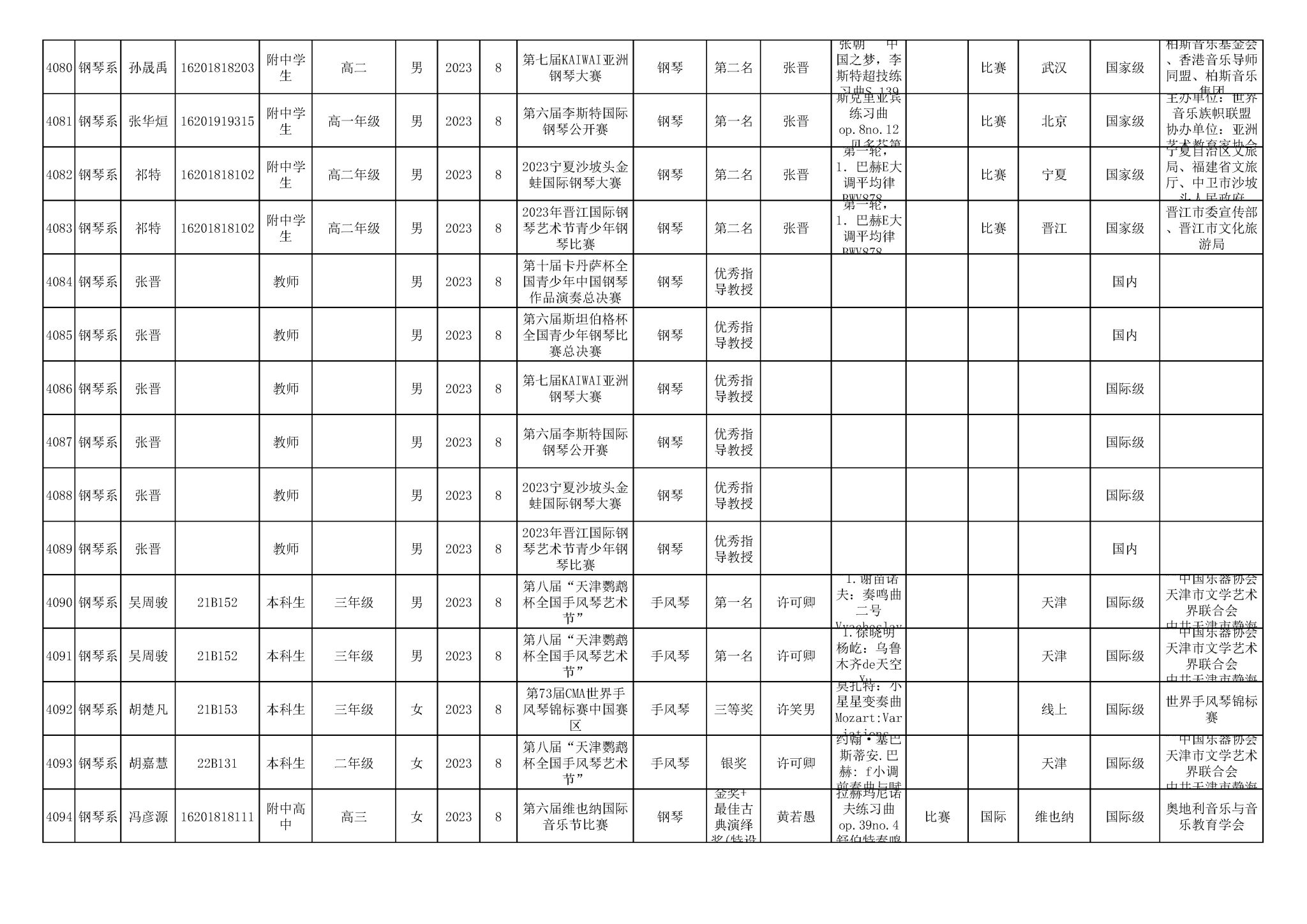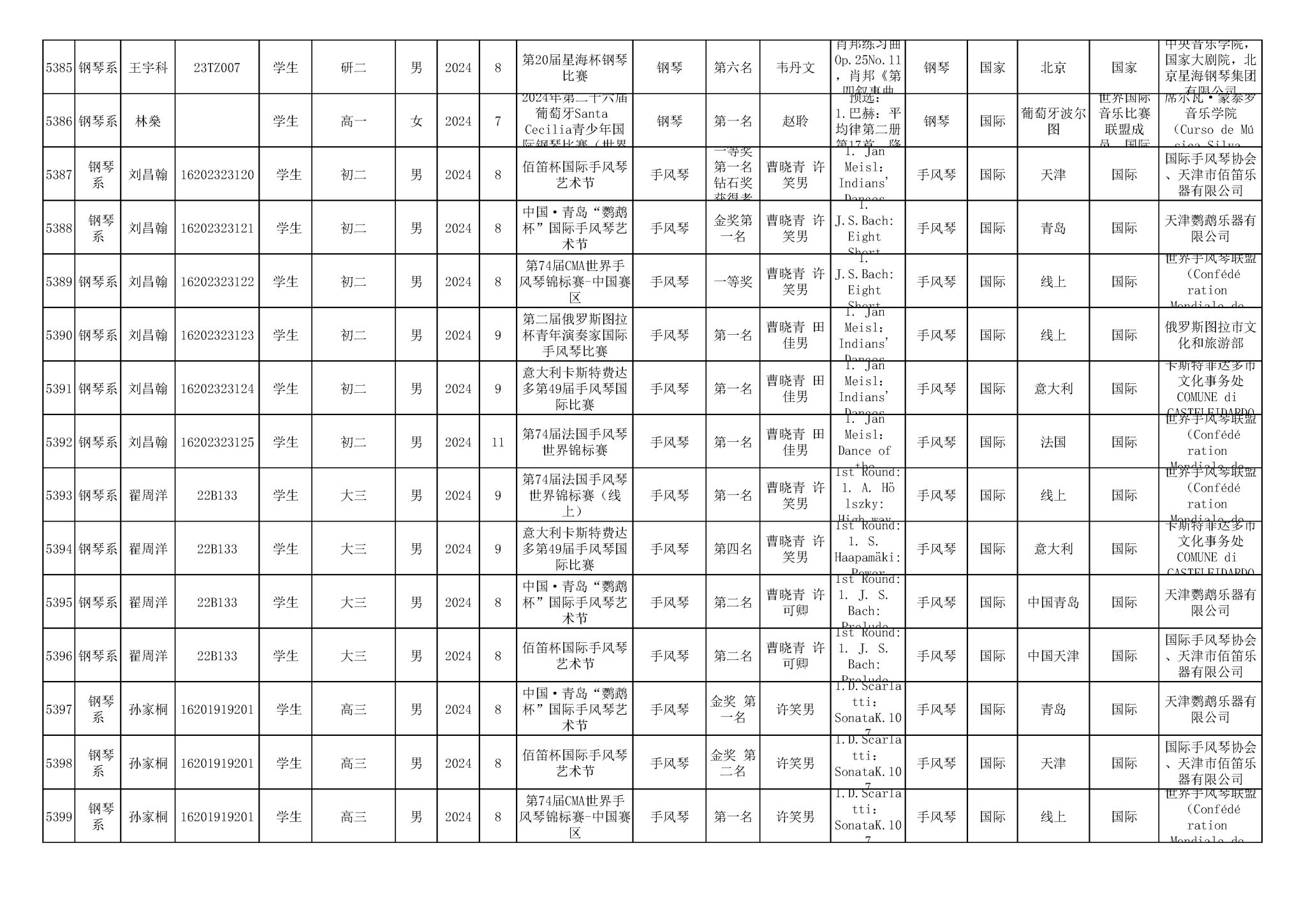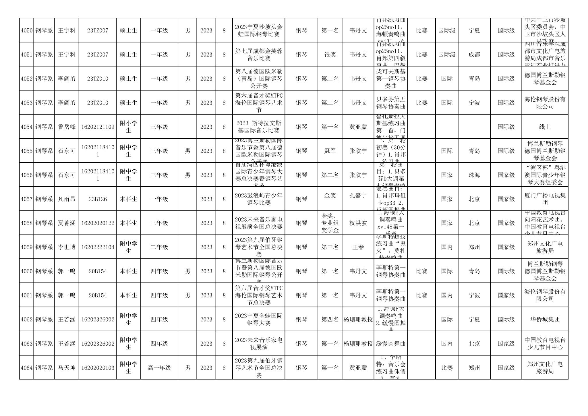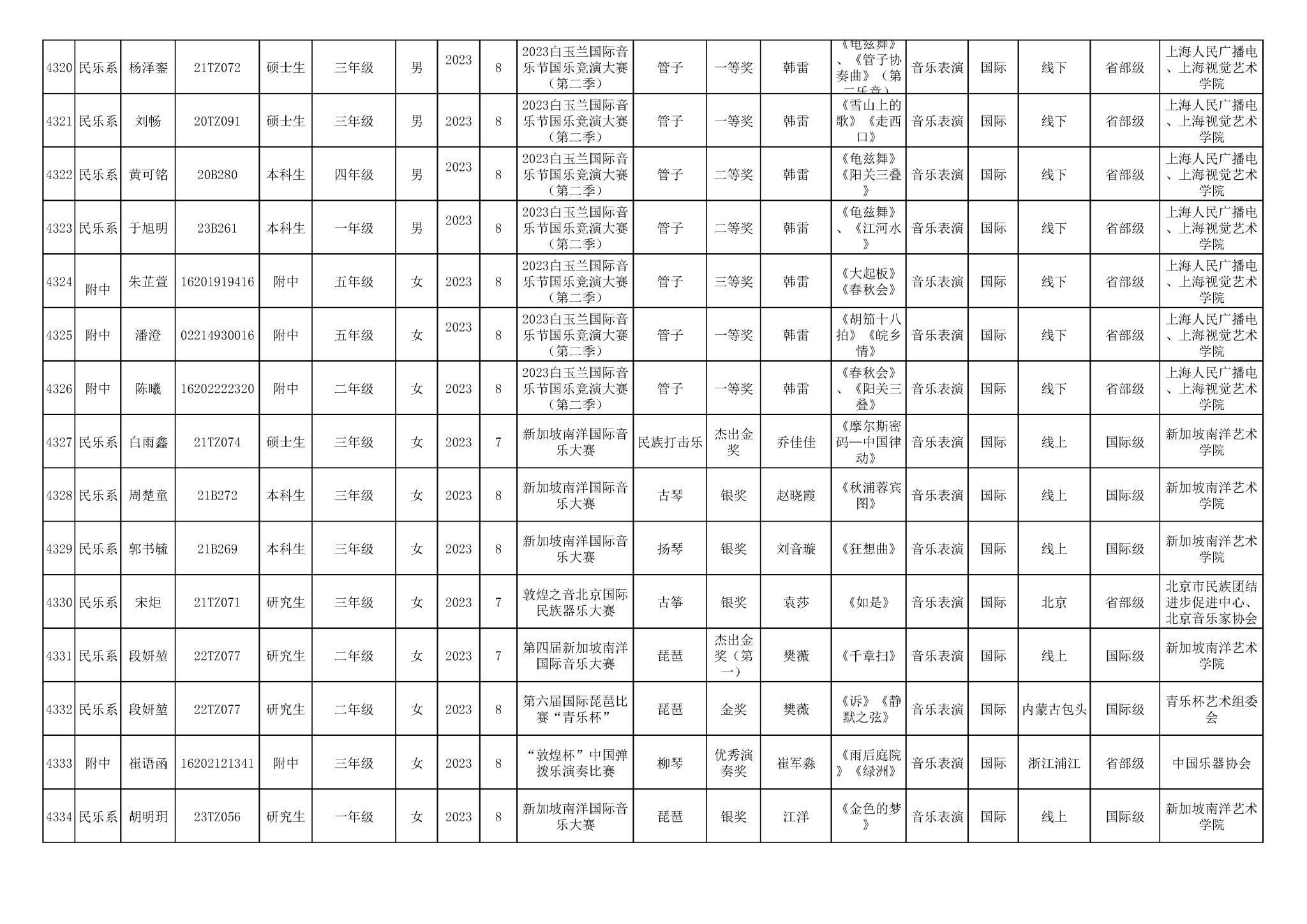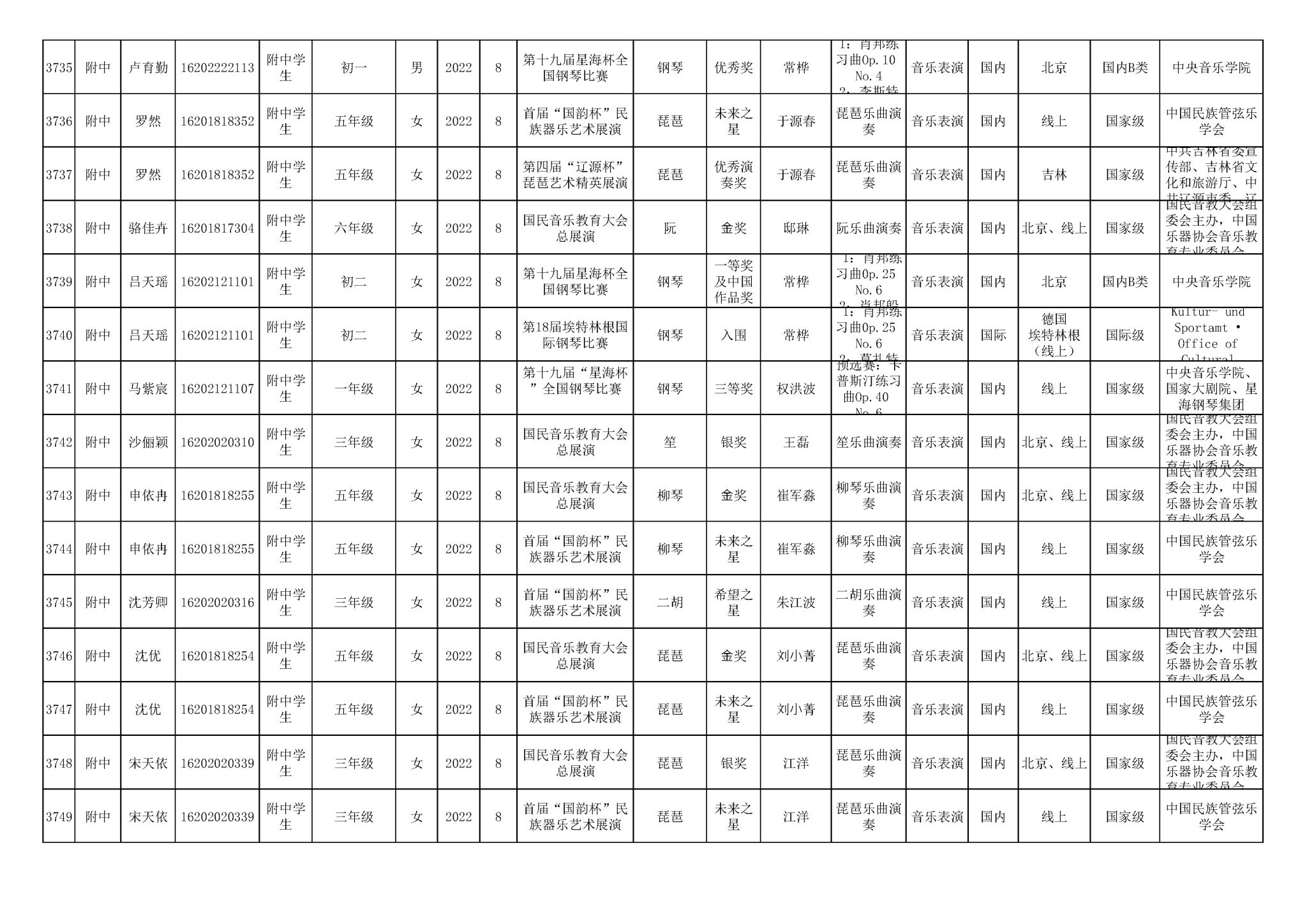 2016-2024年星空彩票ios版中心版(学生)获奖统计