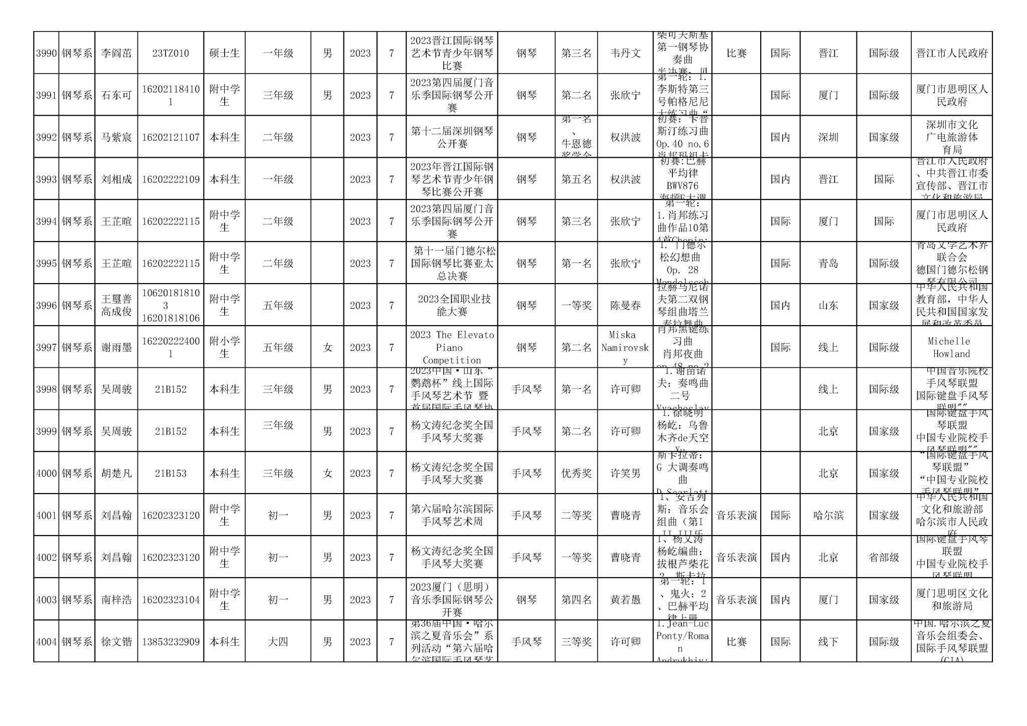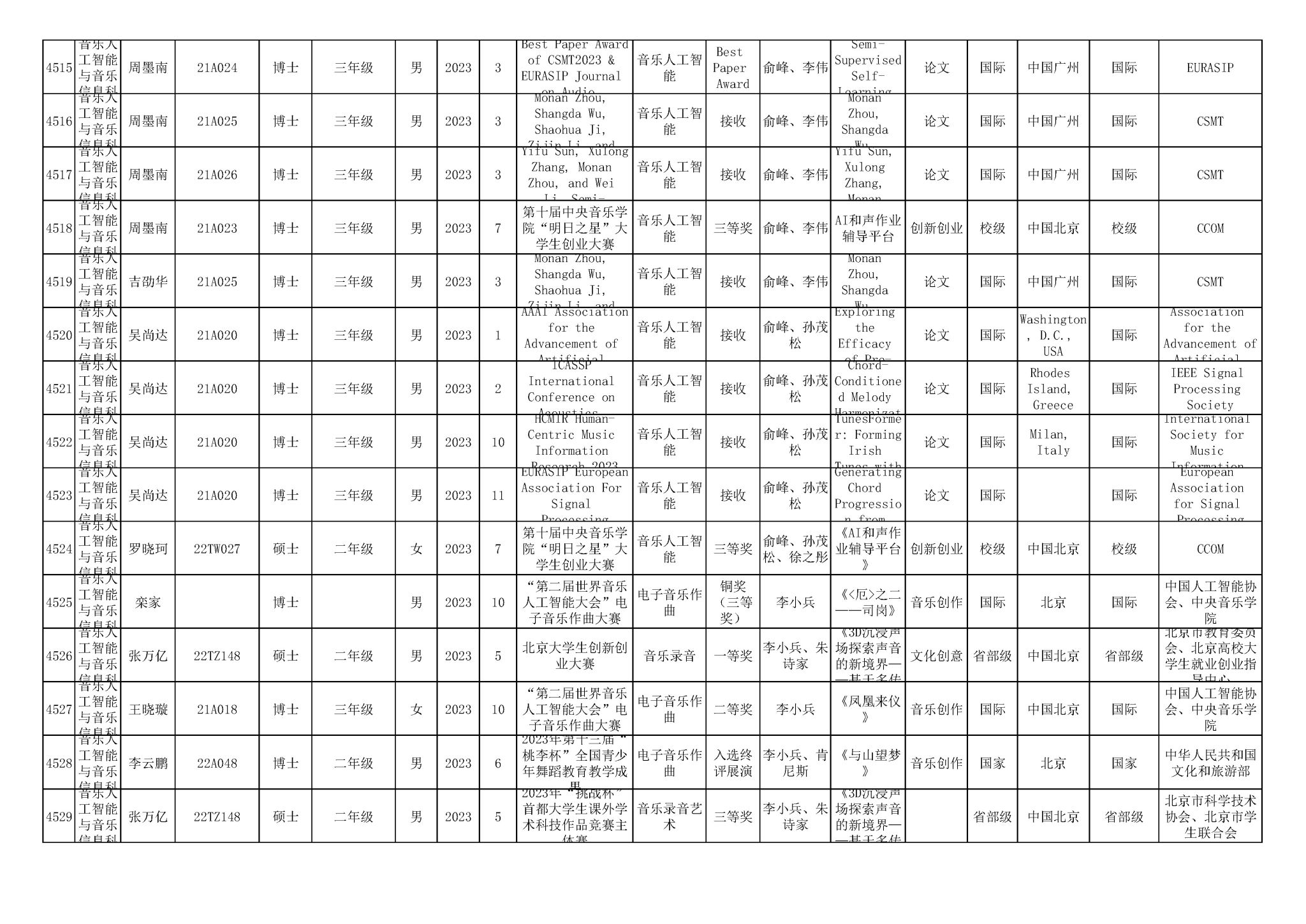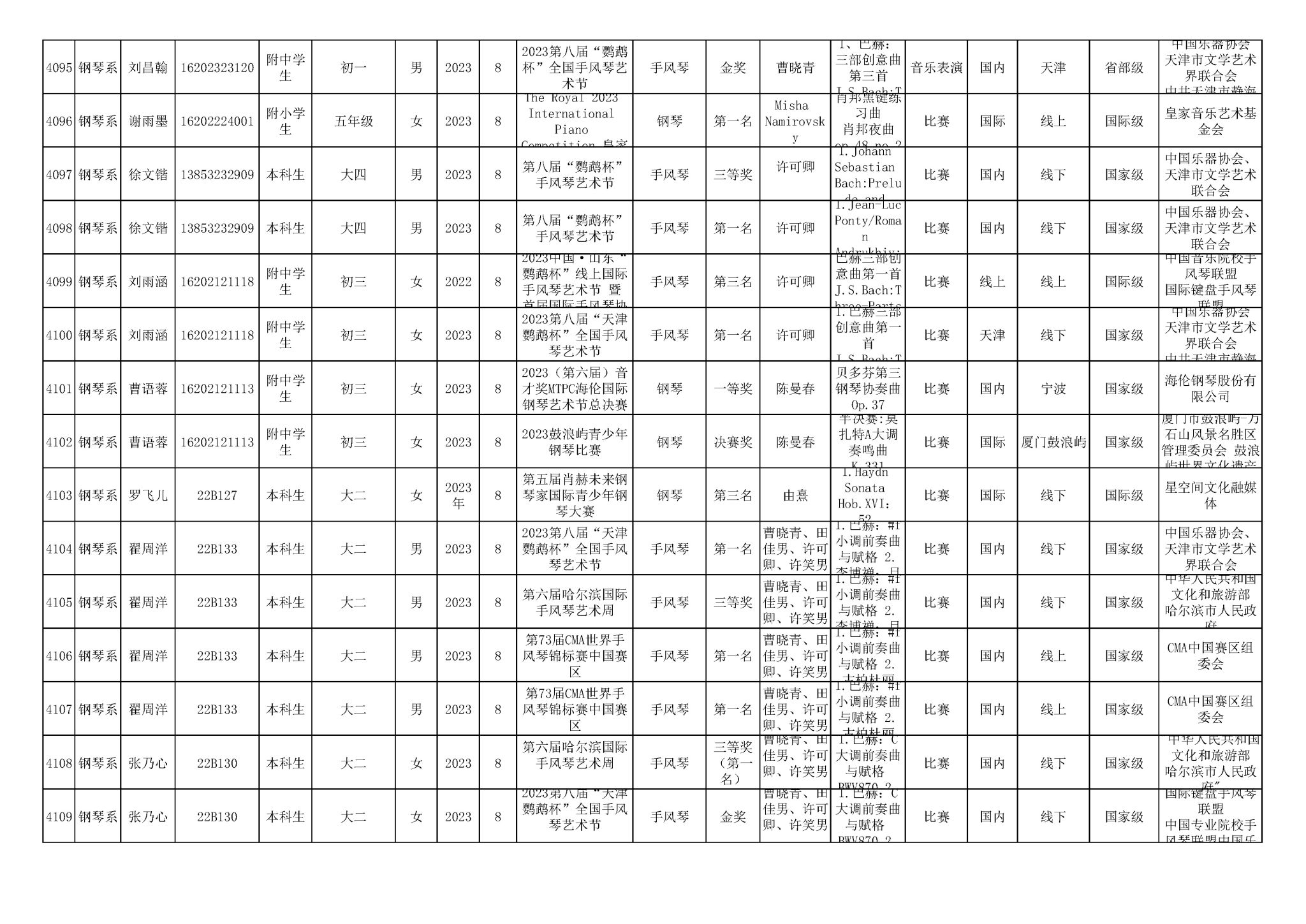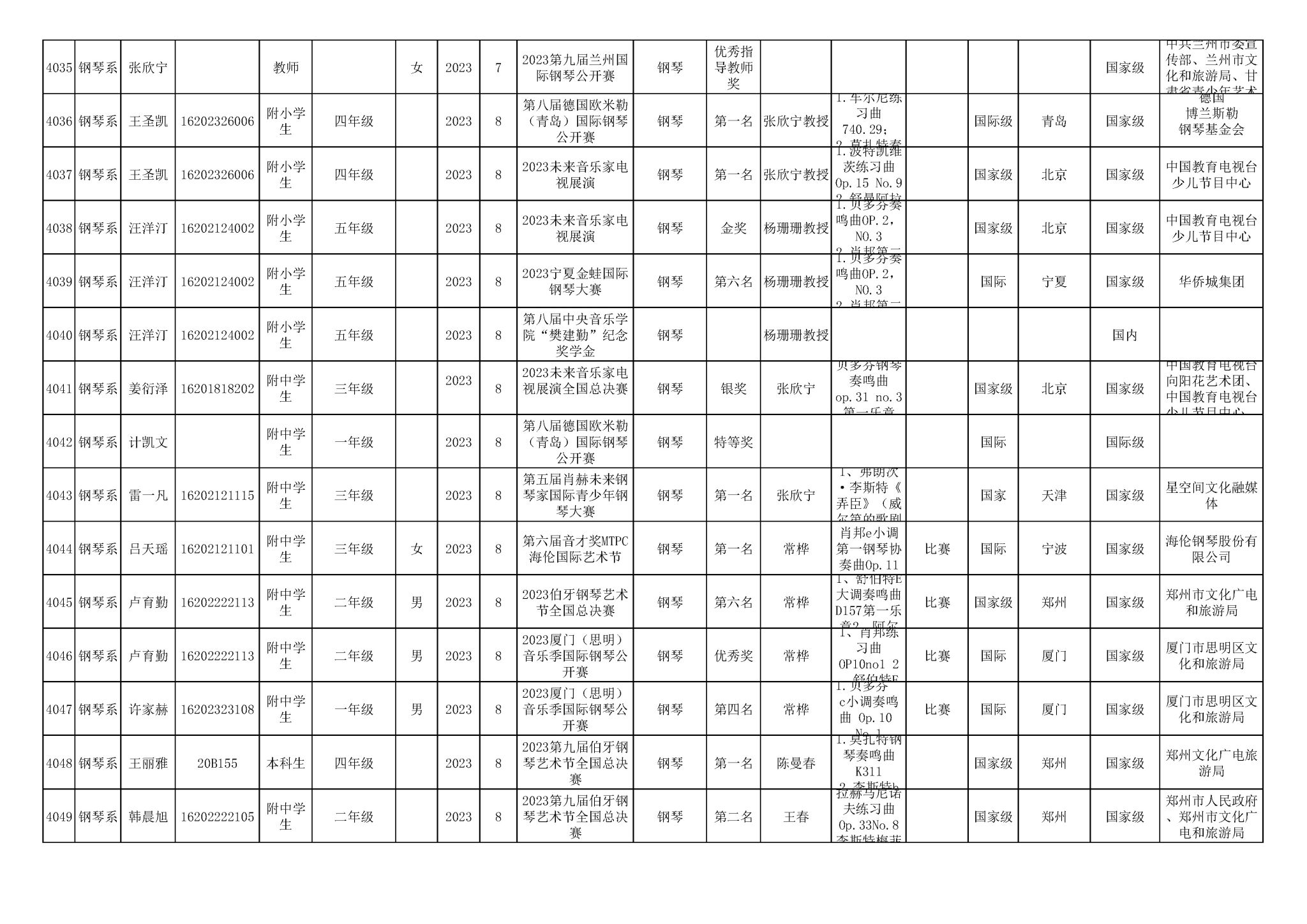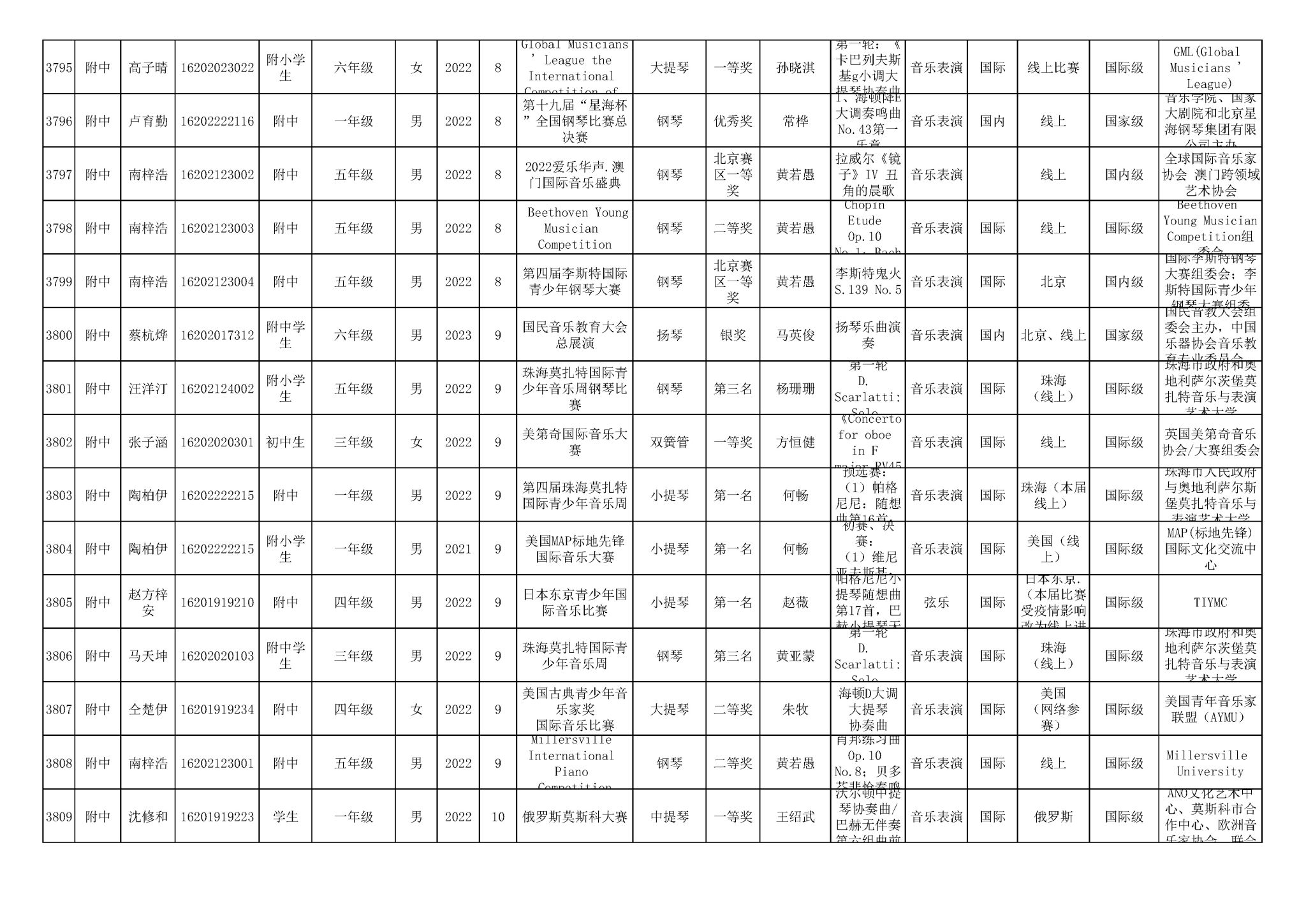 2016-2024年星空彩票ios版中心版(学生)获奖统计