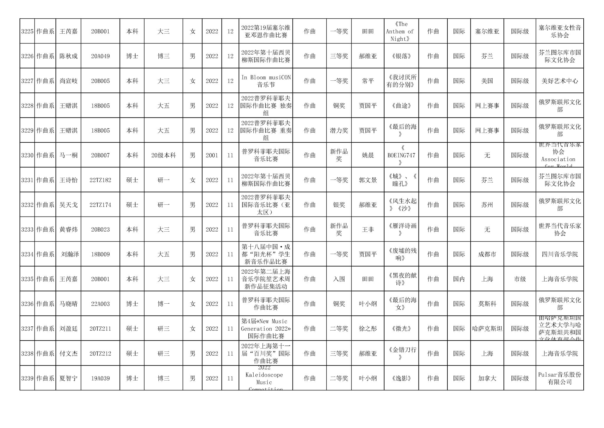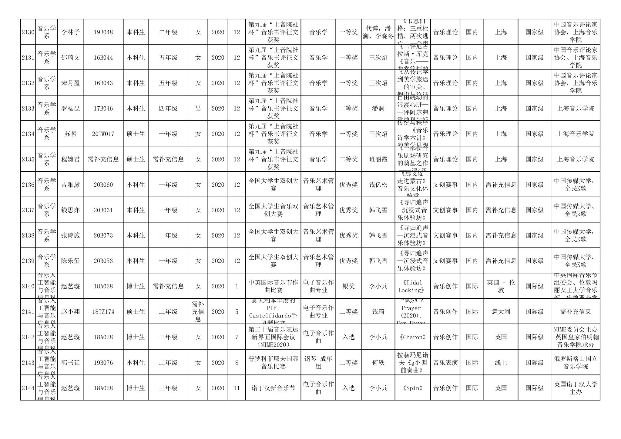 获奖信息