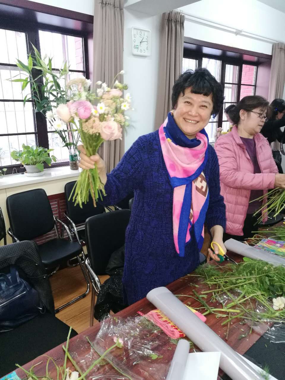 3月8日中午插花课,邀请到了荣获国家插花员二级技师的张岩(曾获得法式时尚花艺课程证书,自创品牌Bella the Florist)为教职工们讲解插花的知识与技巧,其中包括选叶、花型塑造、根部养护、握花和扎花手法、丝带剪裁法等相关理论知识,并手把手指导老师们实际操作。制作过程中,老师们相互学习、探讨,兴致勃勃,全身心投入,待一件件成品制作完成,教职工们更是兴奋不已,纷纷在朋友圈晒图,与大家分享喜悦。活动结束后老师们表示,这个三八节过的太有意义了,手捧着自己的作品身心愉悦,更增添了创造美好生活的动力。