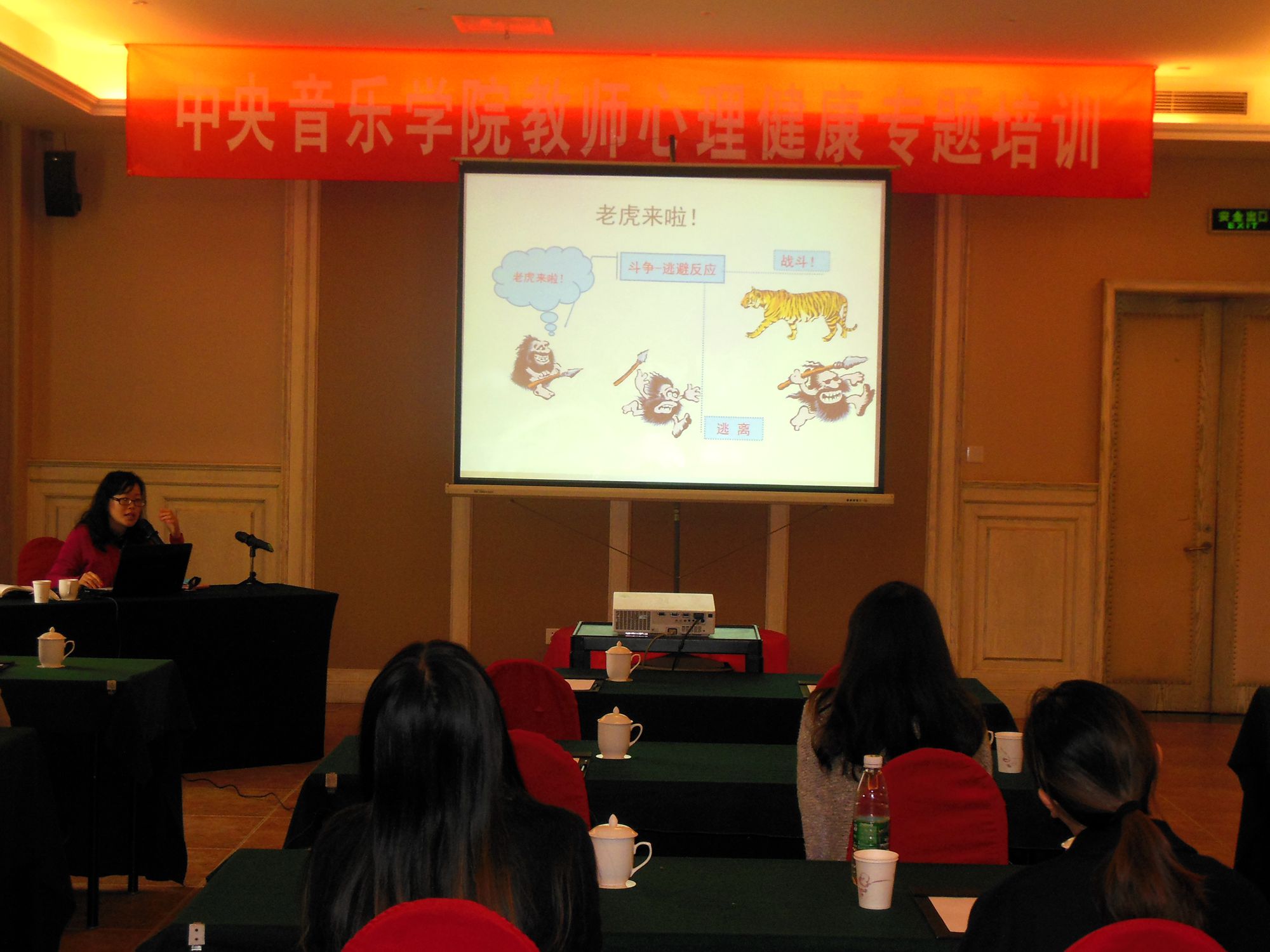 现代生活节奏紧凑,教师课业压力大,专业艺术院校更有其特殊性,大部分课时均为“一对一”小课,教师课业压力大,很容易造成职业倦怠。为减轻我院教师的精神压力和心理压力,提高情绪调节能力,促进身心健康,做学生爱戴敬仰的品行之师、学问之师。工会于2013年10月23日开展了“打造魅力教师”教师心理健康知识专题培训。针对老师现存的实际压力进行心理疏导与排解。