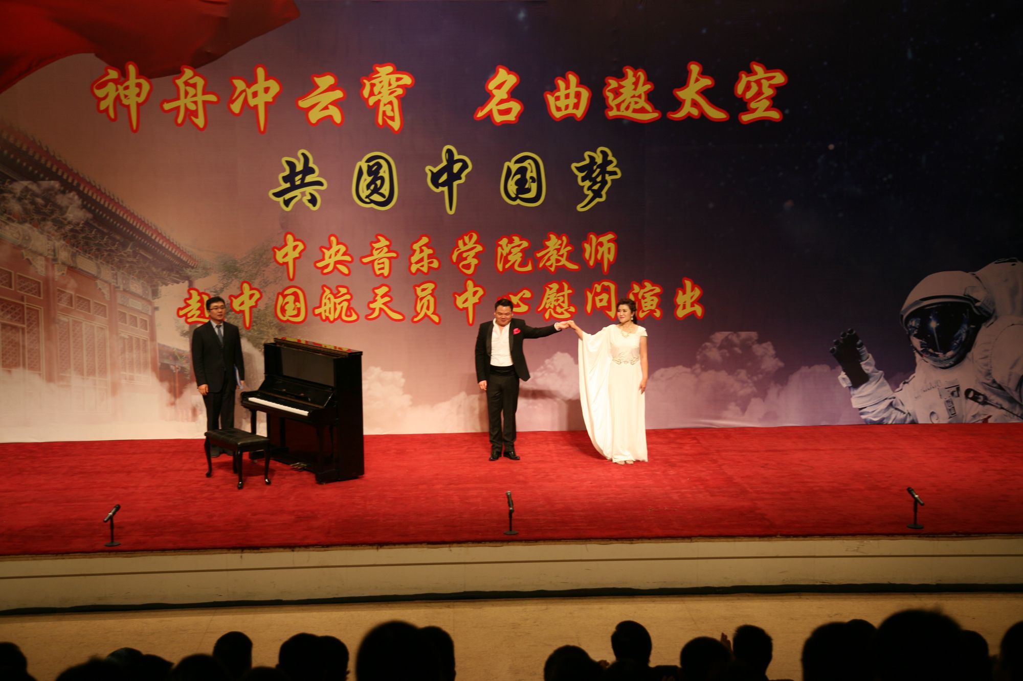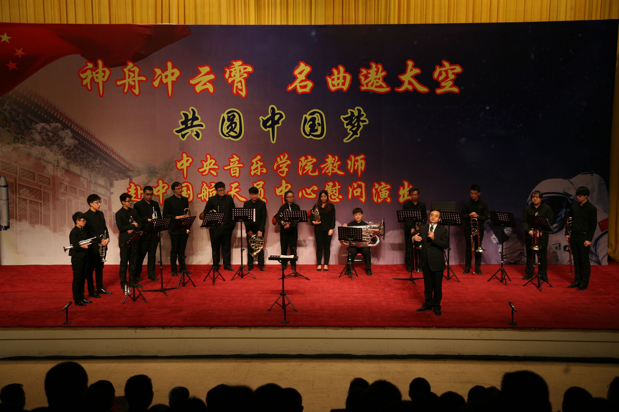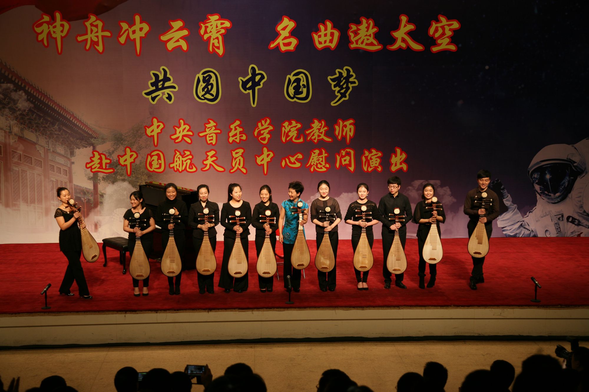 2014年12月24日中午,我院各系部分教师组成的艺术实践团赴中国航天员培训中心进行专场慰问演出。参加慰问演出的均为活跃在国内外乐坛上的著名音乐家,有管弦系系主任赵瑞林、柴亮、鲁鑫,声歌系谢天、孙媛媛、张佳林,民乐系副主任章红艳、王颖,以及各院系优秀学生。音乐会由工会副主席李昕老师主持。