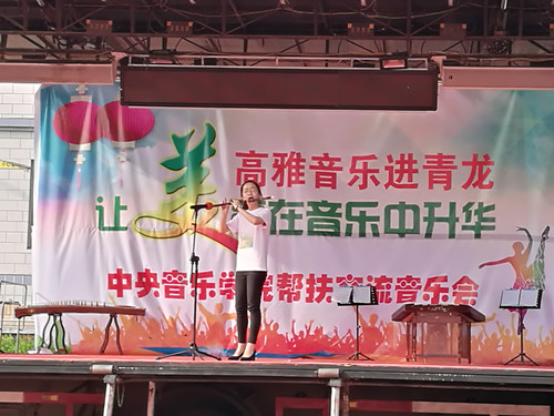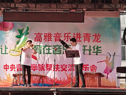秦皇岛青龙满族自治县,是教育部对口帮扶县。早在今年3月,教育部老干部局带领包含我校在内的各个机构、组织、学校,一行赴青龙县进行调研,确定了20余个教育帮扶项目。在音乐教育帮扶方面,我院已于4月下旬组织开展“声乐大师班”,为来自双山子中学的声乐教师进行为期两天的培训。此次专场音乐会,又是一次对音乐教育帮扶项目的具体落实。