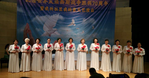 6月30日,本院社区在演奏厅举办了“纪念世界反法西斯战争胜利70周年暨我的社区我的家文艺演出”,女声小合唱队和男声小合唱队参加了这场演出。女声小合唱演唱了《五月的鲜花》和《微山湖》,男声小合唱演唱了《中国军魂》和《弹起我心爱的土琵琶》。