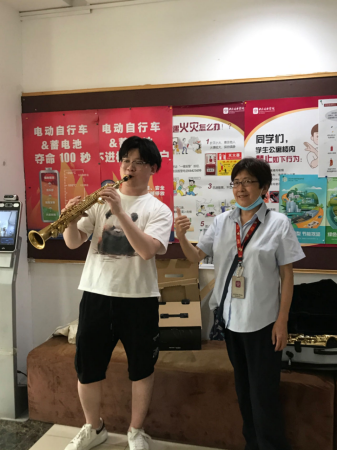 在毕业的余晖中,一场特别的演奏悄然上演。毕业学生们手持乐器,为宿管叔叔、阿姨奏响了那首饱含深情的《回家》。