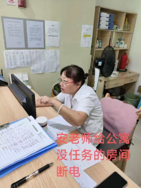 为保证暑期公寓安全,监督物业对学生公寓586间,其中学生离宿的444间宿舍进行手动断电工作,并逐间进行复查。