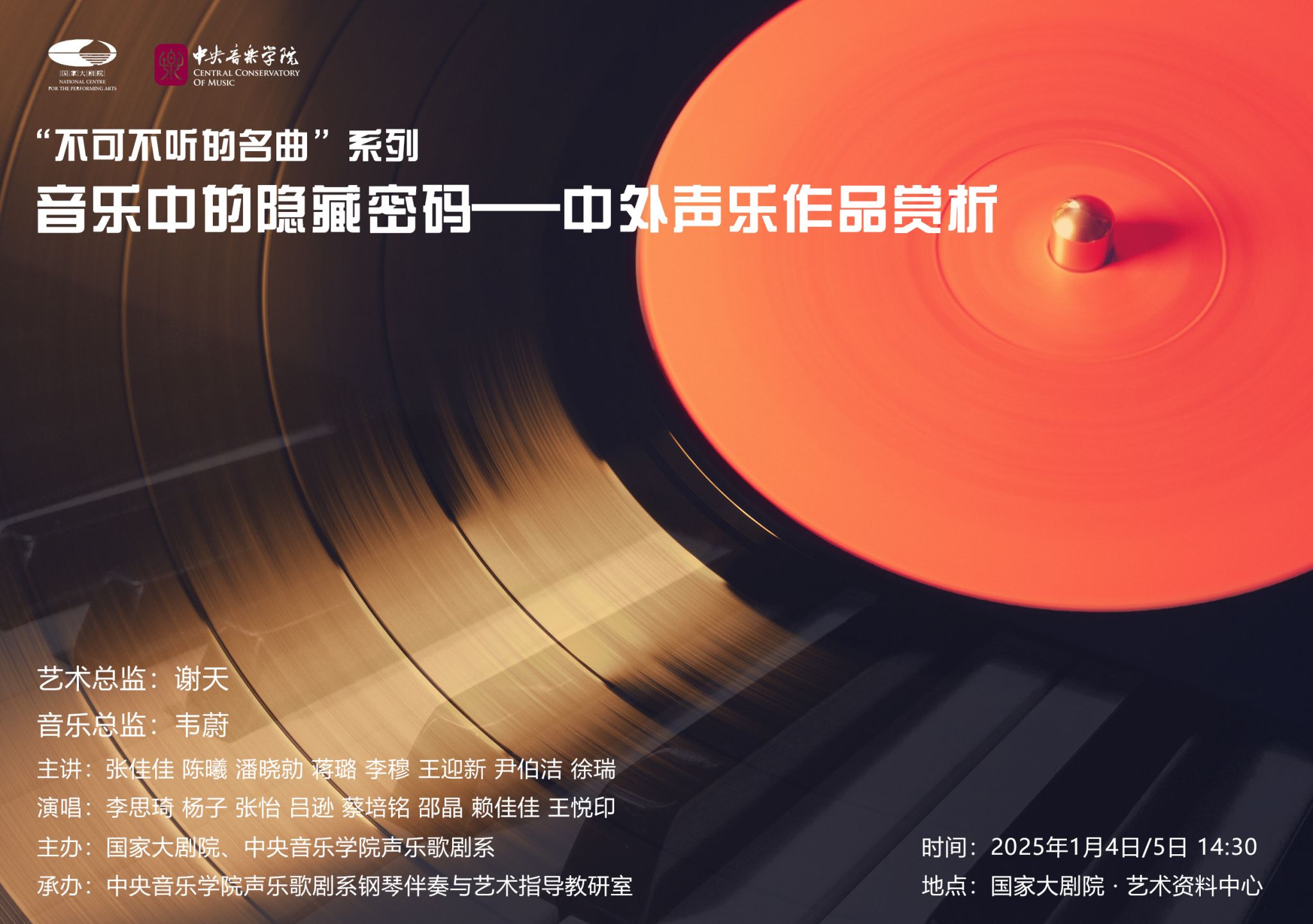 1月4日与5日的下午,“不可不听的名曲”系列之“音乐中的隐藏密码——中外声乐作品赏析音乐会”在国家大剧院艺术资料中心精彩上演。