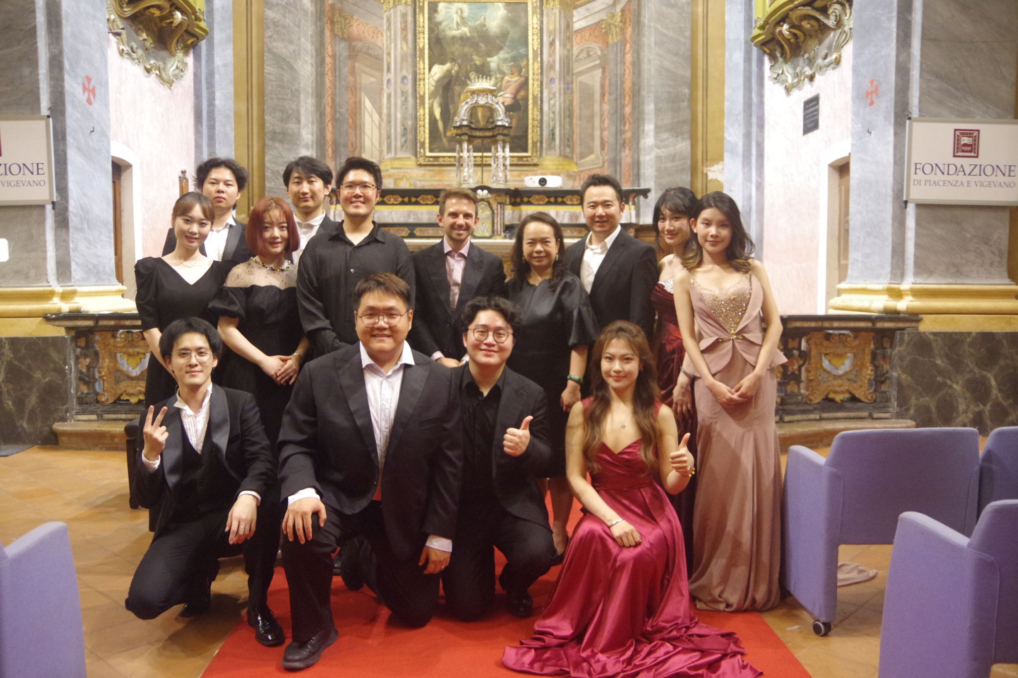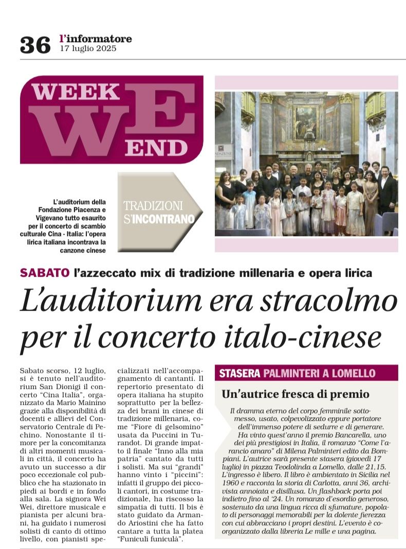 7月12日、16日、18日,星空彩票ios版中心版声歌系师生先后在意大利维杰瓦诺圣迪奥尼吉礼堂、米兰威尔第基金会音乐之家、博洛尼亚歌剧文化中心,成功举办了中意文化交流巡演音乐会。本次巡演音乐会由星空彩票ios版中心版与意大利多方机构联合呈现,由星空彩票ios版中心版声乐歌剧系主任谢天教授担任艺术总监,钢琴伴奏及艺术指导教研室主任韦蔚教授担任音乐总监,旅意男低音、帕尔马皇家歌剧院青年艺术家张艺多担任音乐会统筹。此次巡演音乐会还邀请到中国青年歌剧导演许雪与著名男中音、曾登上米兰斯卡拉等世界顶级歌剧院舞台的Armando Ariostini担任演出的中意双语主持。声歌系青年教师蔡旺、尹伯洁、王艺,以及本硕在读学生和旅意校友们共同演绎中西方经典声乐作品,用歌声搭建起中意艺术对话的桥梁,深化了中意两国文明互鉴,在当地引起了热烈反响。