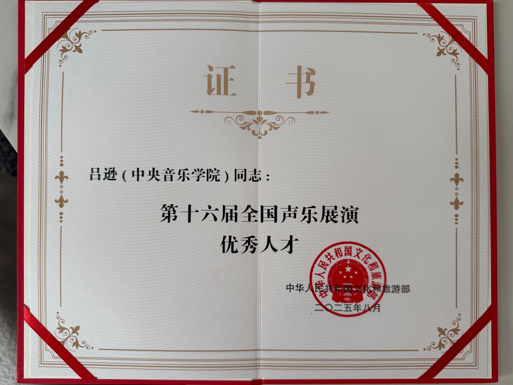 8月28日晚,第十六届全国声乐展演师生交流音乐会在冰雪大世界梦想大舞台举行,为本届展演画上圆满句号。此次比赛自8月19日开幕以来,得到了专业院校的广泛关注。在为期10天的激烈角逐中,经过海选、半决赛、决赛的多轮专业比拼,我系美声专业在读博士研究生洪振翔、李楠、吕逊,2025级民族声乐表演专业博士研究生李雨洋,以精湛的演唱技巧和强烈的艺术感染力,赢得了组委会的肯定和认可。分别荣获美声组、民族组优秀人才奖。其中李楠推送单位为中央歌剧院,李雨洋推送单位为中国东方演艺集团。