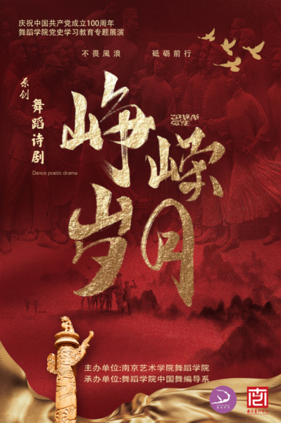 早在2019年底,我校即已启动建党百年的专题创作,历经一年半的精心筹划,大型展览、文艺汇演、交响音乐会、原创音乐剧、舞蹈诗剧、原创舞台剧、流行音乐专场演出等近20项展演将把我校的献礼活动推向高潮。今天在“云端课堂”与大家见面的南京艺术学院原创舞蹈诗剧《峥嵘岁月》正是其中的代表作品之一。这部舞蹈诗剧由南艺舞蹈学院舞蹈编导专业、首届中国舞编导方向师生集体创作,通过舞蹈诗剧的形式,诠释了一代代中国青年跟随中国共产党奋斗的坚定步伐。通过甄选建党以来的重大历史事件,创作团队以青年担当切入,梳理出中国共产党的成长脉络。从五四运动、秋收起义、奔赴延安,到新中国成立后赤子归国、攀登珠峰,再到女排夺冠、精准扶贫、抗击疫情,《峥嵘岁月》用《寻找》《永攀》《点燃》三幕阐释了革命力量“星星之火,可以燎原”的发展态势,还原了中国发展的百年沧桑巨变。该剧的创作、表演既是南艺师生党史学习成果的体现,也是对为民族独立、人民解放、国家富强做出贡献的青年的致敬,更是对新时代青年的激励,有很强的历史意义和现实意义。希望大家能喜欢这部作品,并能从这次作品观摩中汲取精神力量,坚定理想信念,树立高远志向,砥砺奋进,逐梦前行!