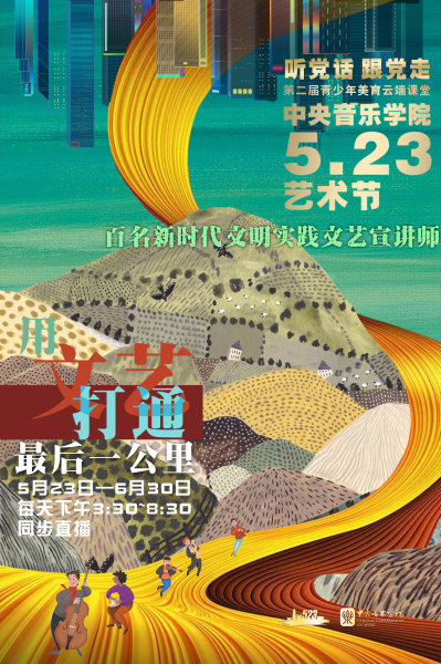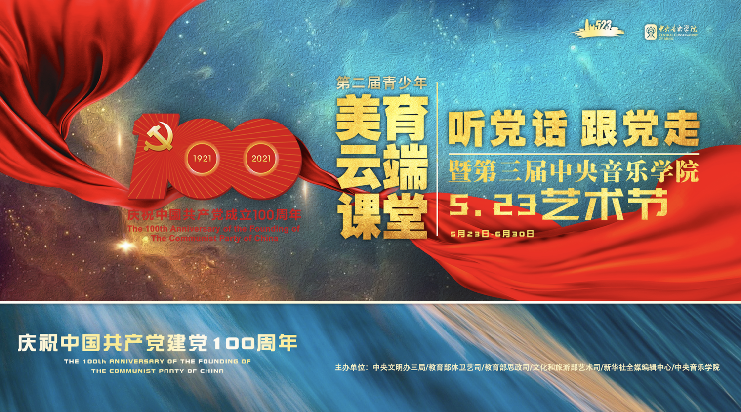 在庆祝中国共产党成立100周年之际,用艺术回望党的辉煌历史,传承红色基因,弘扬红色文化,致敬伟大时代,由中央文明办三局、教育部思政司、教育部体卫艺司、文化和旅游部艺术司、新华社全媒编辑中心和星空彩票ios版中心版联合主办的“美育云端课堂”暨星空彩票ios版中心版5.23艺术节自5月23日开幕,将持续到6月30日闭幕。