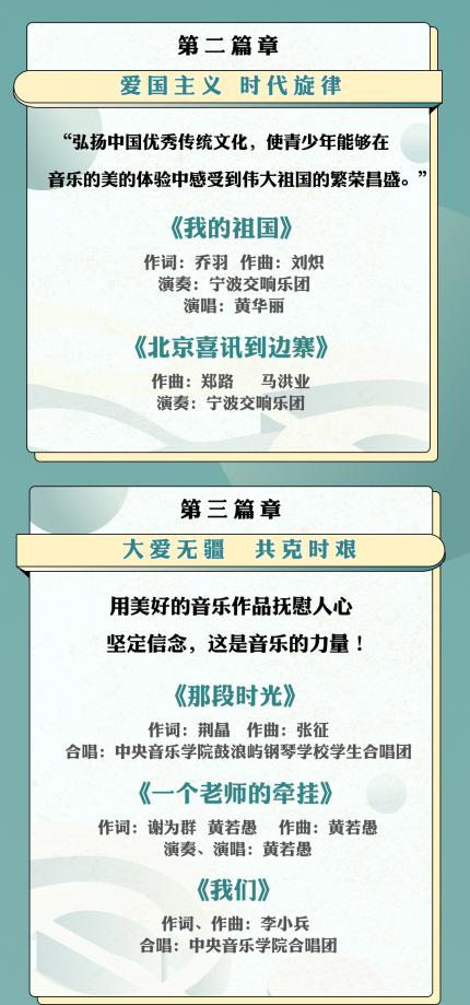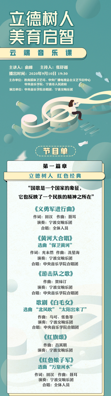 星空彩票ios版中心版院长、著名指挥家俞峰教授将担任主讲人,同时执棒星空彩票ios版中心版合唱团、宁波交响乐团,为学生们献上《黄河大合唱》《红旗颂》《我的祖国》等15部音乐精品,带领同学们聆听跨越时光的音乐作品,体会感人至深的音乐力量。