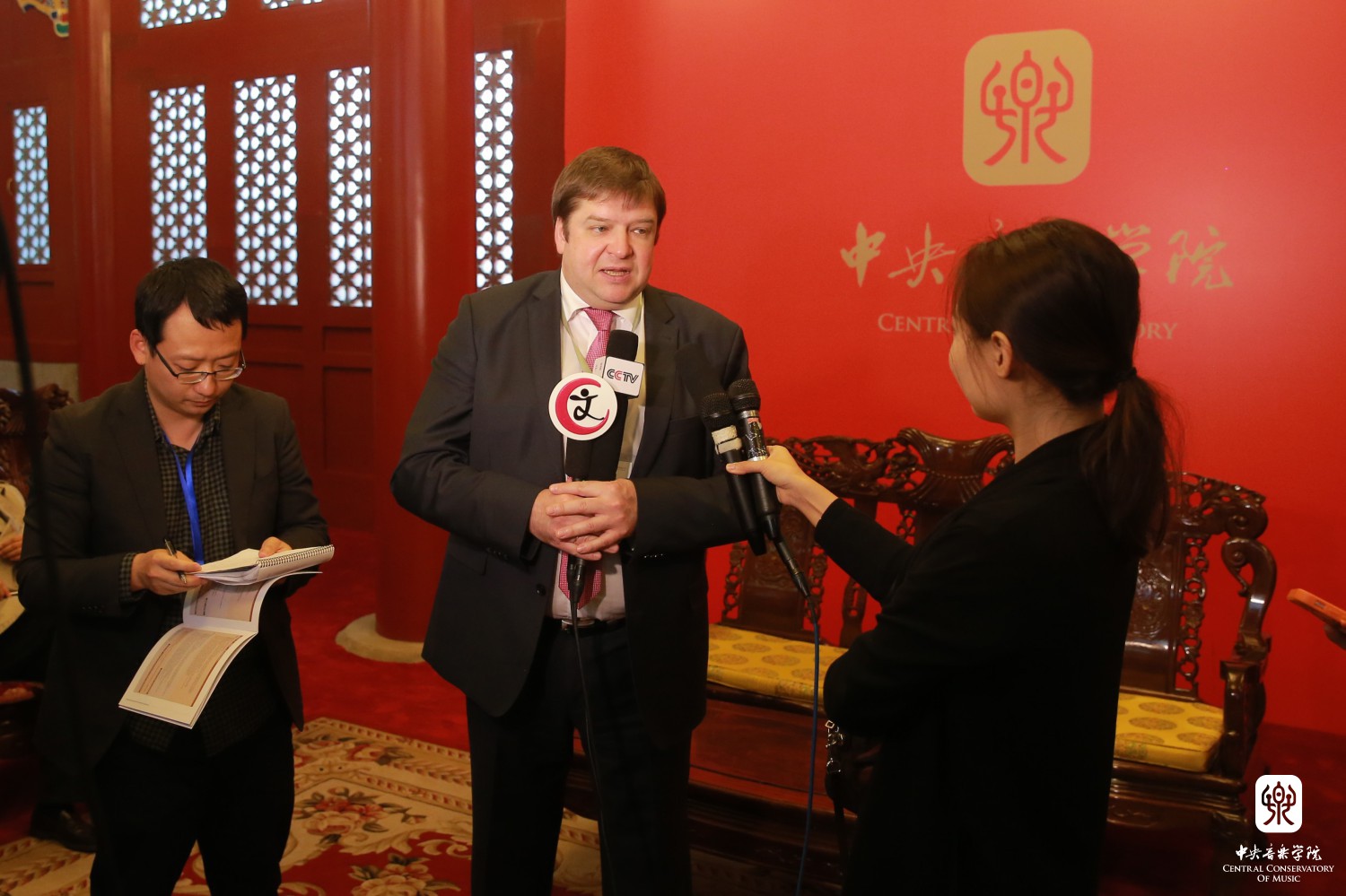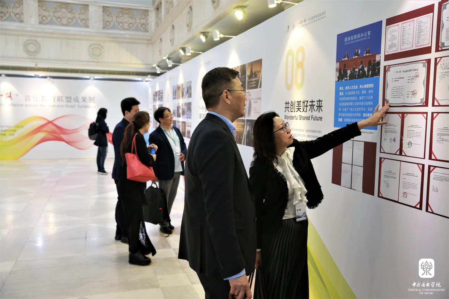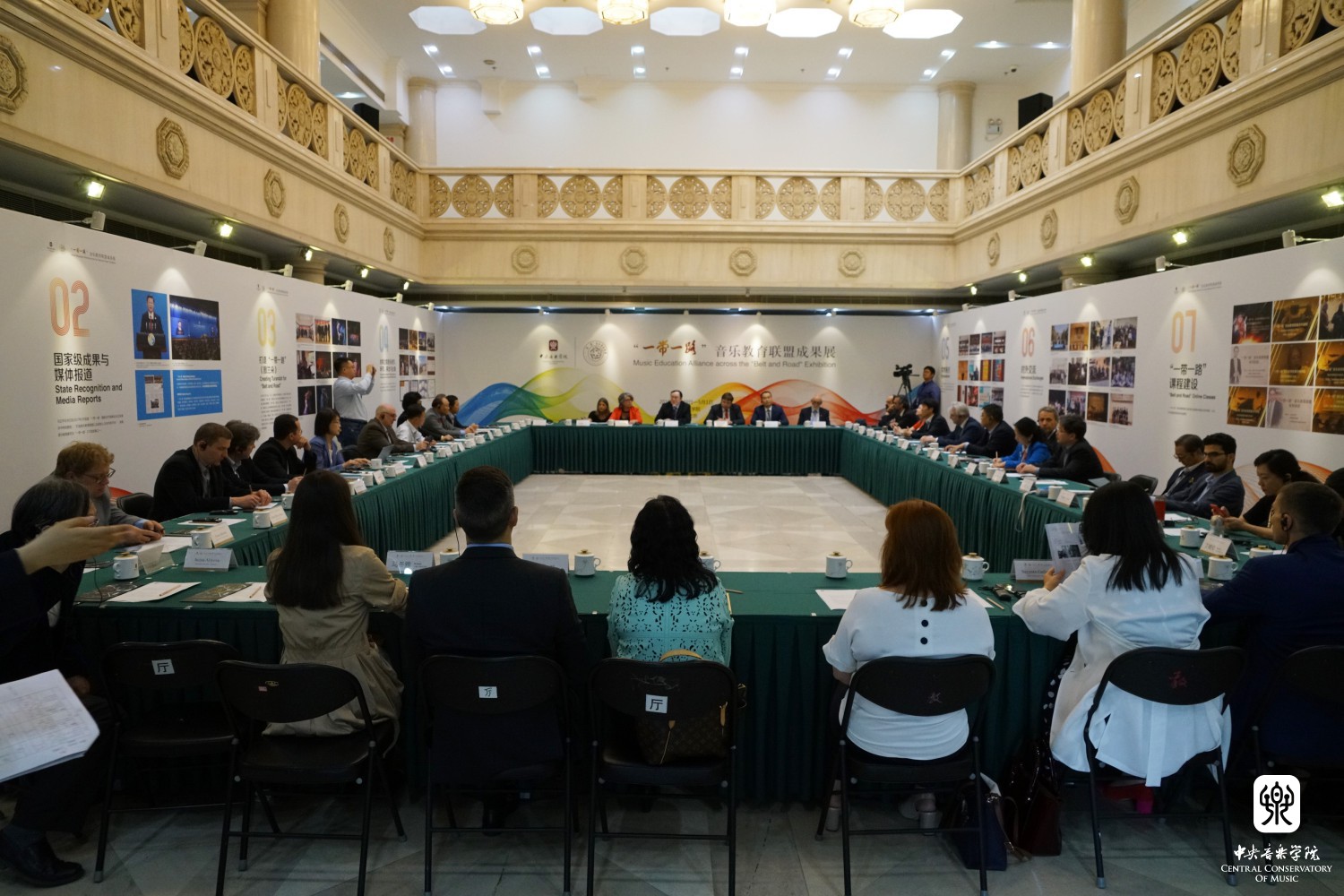 开幕式后,星空彩票ios版中心版院长俞峰、俄罗斯圣彼得堡里姆斯基-科萨科夫音乐学院院长Alexey Vasilyev、星海音乐学院院长蔡乔中、著名音乐学家田青接受了中央电视台、北京青年报、中国文化报、搜狐等媒体采访。参加大会的各国音乐家参观了教学楼1层乐器陈列室的“一带一路”乐器展和琴房楼友谊厅“一带一路”成果展。大家一边为各个国家民族形态各异、材质多样的丰富乐器所惊叹,同时各国音乐家饶有兴趣地拿起本国乐器即兴演奏起来。“一带一路”成果展分为8个板块通过图片文字展示。