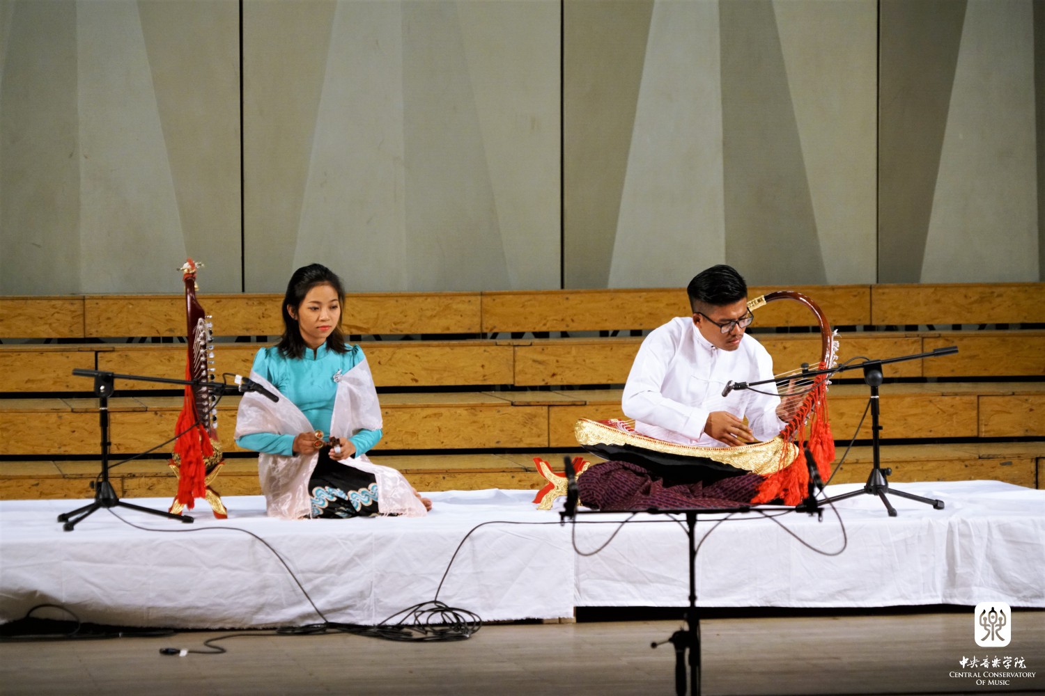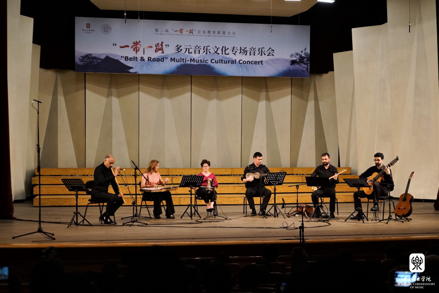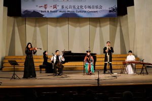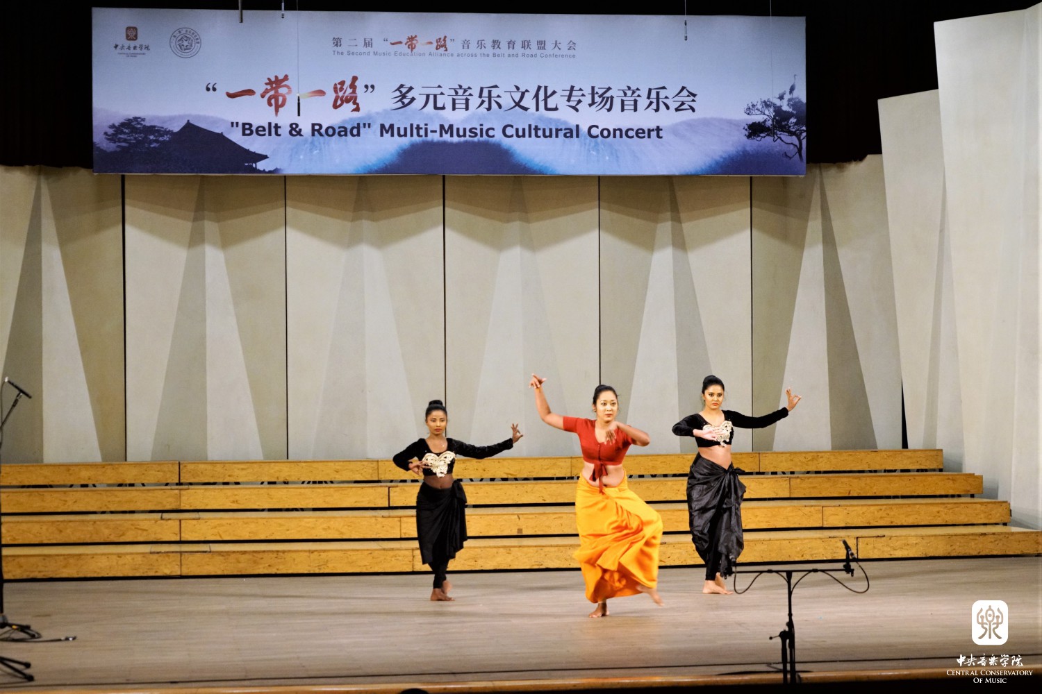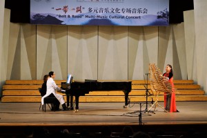 “‘一带一路’多元音乐专场音乐会”——多姿多彩的“一带一路“音乐之旅,这是本次大会闭幕演出。斯里兰卡音乐家带来传统的音乐和舞蹈《激动人心的时刻》,土耳其音乐家带来木卡姆音乐,用土耳其古典及民间乐器演奏了《先祖帕西热》等8首从17-20世纪的乐曲,全方位展示了土耳其木卡姆音乐的神韵。蒙古国音乐家带来了女生独唱、呼麦、蒙古筝与乐队、马头琴与乐队、单簧管与乐队的套曲。越南音乐家阮氏华灯博士带来了特龙琴与钢琴合作的作品《摇篮曲》和《恰尔达什》。印度音乐家带来北印度古典声乐克亚尔表演,声腔进行极为复杂。两位缅甸音乐家带来缅甸竖琴——弯琴(中国唐代称凤首箜篌)重奏和独奏表演。伊朗音乐家带来波斯湾风情组曲《海港的回忆;你属于我们;水手之歌》《难忘朋友!难说再见!》,他们热情带领观众进行互动表演,同时邀请一位中国女音乐家参加演出,将音乐会热烈的气氛推向顶点,为本次大会画上圆满的句号。