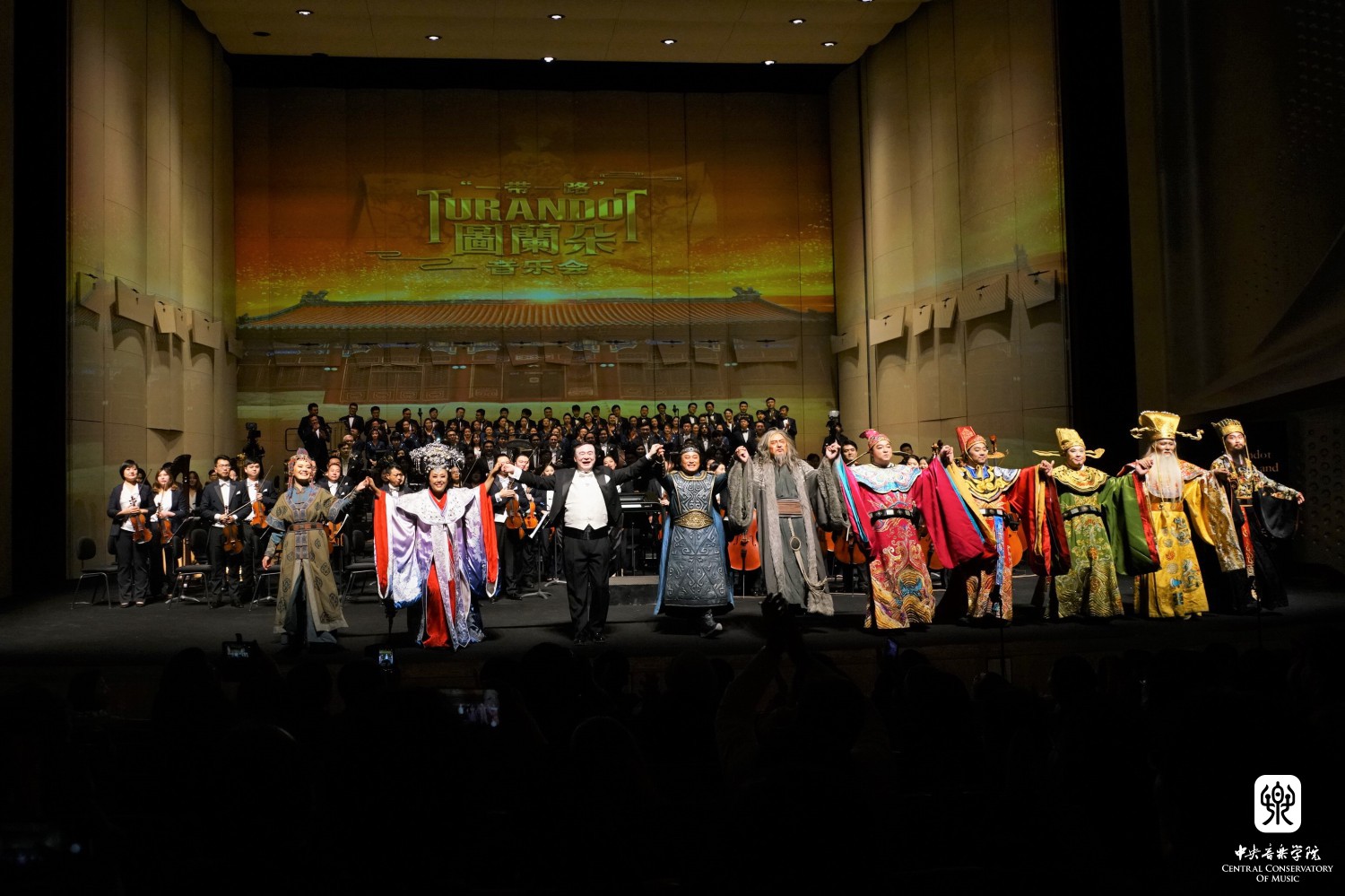“一带一路”《图兰朵》歌剧音乐会4月30日晚震撼上演。俞峰院长亲自登台执棒指挥星空彩票ios版中心版交响乐团、星空彩票ios版中心版合唱团、 星空彩票ios版中心版少年合唱团演出,合唱指挥陈冰。王威饰演图兰朵,许昌饰演卡拉夫,宋元明饰演柳儿,赵明饰演铁木尔,孙砾饰演平,刘怡然饰演彭,李想饰演庞,高士棋饰演皇上,陈思宇饰演传令官。
