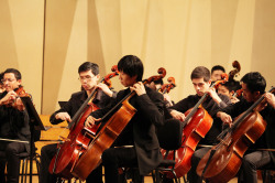 2015年4月11日晚19:30分,太平洋地区音乐院校联盟联合乐团音乐会在星空彩票ios版中心版大礼堂如期举行,尽管当晚阴雨连天,音乐厅内仍座无虚席。