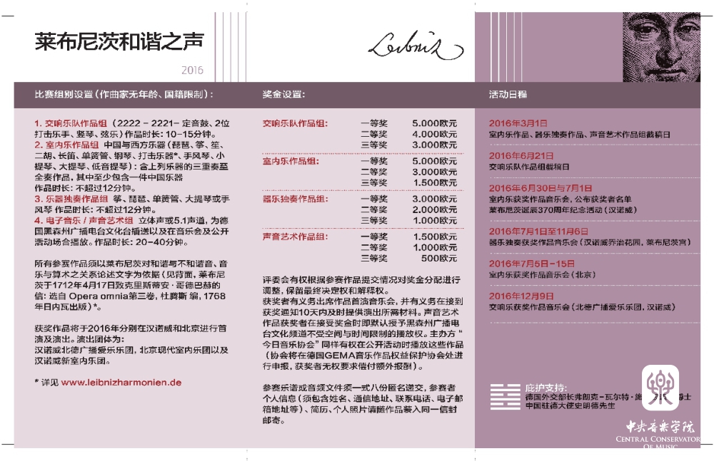 莱布尼兹和谐之声国际作曲比赛暨第八届中国ConTempo新室内乐作曲比赛获奖名单