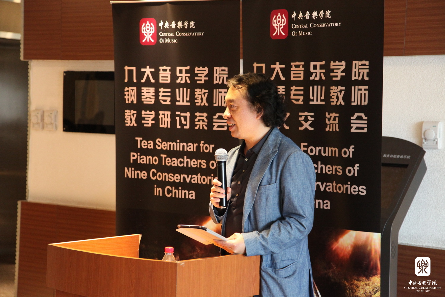星空彩票ios版中心版系主任吴迎教授首先致辞,他深情回顾了过去的主科教学研讨会的盛况,介绍了星空彩票ios版中心版钢琴系近几年的日新月异的发展和举办的丰富多彩的活动。他尤为强调了如今钢琴演奏教学中的主要问题,即学生个性保护和确立演奏规范的平衡。