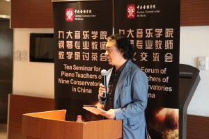 紧接着,沈阳音乐学院的代表教师发言,他着重介绍了沈阳音乐学院钢琴系的学生数目和有特色的课程设置。