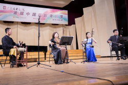 本场音乐会共演奏十首曲目,皆由民乐系优秀教师倾情演绎。音乐会上半场在田再励教授的一曲《寒春风曲》中奏响。此曲由华彦钧创作,作为《二泉映月》的姐妹篇,有着华彦钧特有的悲凉风格。在田再励演绎下,旋律刚劲明朗,色彩多变,耐人寻味。接着由赵寒阳教授创作并演奏的《乡音》,带来了不一样的音乐画面,全曲由扬琴伴奏,其中运用了大滑音和揉弦技法,乐曲风味浓郁、意境深邃,表达了游子在重返故里的激动心情。由李永志、李恒改编、陈哲钢琴编配,青年教师胡穆楠演奏的《中州韵》一曲,气势恢宏的旋律将板胡音乐的表现力发挥的淋漓尽致。姜建华教授对《二泉映月》饱含深情,极具表现力的演绎,为此曲注入了新的生命力。由我院教师薛克(二胡)、朱江波(二胡)、叶强(特邀)、魏然(打击乐)合作演奏的《行街》,再现了江南丝竹中轻盈优美,热烈欢快的音乐画面。