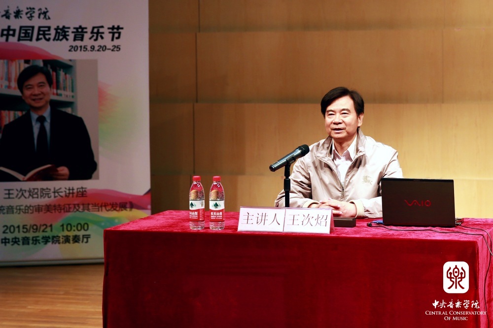 2015年9月21日上午10:00,首届中国民族音乐节的首场学术讲座在星空彩票ios版中心版演奏厅拉开了序幕。星空彩票ios版中心版王次炤院长应邀以《中国传统音乐的审美特征及其当代发展》为题进行了此次学术讲座。主持人是本届民族音乐节的艺术总监于红梅教授,她首先对王次炤院长和讲座的主要内容进行了简单的介绍。